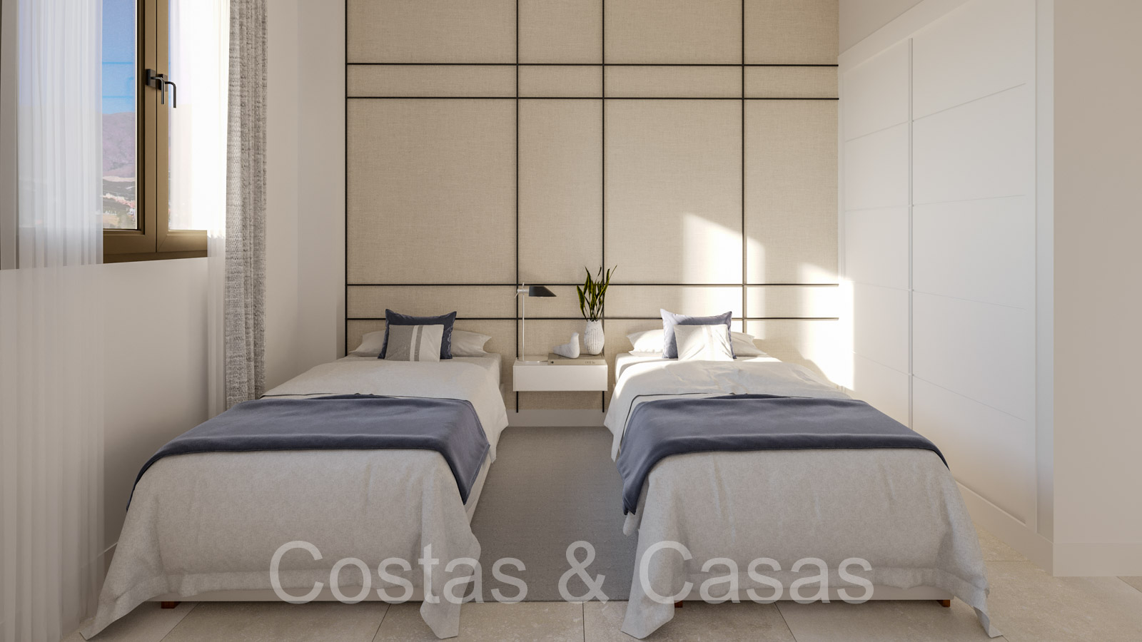 Appartements modernes de nouvelle construction avec une architecture contemporaine. Conçu avec une grande attention aux détails et au confort. Orientation sud et sud-ouest. Vue panoramique vers la mer Méditerranée. Terrasses spacieuses avec suffisamment d'espace pour installer un chill-out confortable. Les appartements du rez-de-chaussée disposent d'un jardin privé. Design moderne avec disposition ouverte. Cuisine entièrement équipée avec îlot. Coin repas intégré. De hautes fenêtres coulissantes donnent accès aux espaces extérieurs et génèrent beaucoup de lumière naturelle. 1, 2 ou 3 chambres. Carrelage de sol en grès cérame grand format. Débarras + place de parking privée inclus.