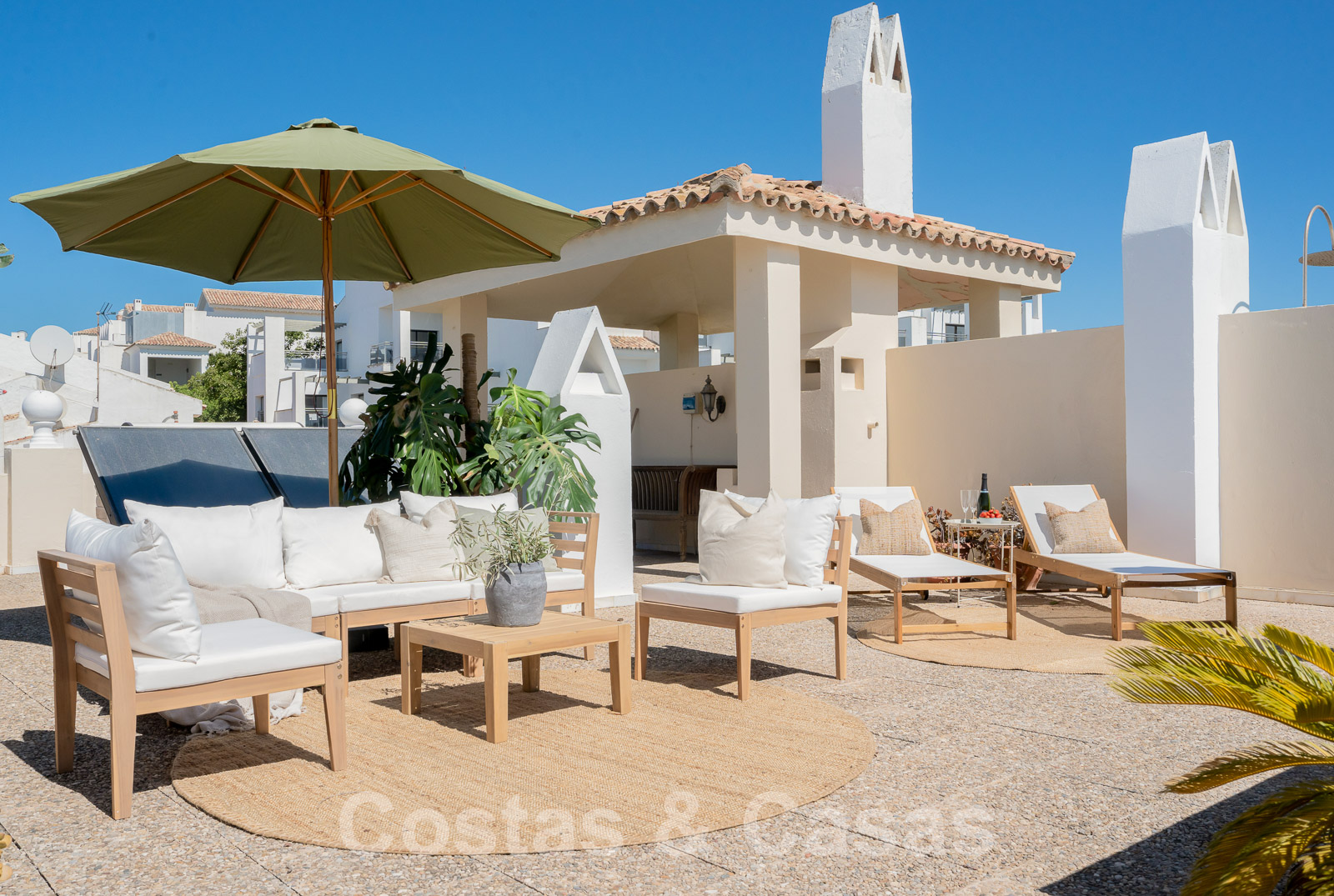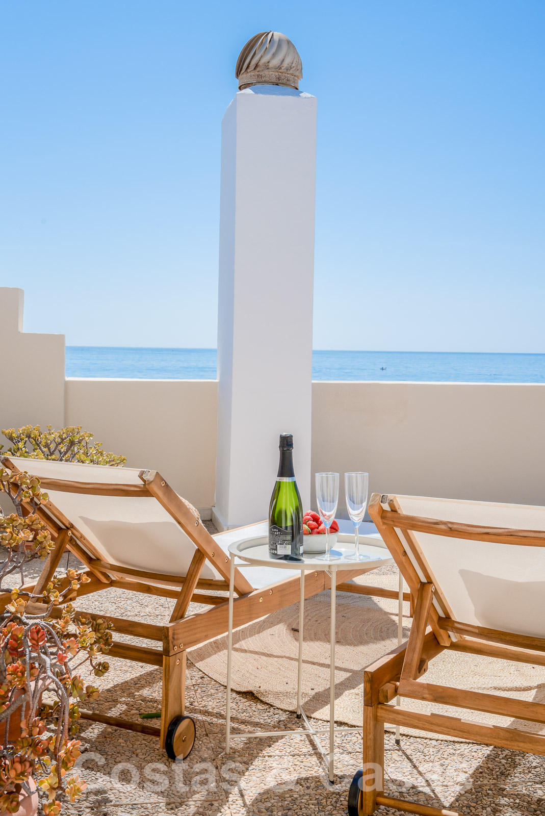 Un escalier extérieur vous mène au solarium, où vous pourrez profiter d'une vue magique depuis le salon.