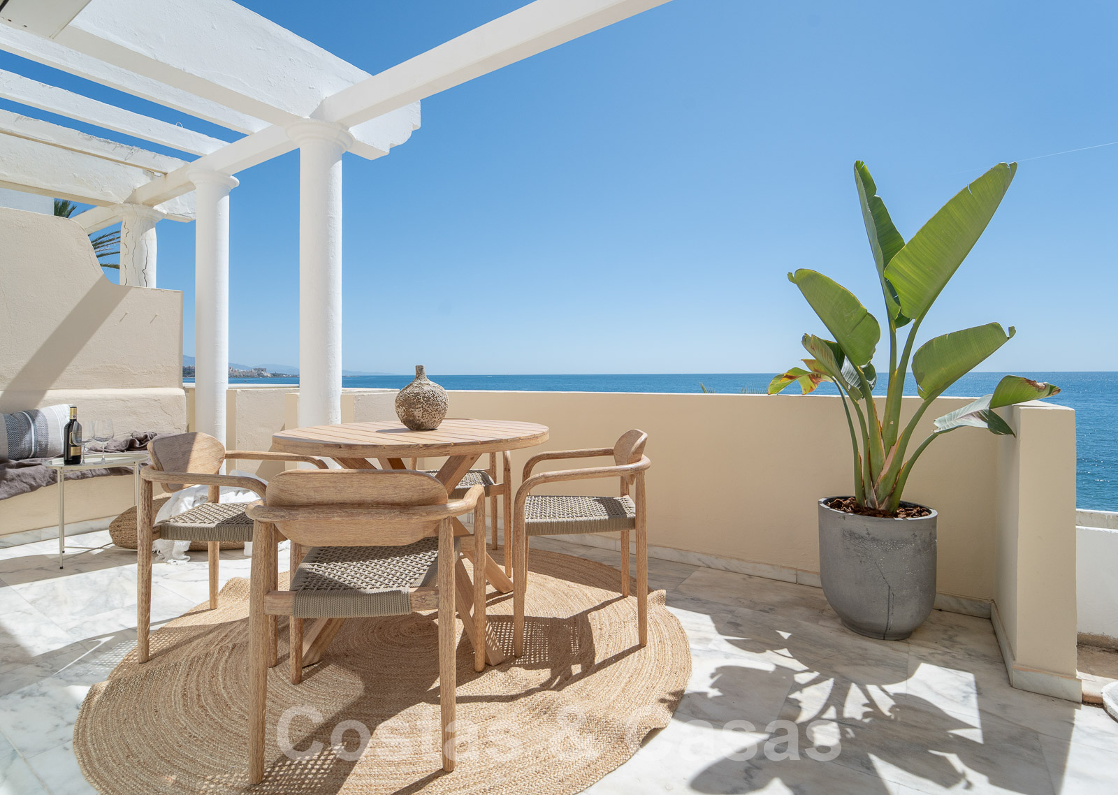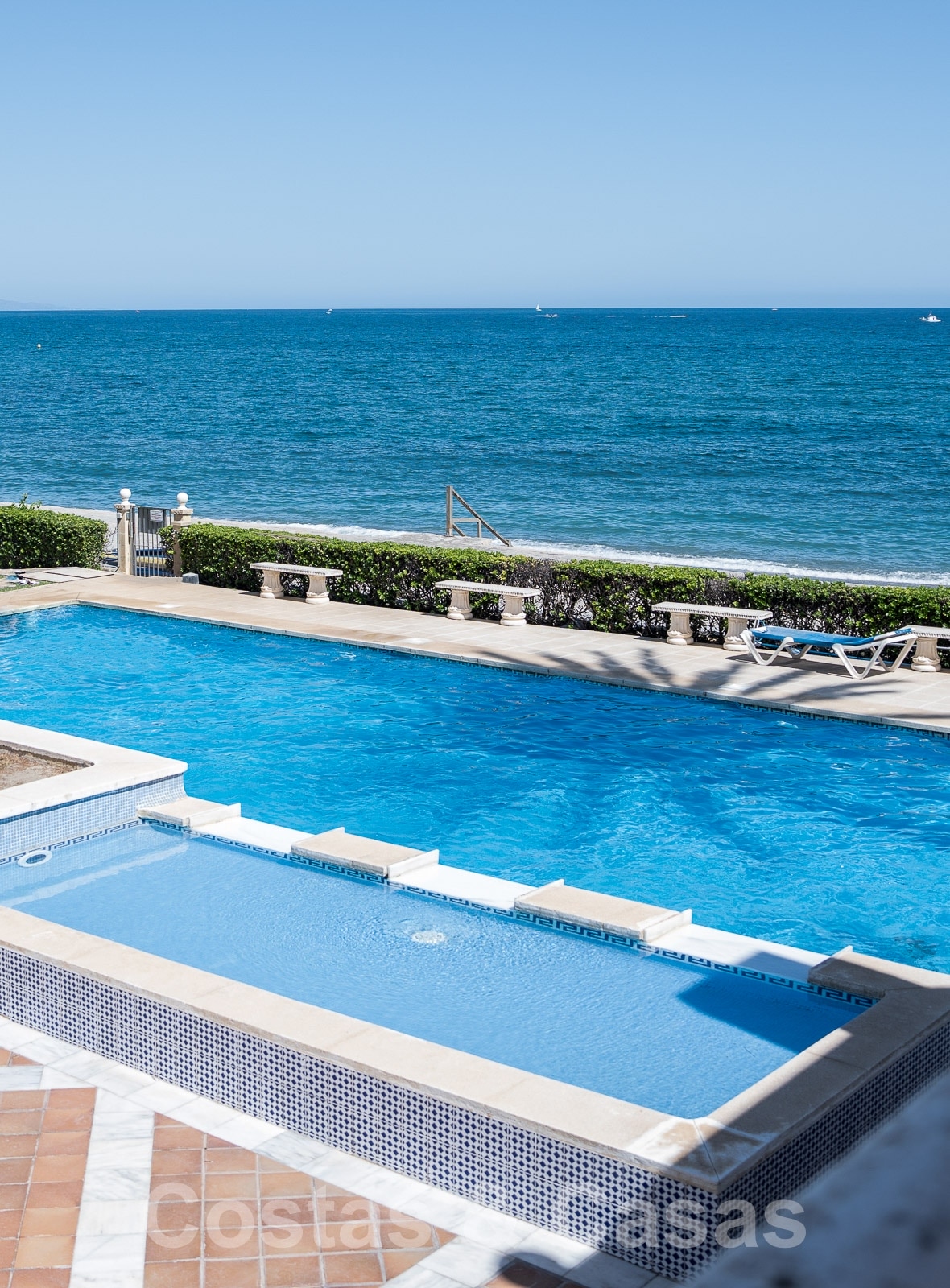 Situé à la limite ouest extrêmement exclusive d'Estepona et bénéficie d'un emplacement recherché directement sur la plage.