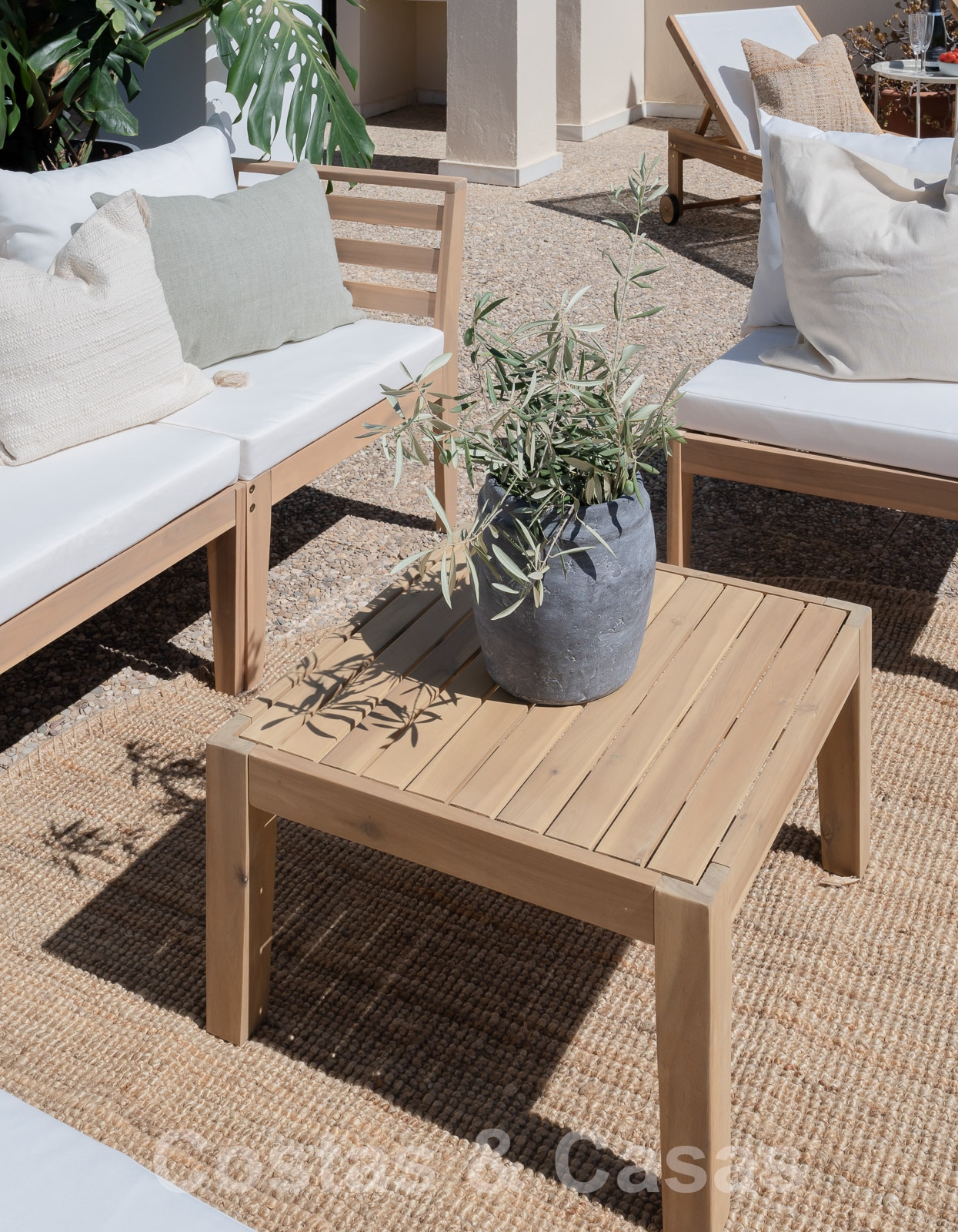 La terrasse principale qui communique avec le salon offre un espace « repas en plein air » et un espace détente.