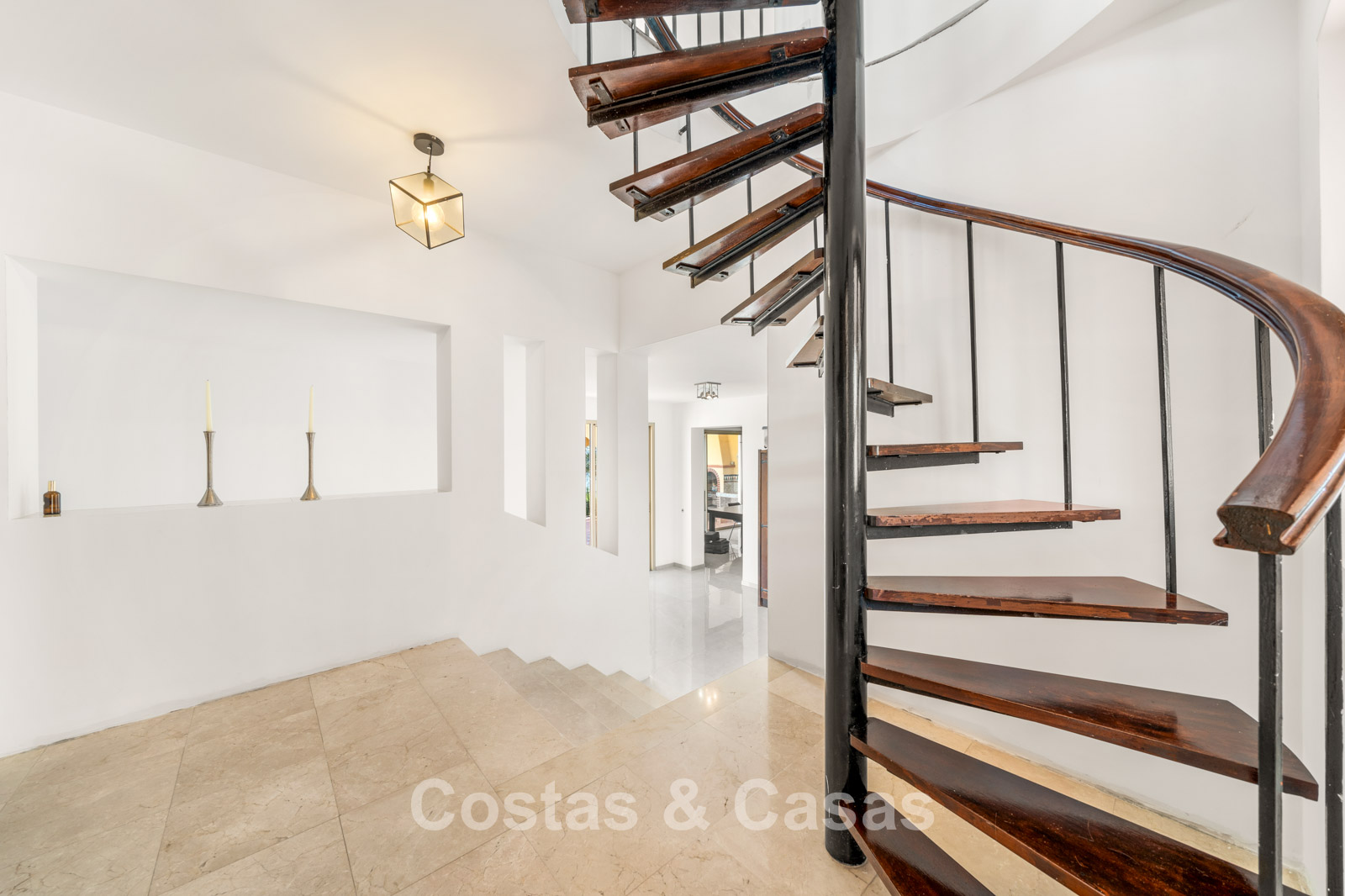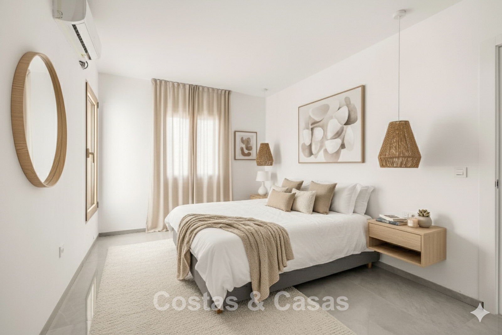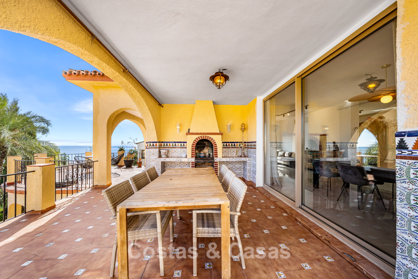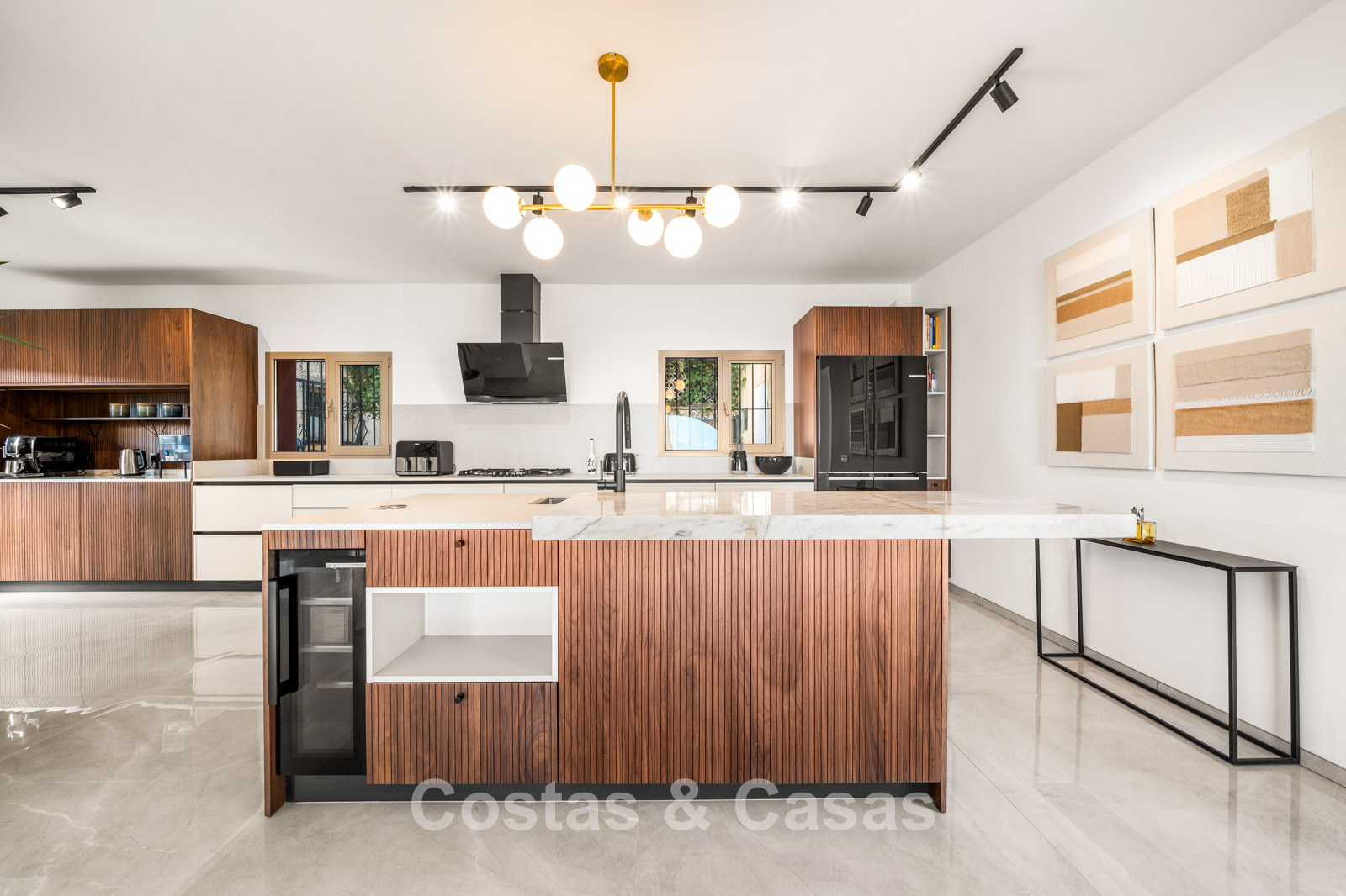 Villa individuelle spacieuse de style andalou authentique, rehaussée de subtiles touches scandinaves à l'intérieur. Utilisation de matériaux naturels. Intérieur lumineux et aéré avec un agencement ouvert. Espace de vie ouvert avec une cheminée. Coin repas intégré. Cuisine ouverte moderne avec un grand îlot central, doté d'un plan de travail coulissant qui le transforme en espace repas ou de travail. 7 chambres, 6 salles de bains et une toilette séparée. Grand carrelage brillant au sol avec une subtile texture marbrée. Buanderie. Garage intégré.