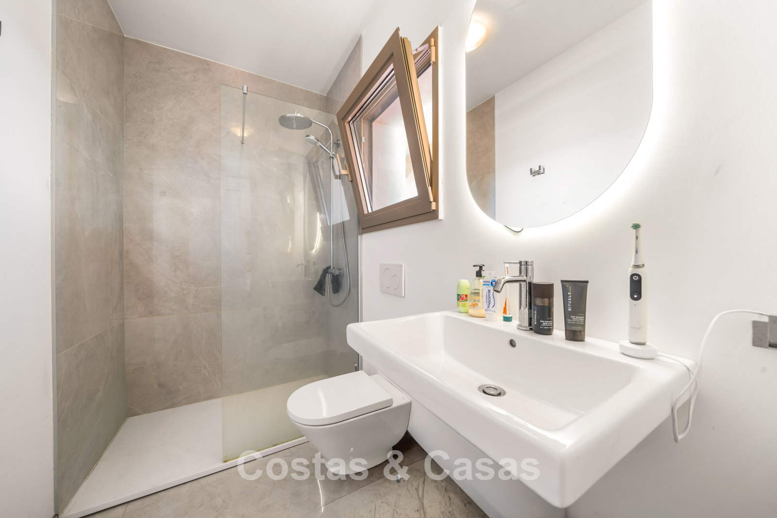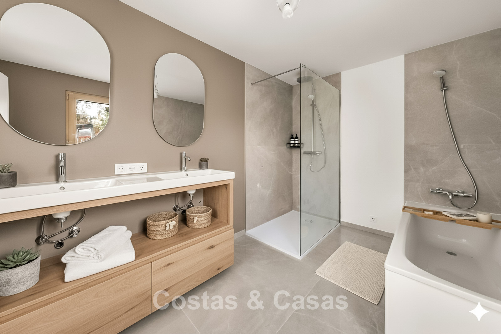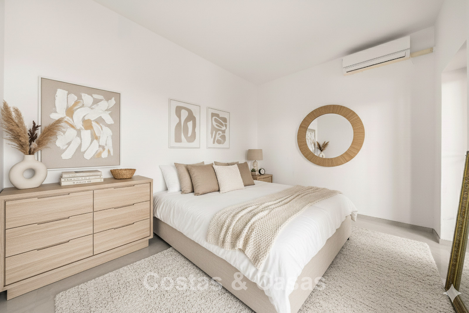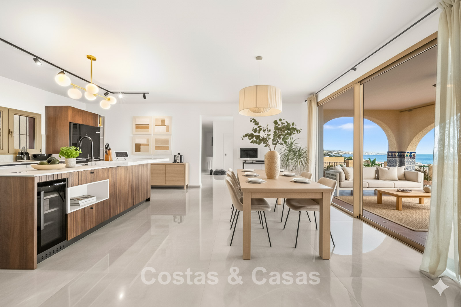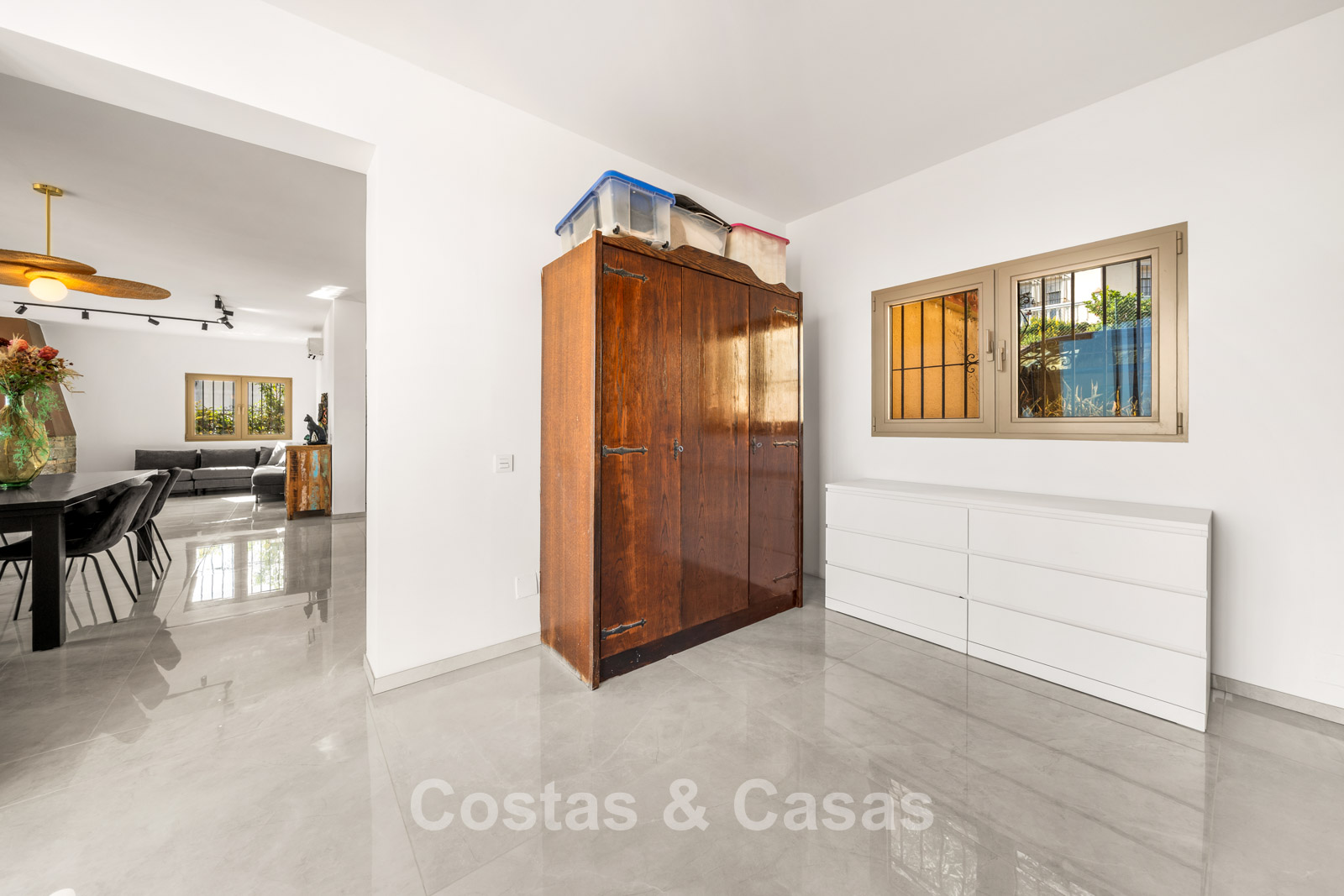 Villa individuelle spacieuse de style andalou authentique, rehaussée de subtiles touches scandinaves à l'intérieur. Utilisation de matériaux naturels. Intérieur lumineux et aéré avec un agencement ouvert. Espace de vie ouvert avec une cheminée. Coin repas intégré. Cuisine ouverte moderne avec un grand îlot central, doté d'un plan de travail coulissant qui le transforme en espace repas ou de travail. 7 chambres, 6 salles de bains et une toilette séparée. Grand carrelage brillant au sol avec une subtile texture marbrée. Buanderie. Garage intégré.