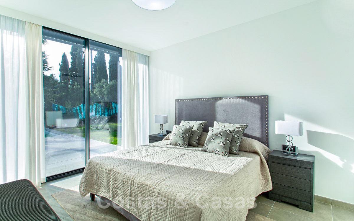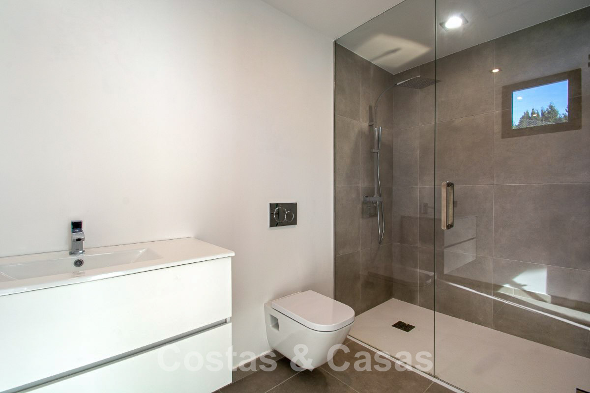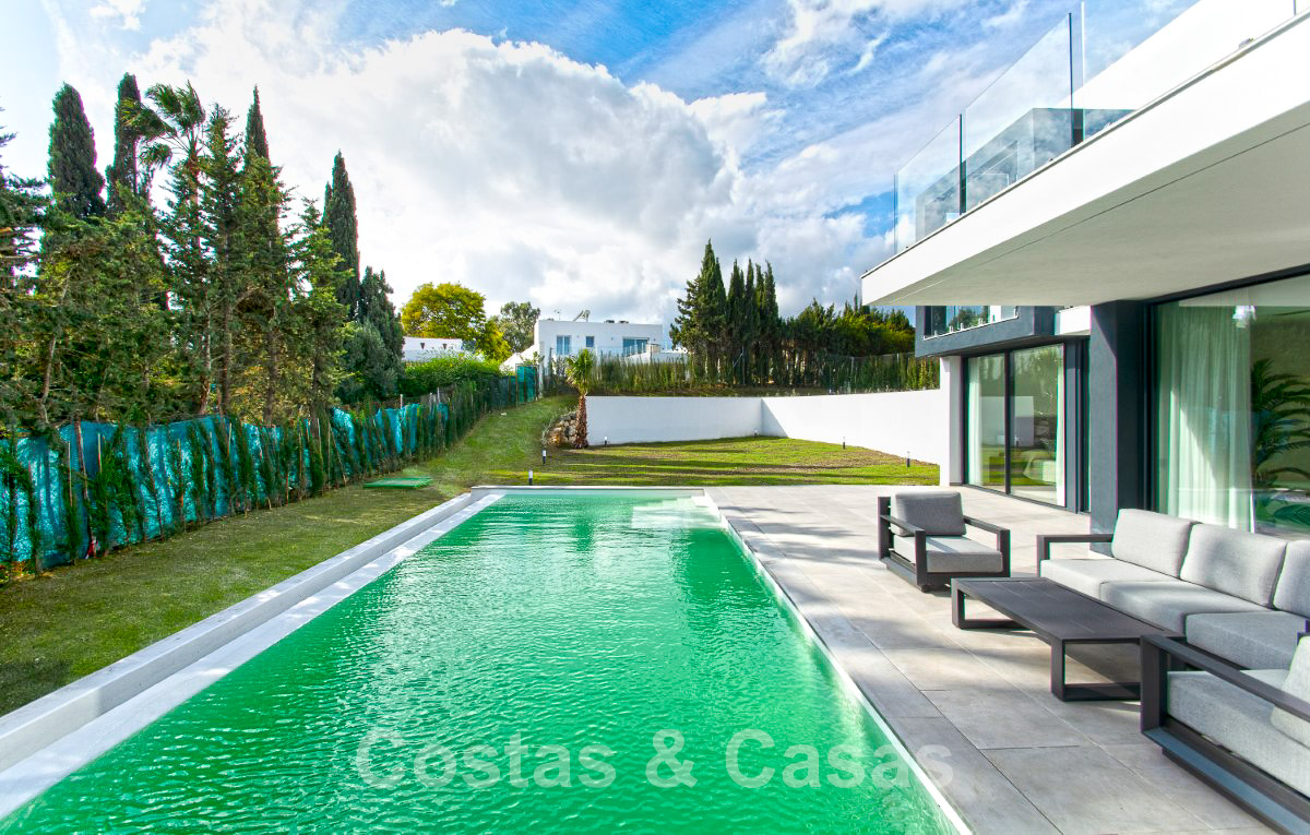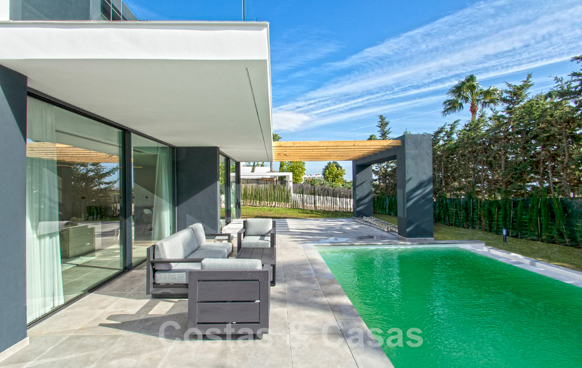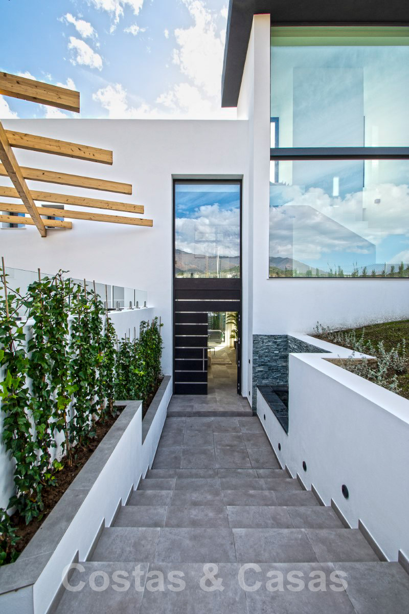 Villa de luxe neuve, prête à être emménagée, à vendre avec un grand jardin dans un resort de golf d'Estepona