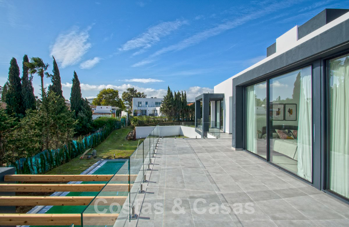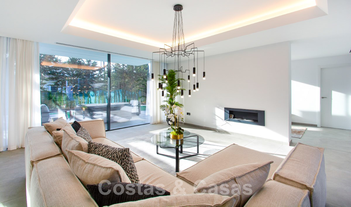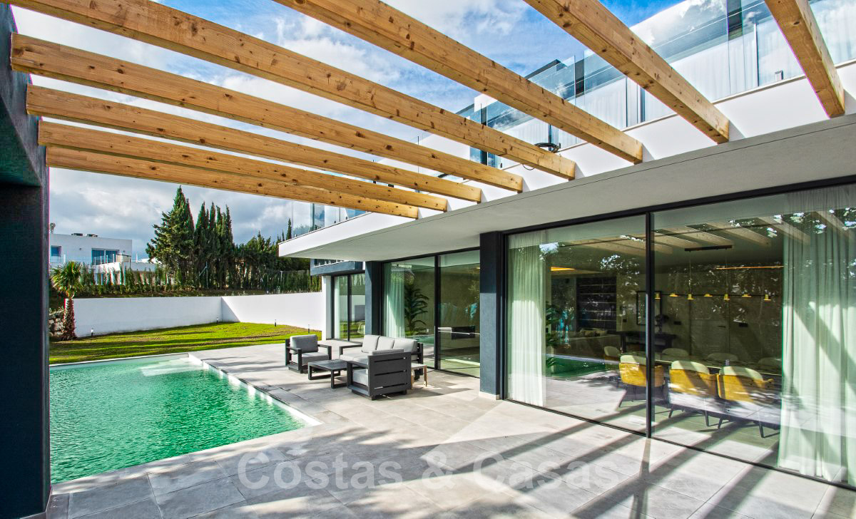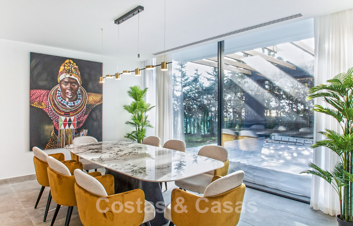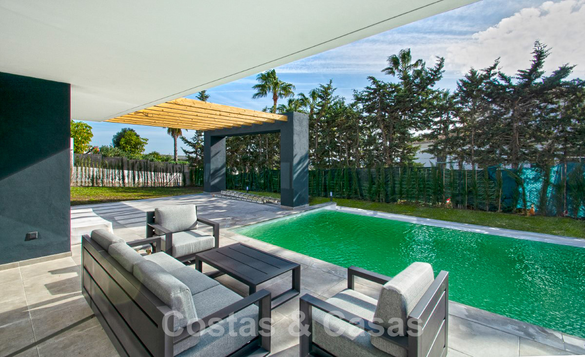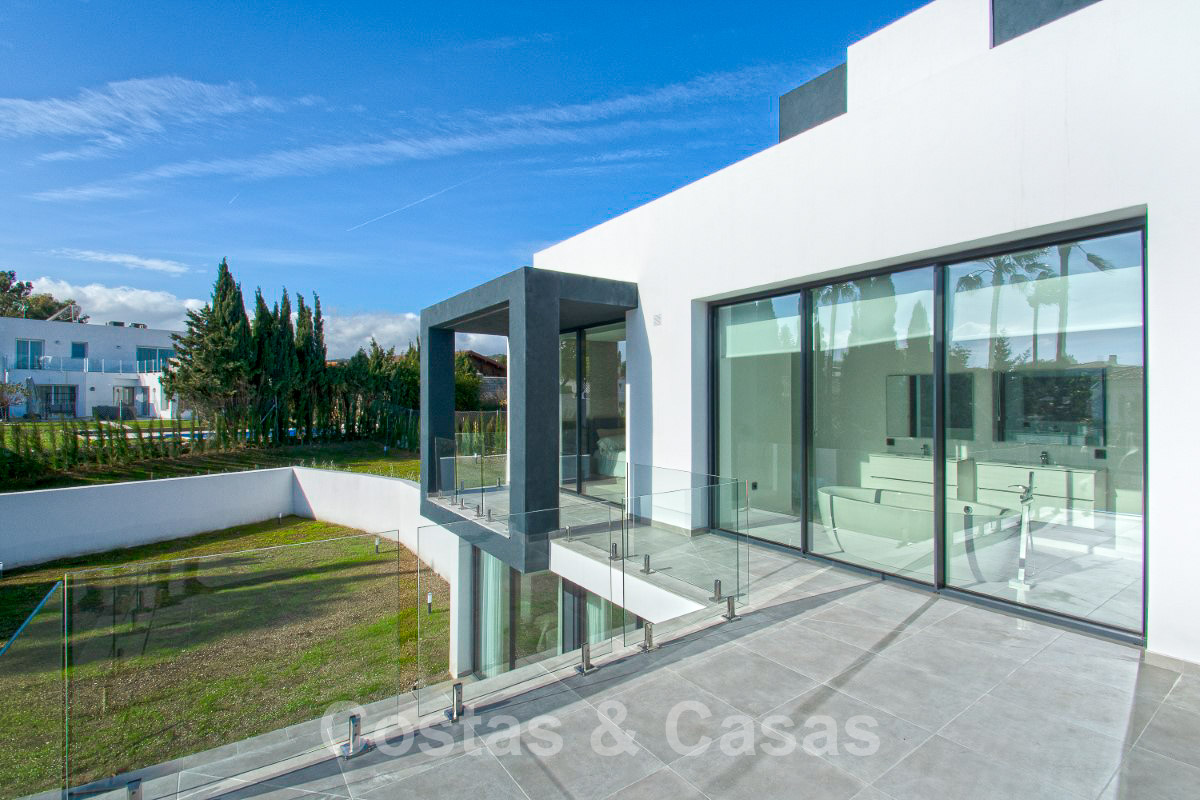 Villa de luxe neuve, prête à être emménagée, à vendre avec un grand jardin dans un resort de golf d'Estepona