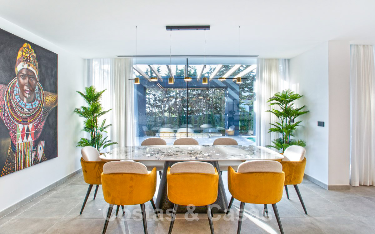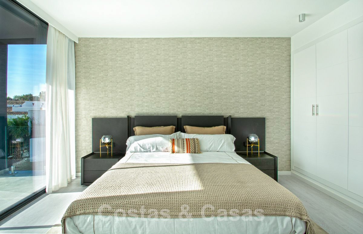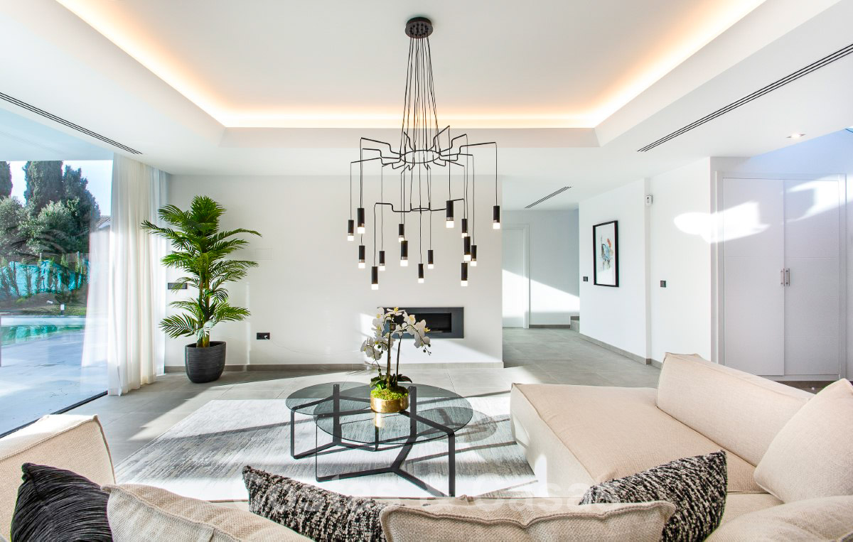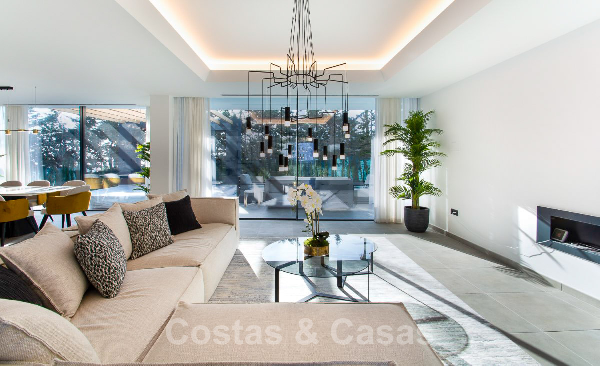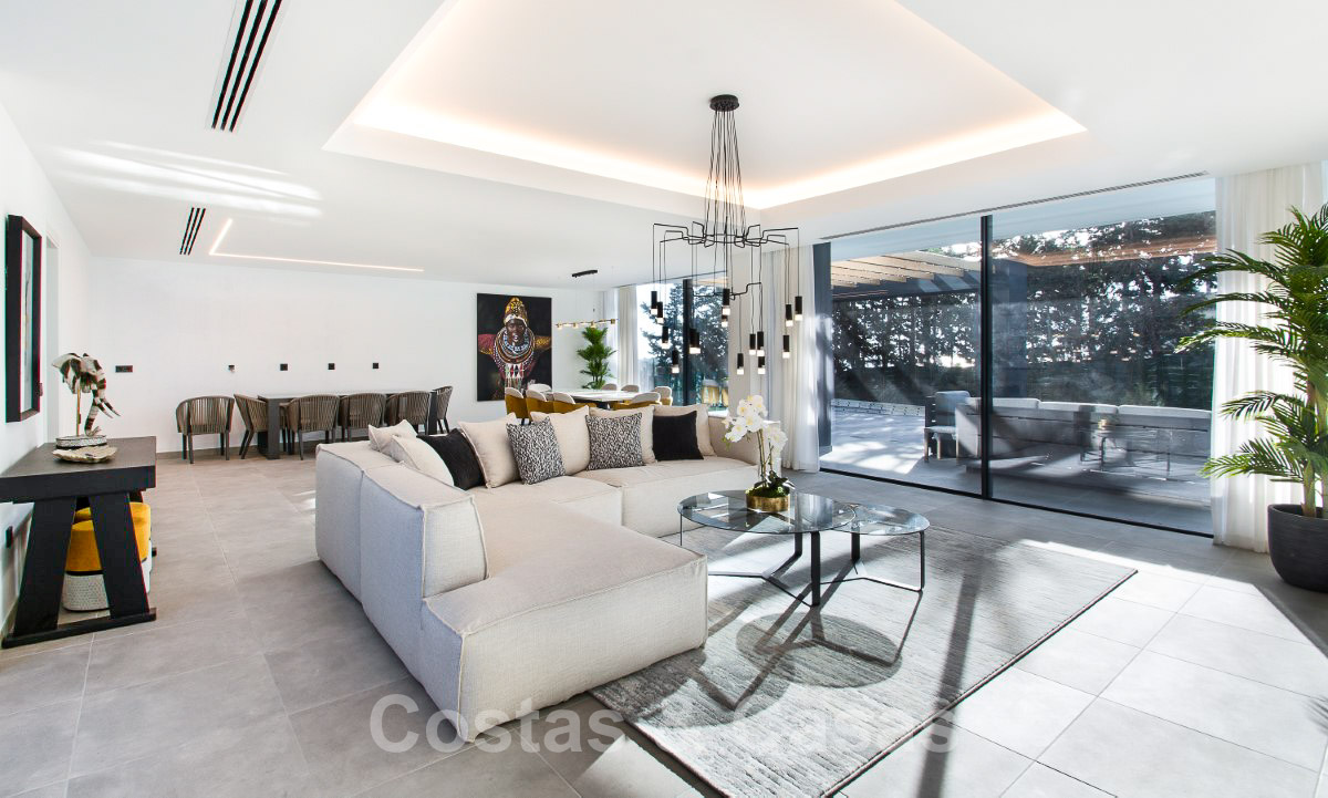 Villa de luxe neuve, prête à être emménagée, à vendre avec un grand jardin dans un resort de golf d'Estepona