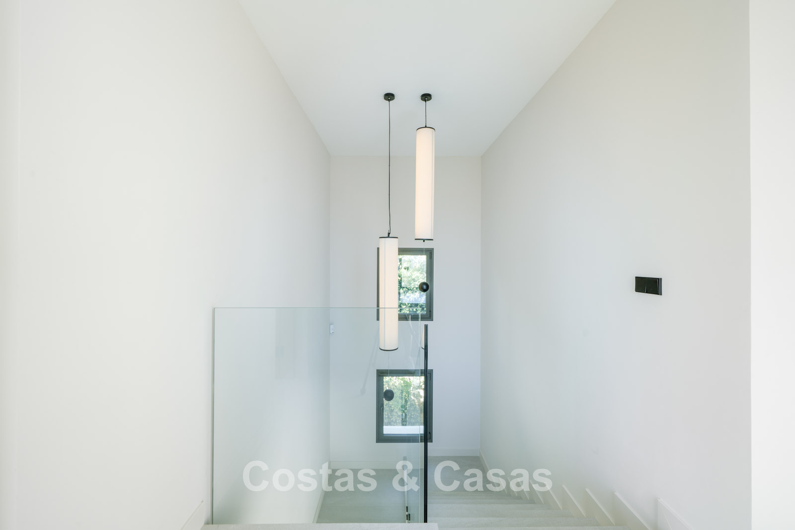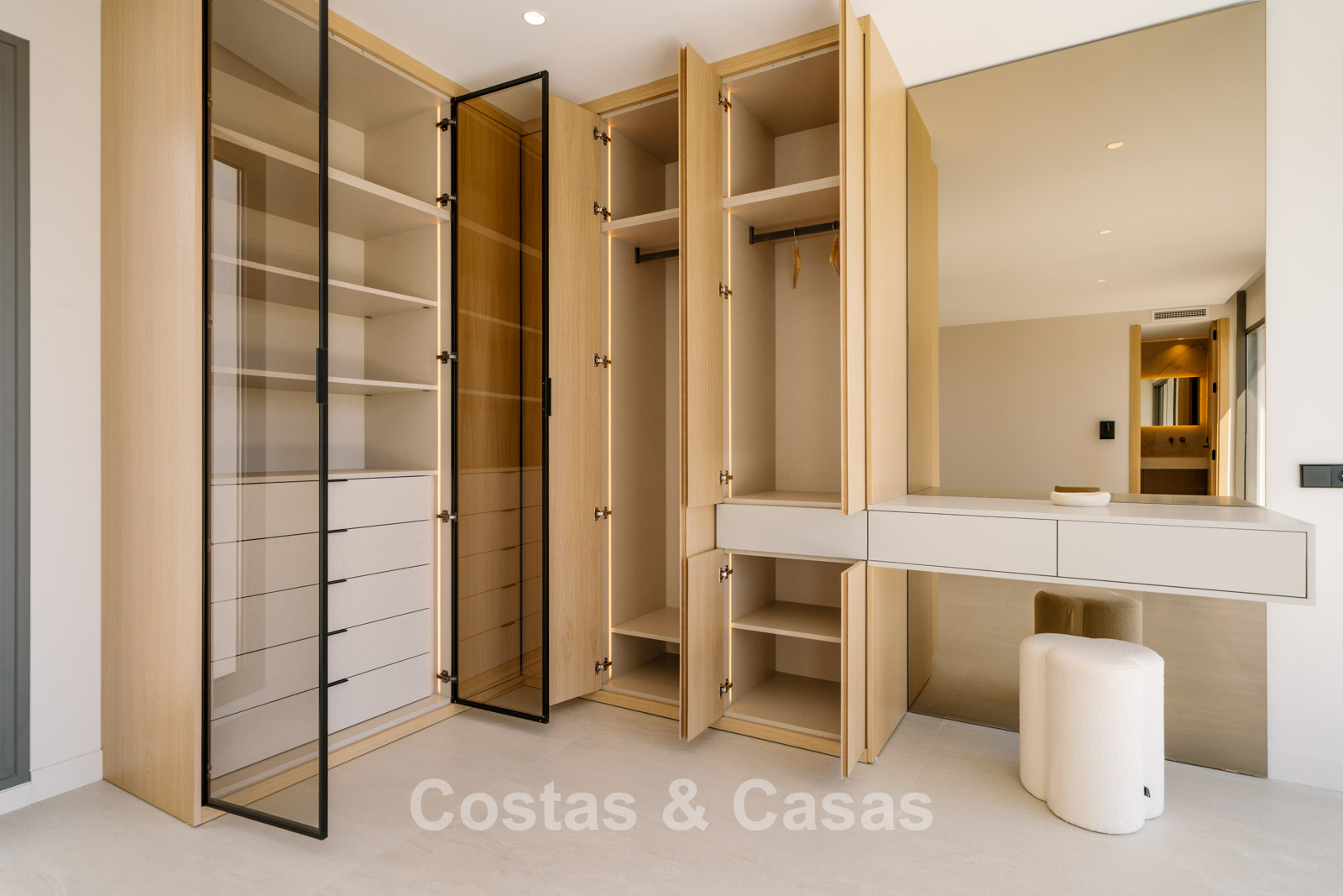 Autres caractéristiques : Climatisation pour le refroidissement et le chauffage. Système aérothermique pour la production d'eau chaude. Plancher chauffant dans les salles de bains. Piscine avec raccordement pour pompe à chaleur. Armoires intégrées sur mesure. Système domotique. Double vitrage. Balustrades en verre autour des terrasses. Système d'arrosage automatique. Éclairage LED. Système d'alarme avec caméras de surveillance.