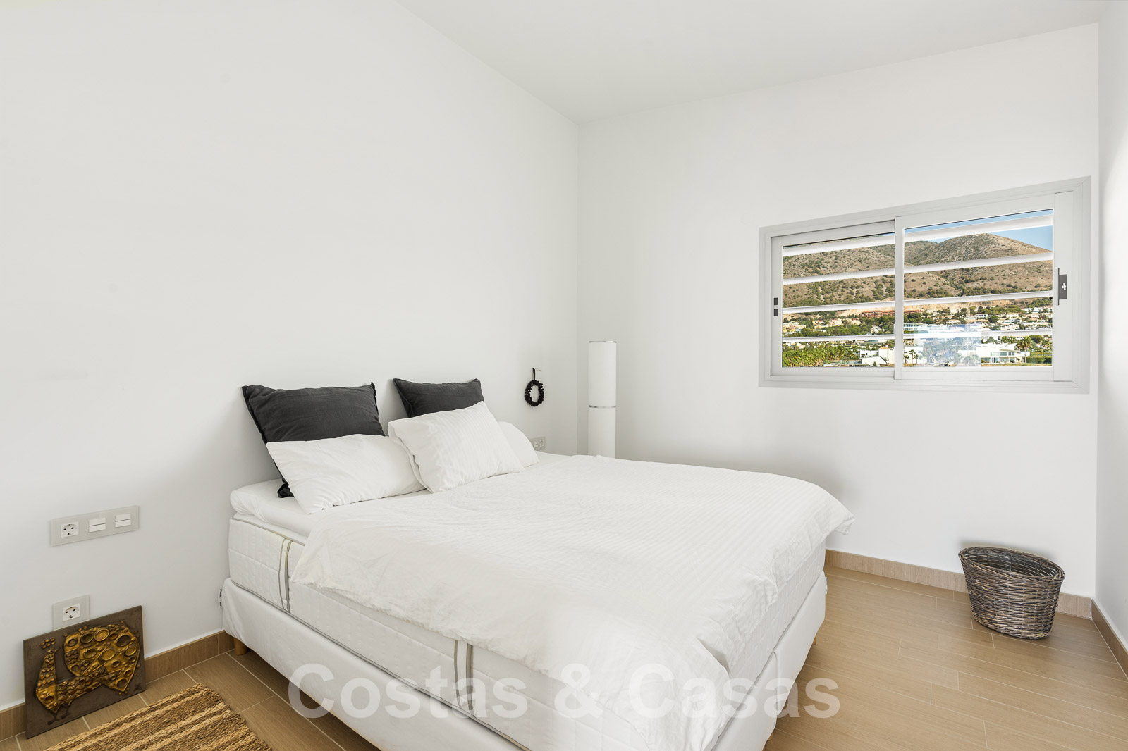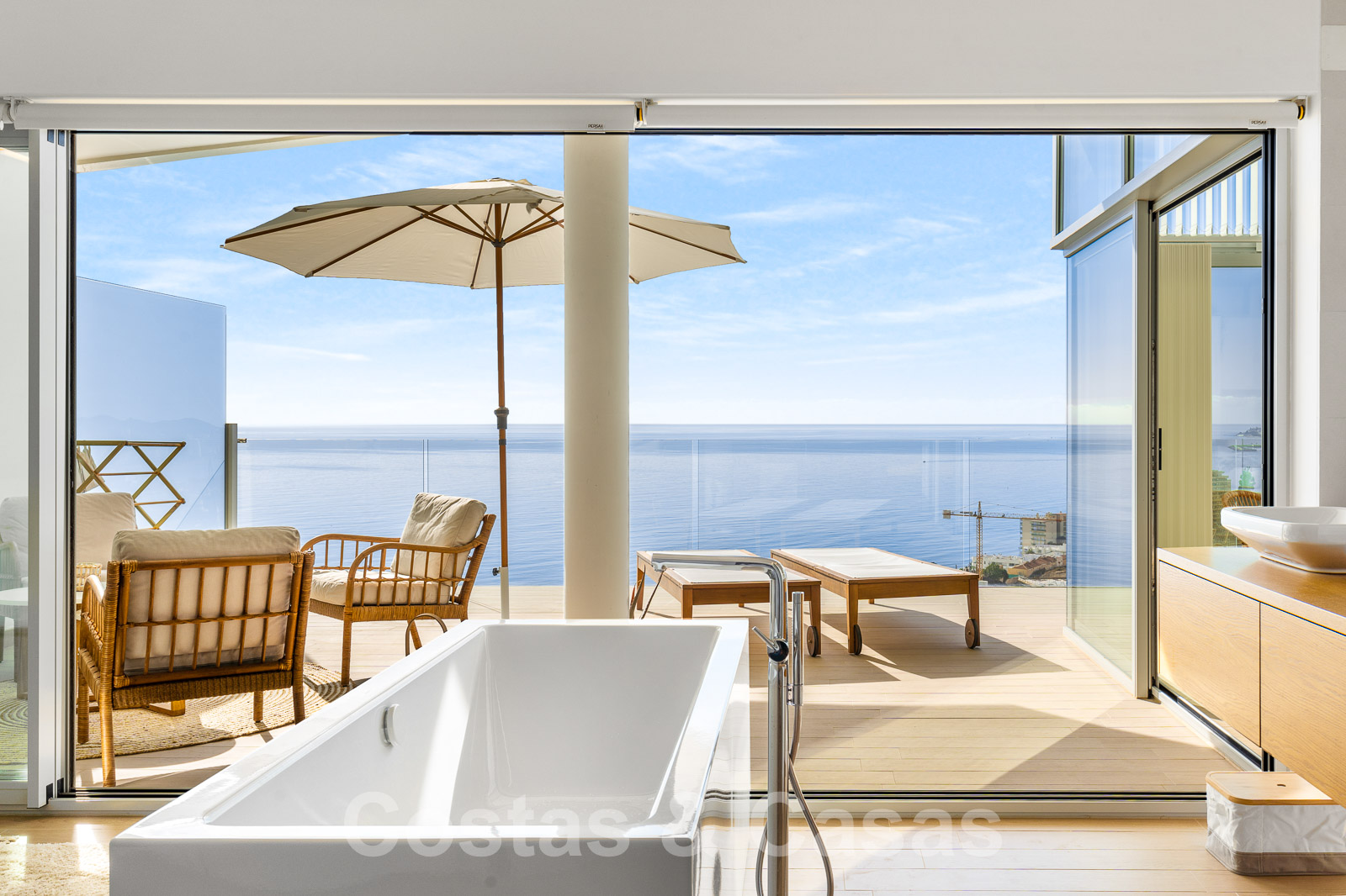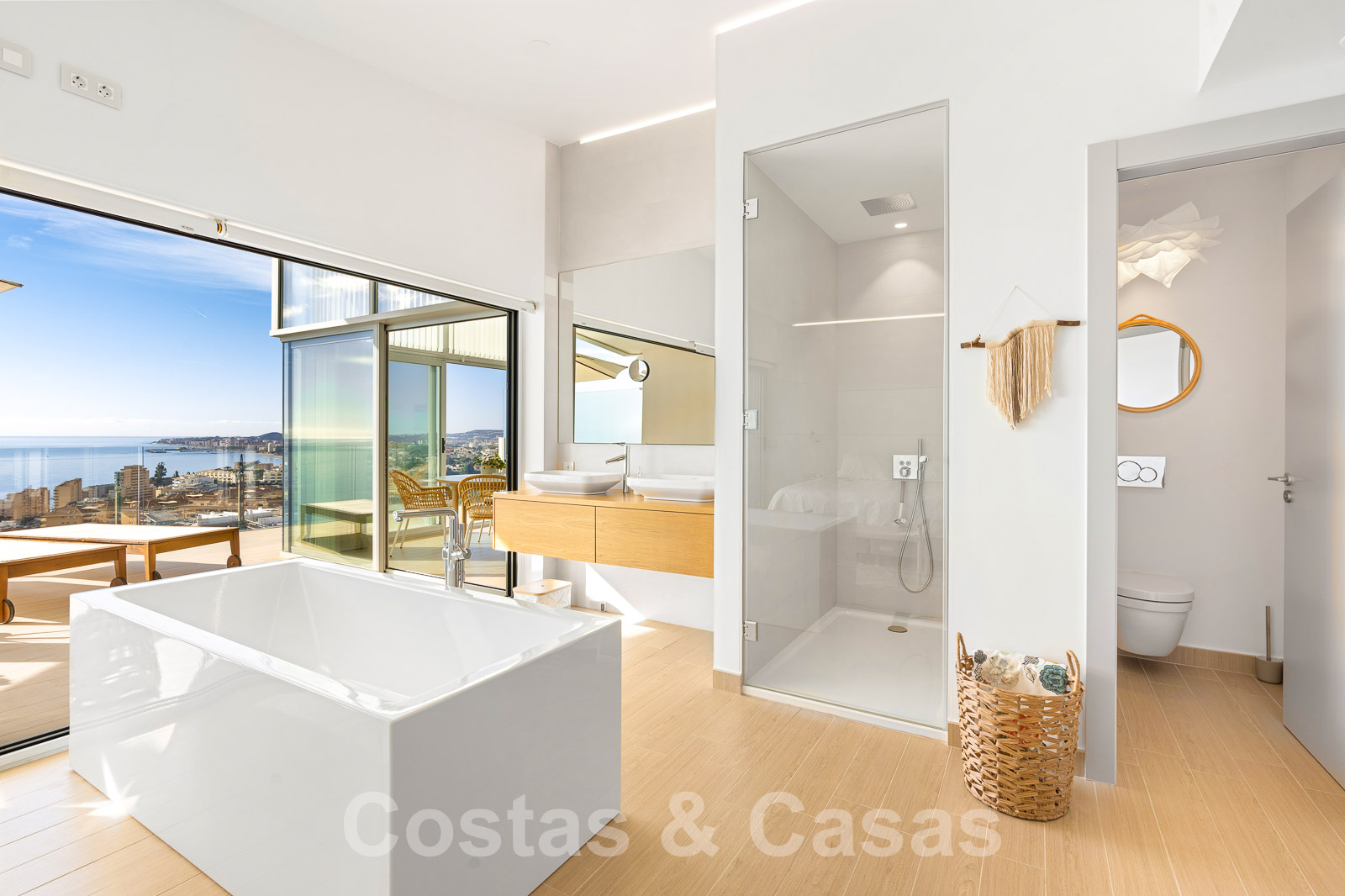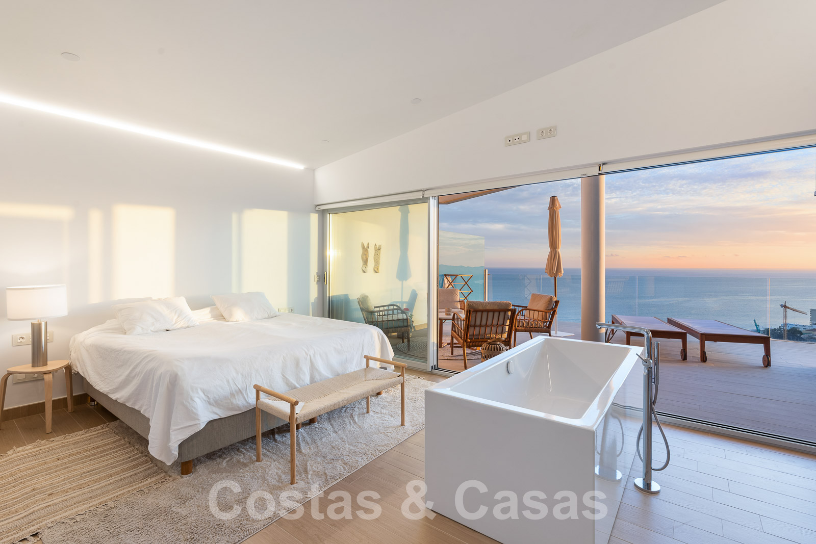 La chambre principale dispose d'une salle de bain en-suite et est attenante à la terrasse qui offre des vues incomparables sur la mer et la baie de Fuengirola.