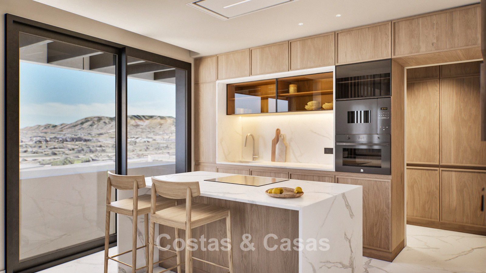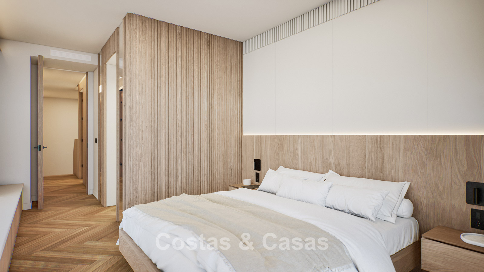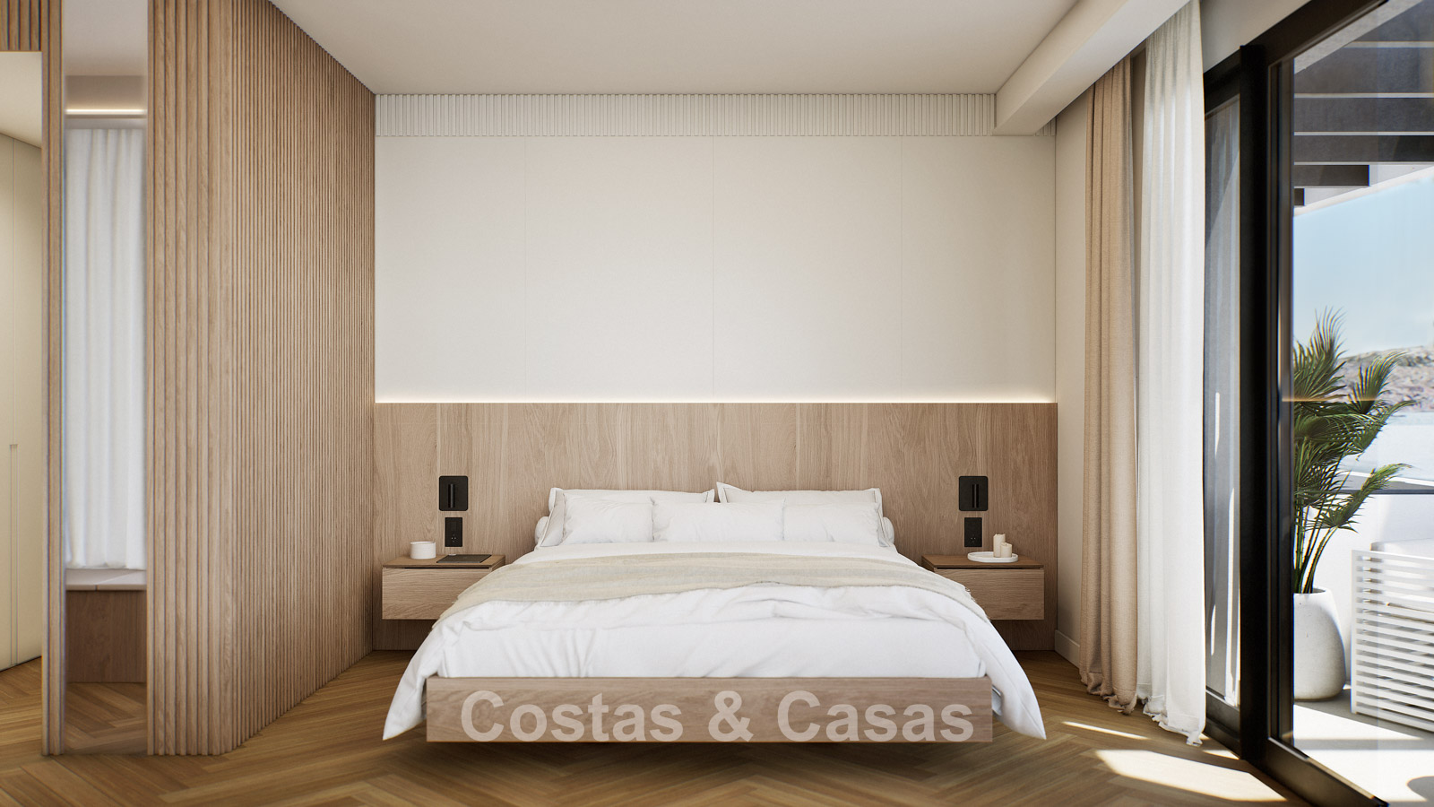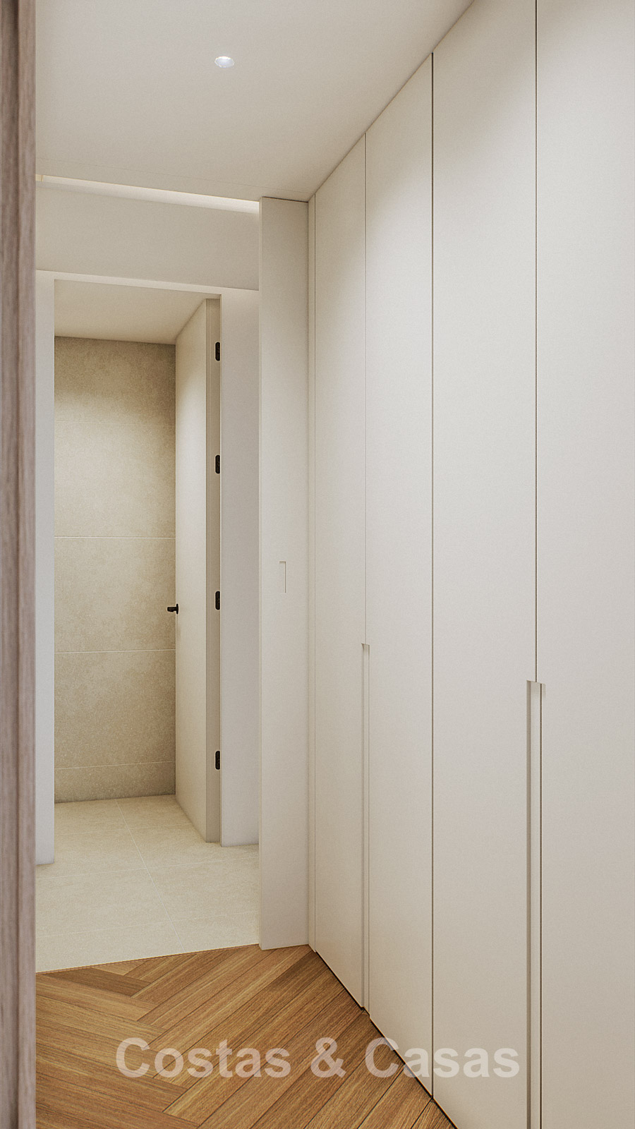 Autres caractéristiques : Certificat énergétique A. Climatisation pour le refroidissement et le chauffage. Pompe à chaleur pour la production d'eau chaude sanitaire. Porte extérieure renforcée avec finition en bois naturel. Portes de 2,40 m de hauteur avec charnières dissimulées dans les salles de bains. Portes de 2,50 m de hauteur avec charnières dissimulées dans les chambres. Armoires encastrées sur mesure. Éclairage LED. Balustrades en verre autour de la terrasse. Système domotique avancé contrôlable depuis l'écran tactile intégré ou les appareils mobiles. Stores motorisés. Système d'interphone vidéo intégré. Système d'alarme.