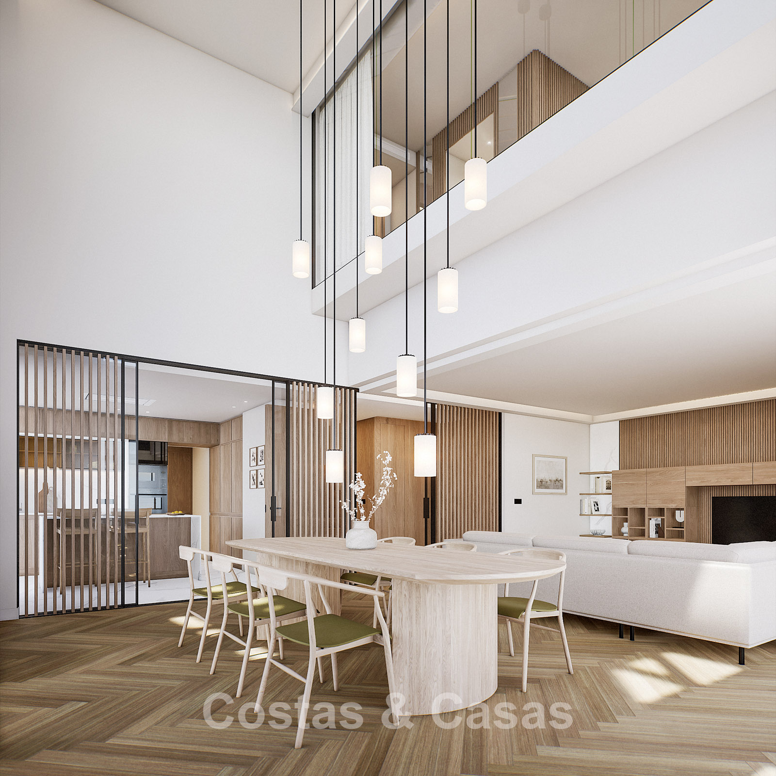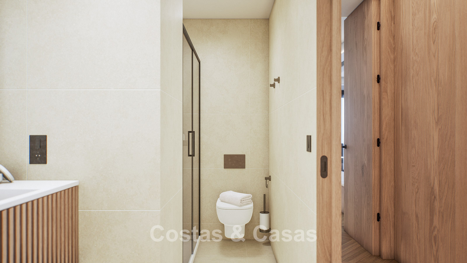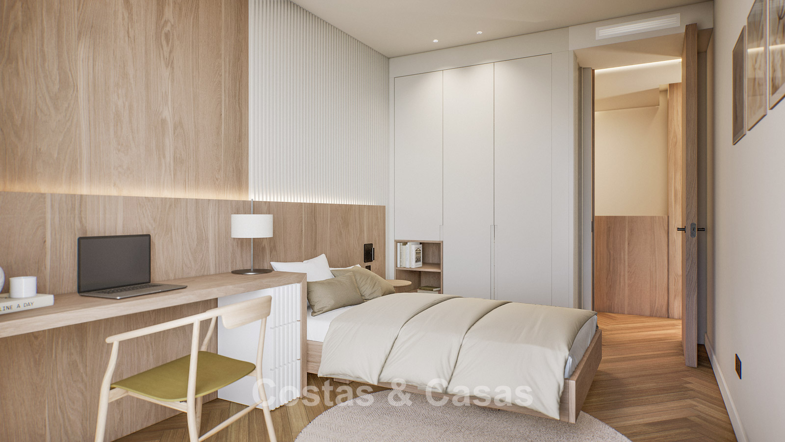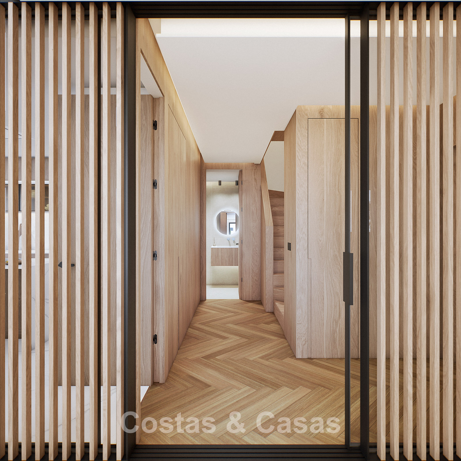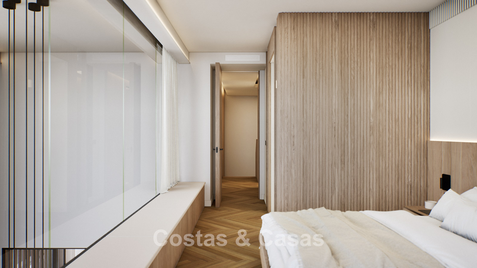 Autres caractéristiques : Certificat énergétique A. Climatisation pour le refroidissement et le chauffage. Pompe à chaleur pour la production d'eau chaude sanitaire. Porte extérieure renforcée avec finition en bois naturel. Portes de 2,40 m de hauteur avec charnières dissimulées dans les salles de bains. Portes de 2,50 m de hauteur avec charnières dissimulées dans les chambres. Armoires encastrées sur mesure. Éclairage LED. Balustrades en verre autour de la terrasse. Système domotique avancé contrôlable depuis l'écran tactile intégré ou les appareils mobiles. Stores motorisés. Système d'interphone vidéo intégré. Système d'alarme.