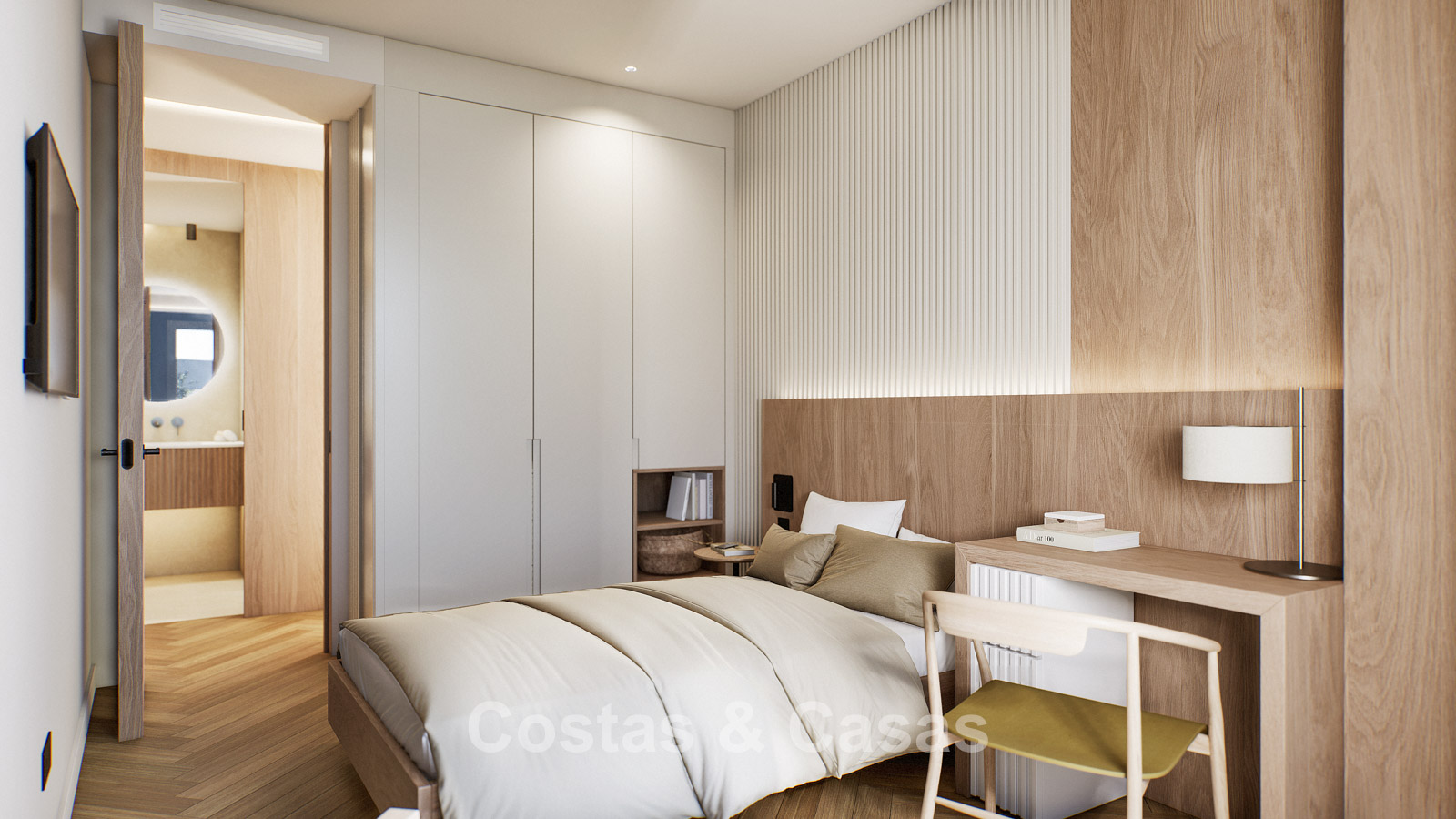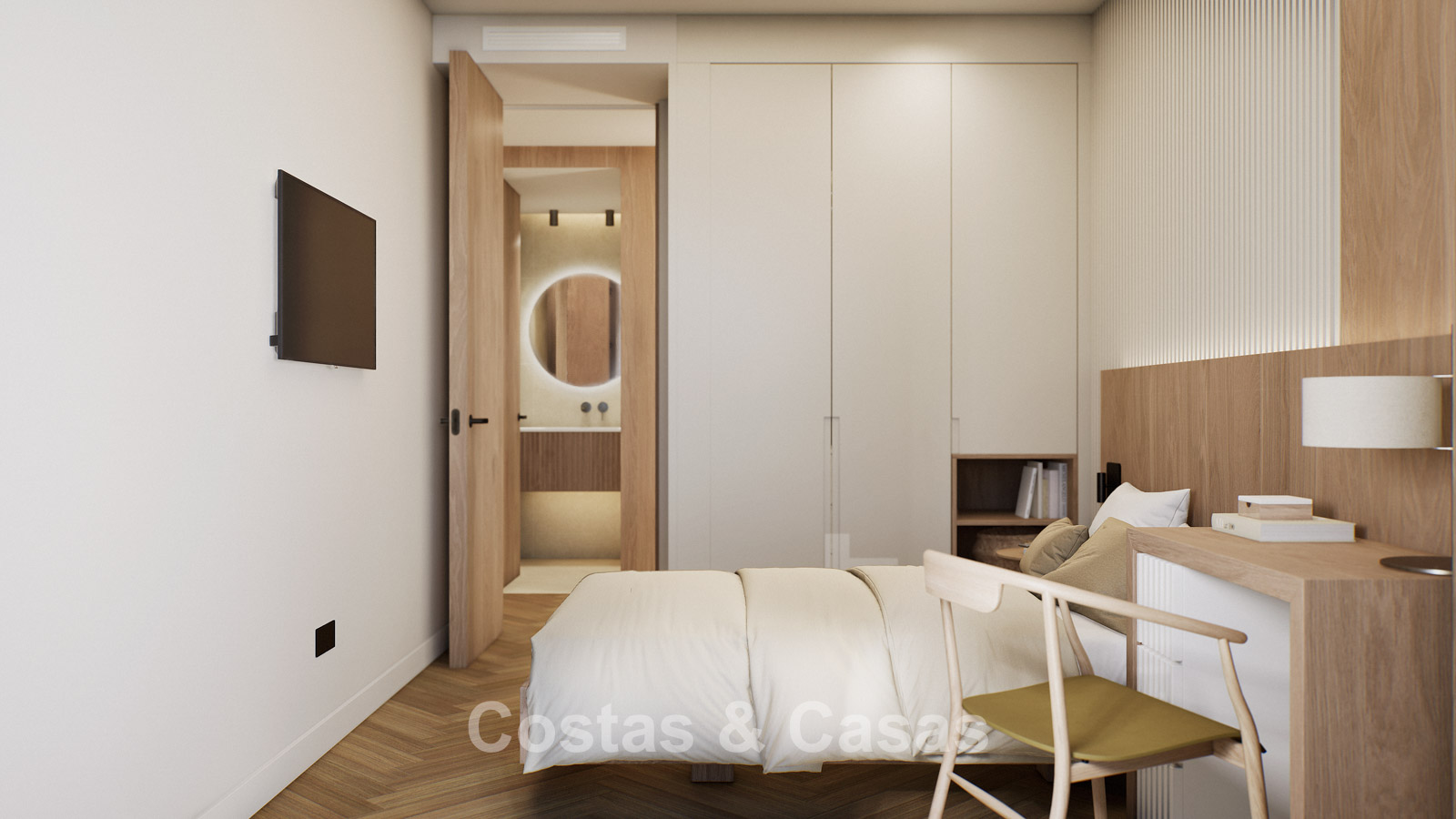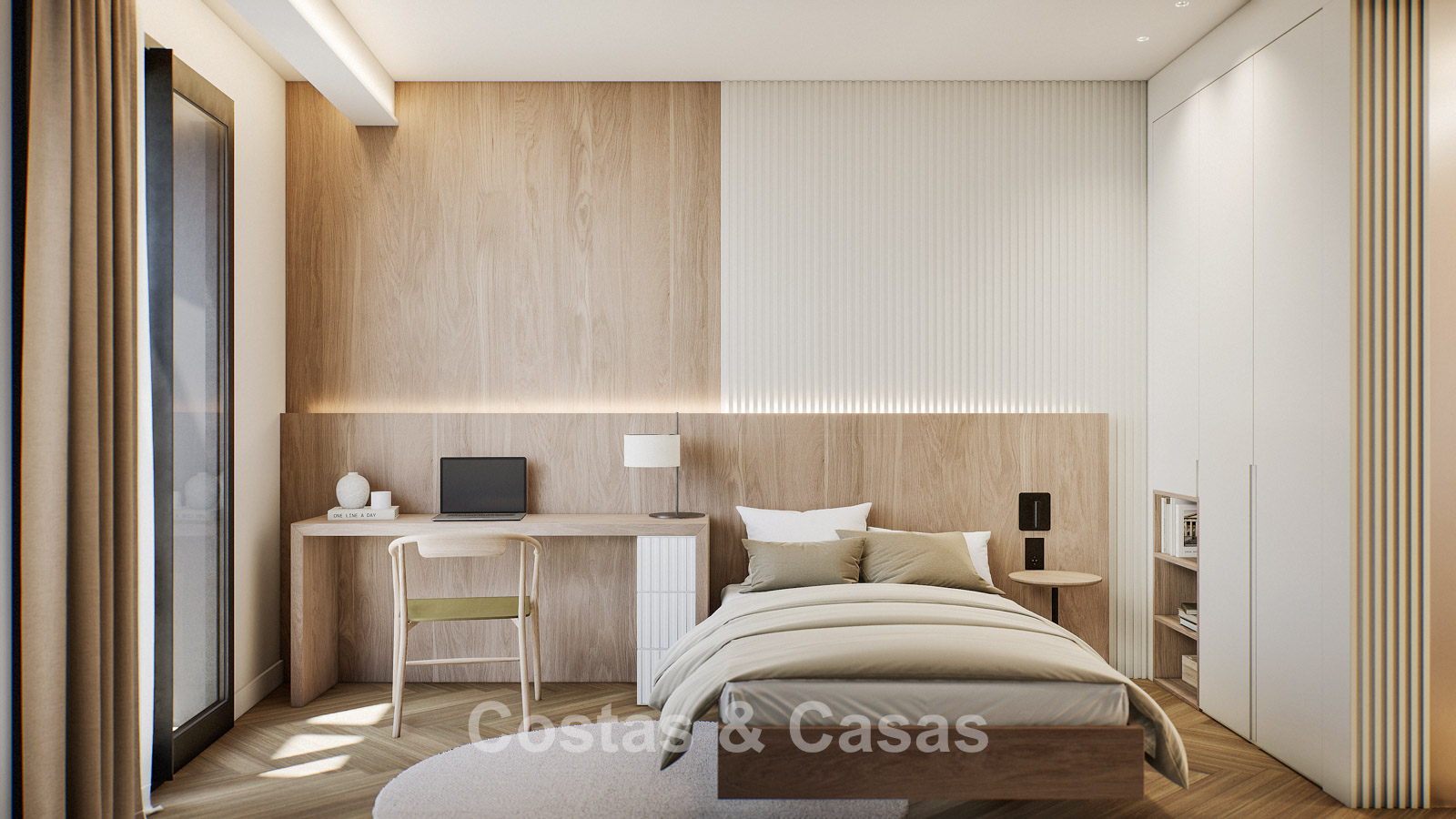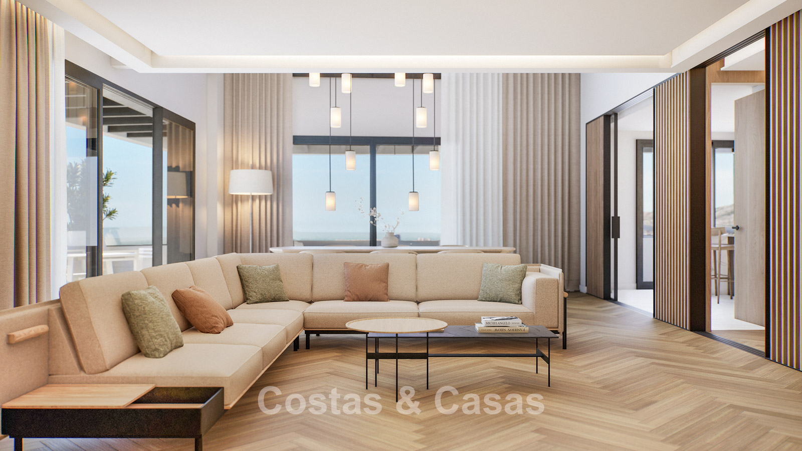 Autres caractéristiques : Certificat énergétique A. Climatisation pour le refroidissement et le chauffage. Pompe à chaleur pour la production d'eau chaude sanitaire. Porte extérieure renforcée avec finition en bois naturel. Portes de 2,40 m de hauteur avec charnières dissimulées dans les salles de bains. Portes de 2,50 m de hauteur avec charnières dissimulées dans les chambres. Armoires encastrées sur mesure. Éclairage LED. Balustrades en verre autour de la terrasse. Système domotique avancé contrôlable depuis l'écran tactile intégré ou les appareils mobiles. Stores motorisés. Système d'interphone vidéo intégré. Système d'alarme.