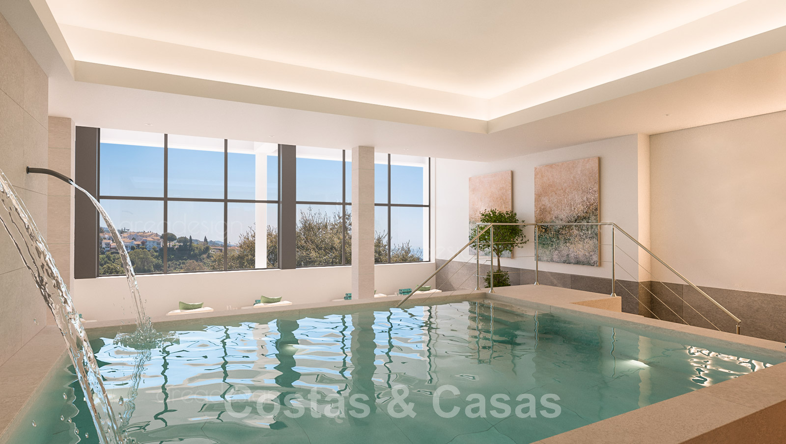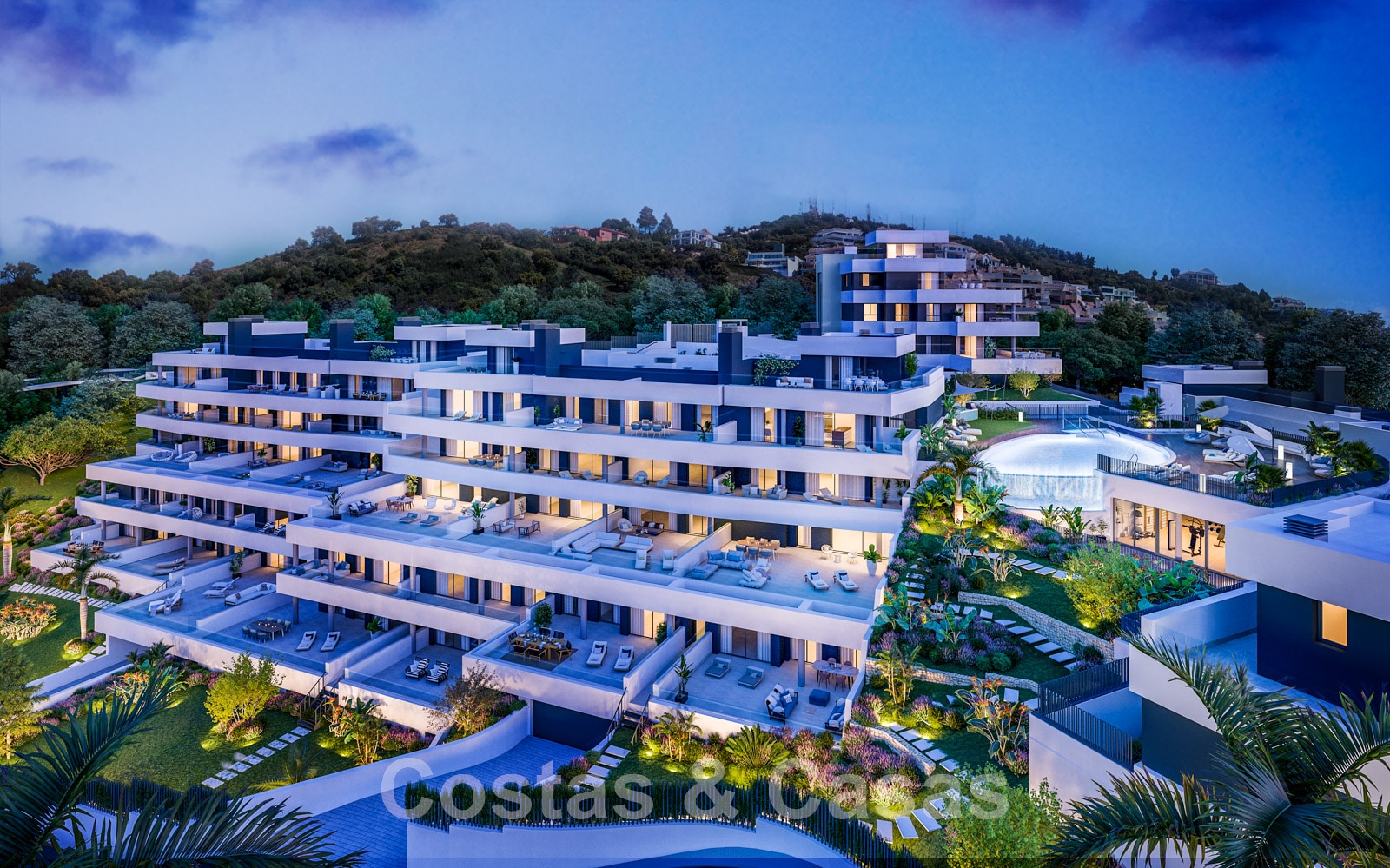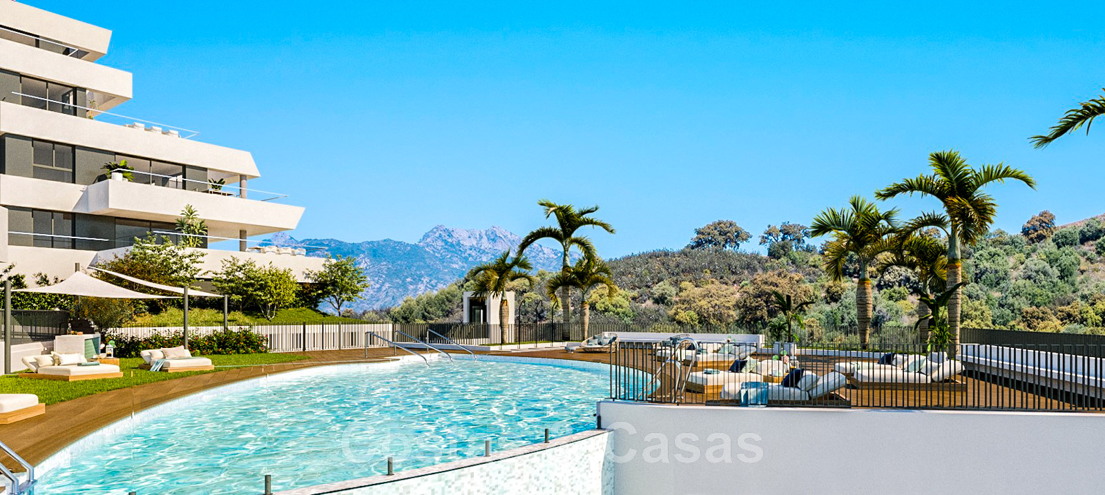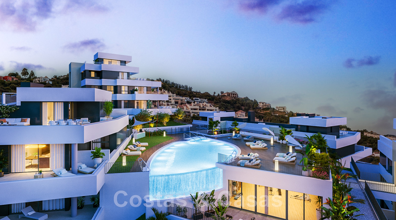 Ce nouveau complexe moderne comprend 3 phases. La phase 1 consiste en 39 appartements et penthouses de 2 ou 3 chambres à coucher, répartis sur 3 bâtiments. Dans la phase 2, il y aura quelques penthouses de 4 chambres à coucher disponibles. Il s'agit d'un complexe moderne doté de grands jardins paysagers communs et d'équipements tels que 3 piscines extérieures, une piscine intérieure chauffée, une salle de sport entièrement équipée avec terrasse et salle polyvalente pour les activités programmées, un bar de piscine, un spa et un espace de travail.