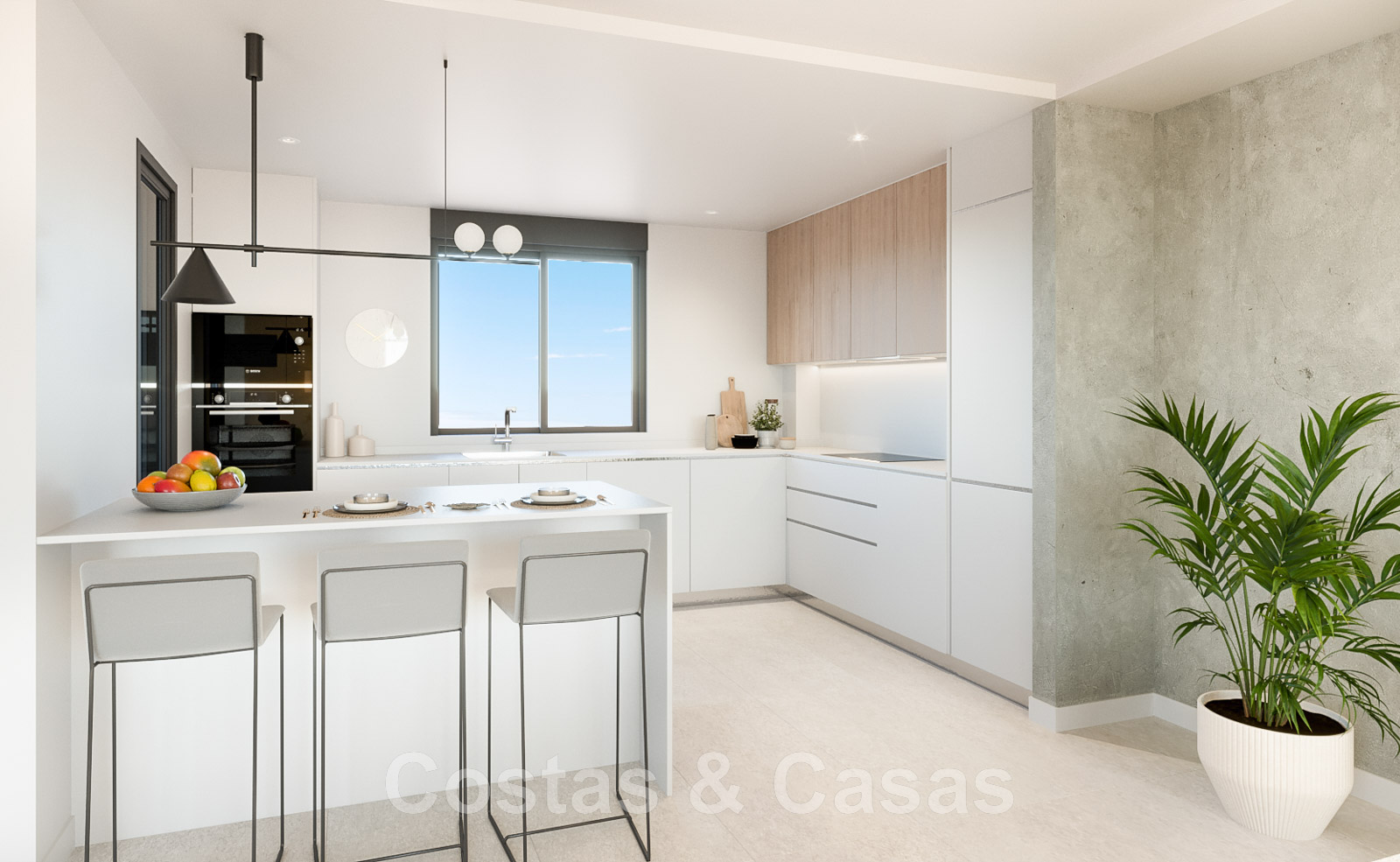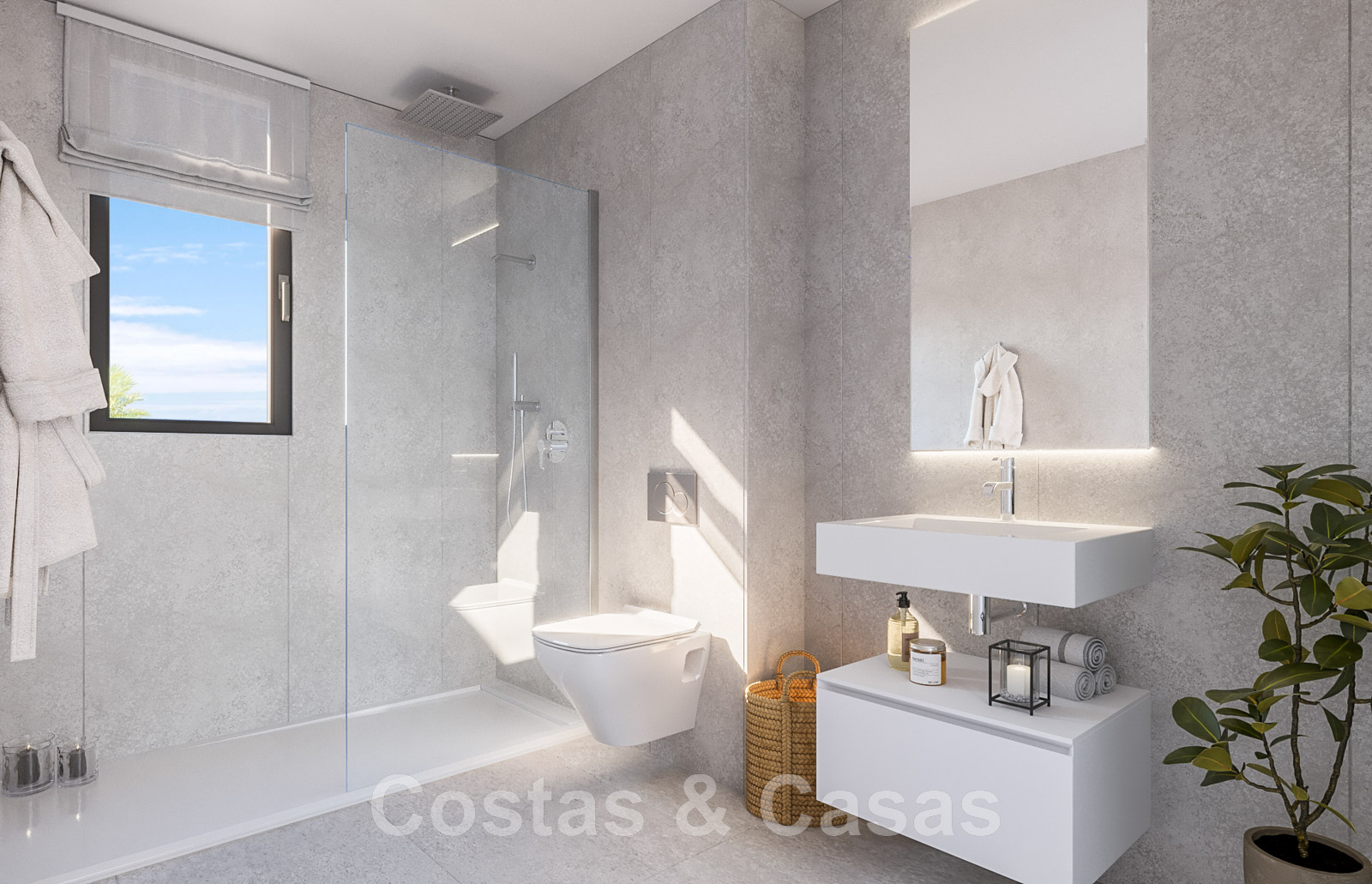 Autres caractéristiques : Classification énergétique B Menuiserie extérieure en finition aluminium laqué avec double vitrage à isolation thermique insonorisée Porte d'entrée sécurisée Stores automatisés dans les chambres Cuisine moderne entièrement équipée avec des meubles hauts et bas et un plan de travail Appareils électroménagers inclus : four, micro-ondes, plaque à induction, lave-linge, lave-vaisselle et réfrigérateur Portes intérieures laquées Placards modulaires encastrés dans les chambres Chauffage par le sol et eau chaude par système aérothermique Climatisation par zonage pour le refroidissement et le chauffage Grande dalle en grès cérame - 3 options de couleur - taille 120X60cm Vanités de salle de bains avec unité de rangement suspendue et miroir rétro-éclairé Toilette suspendue Robinets thermostatiques Parois de douche en verre Plafonds suspendus avec points lumineux Connexions TV, téléphone et télécommunications dans toutes les pièces Downlights ou lampes à LED sur la terrasse Système domotique intégré avec interphone vidéo