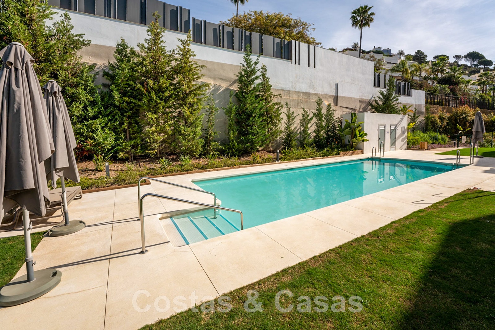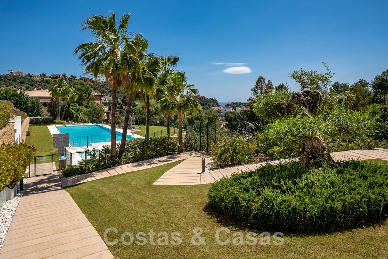 Appartement de rez-de-chaussée surélevé, prêt à être emménagé, à vendre avec vue panoramique sur la vallée et la mer dans un quartier exclusif de Benahavis - Marbella