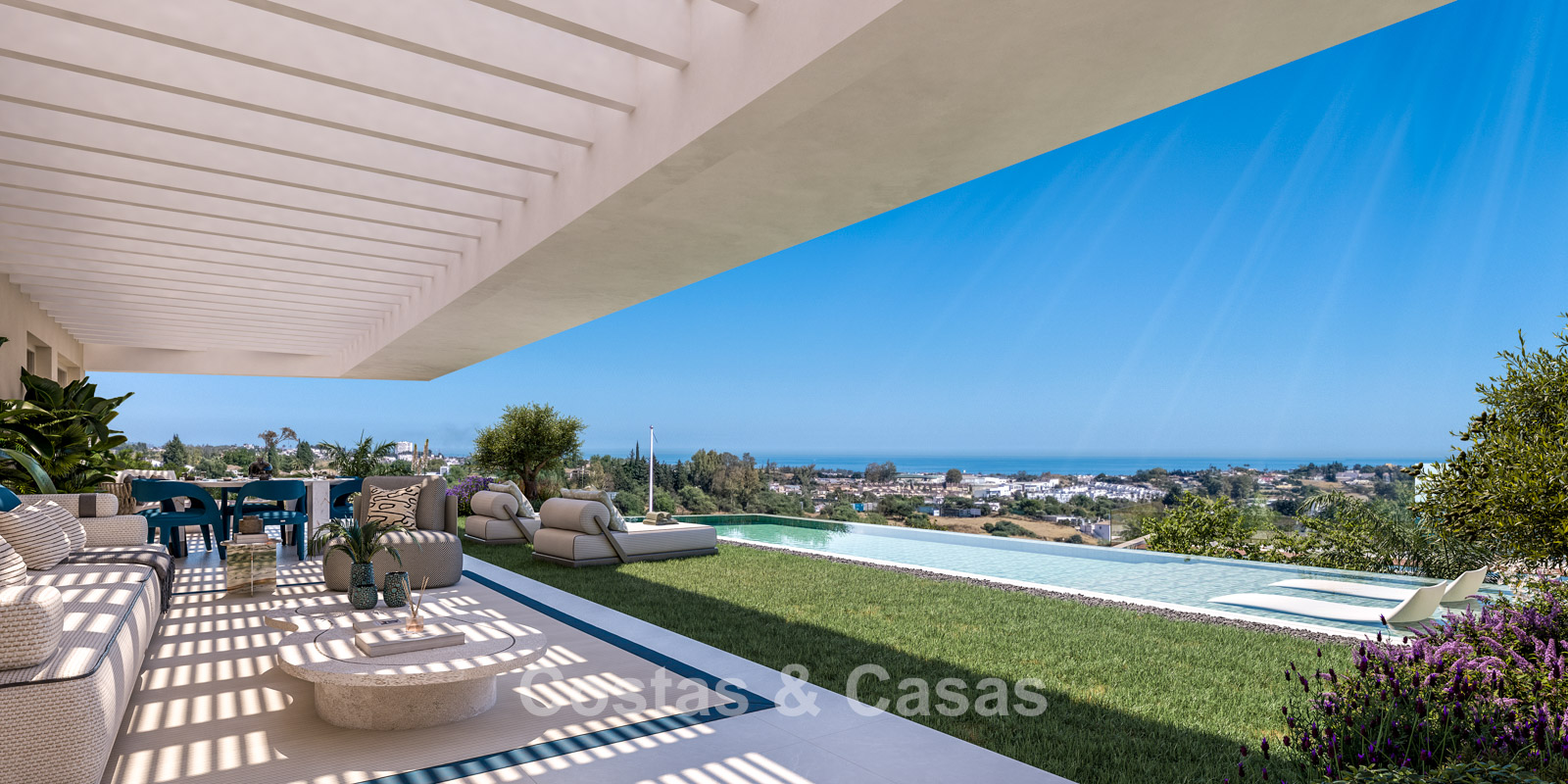 Collection boutique exclusive de 21 résidences de luxe spacieuses. Conçues avec un accent particulier sur l’efficacité énergétique et l’innovation technologique. Orientation idéale sud et sud-est. Situation surélevée offrant des vues panoramiques dégagées sur la mer Méditerranée. Appartements et penthouses de 2 ou 3 chambres. Terrasses ouvertes et couvertes conviviales, idéales pour les espaces détente et repas. Les appartements en rez-de-chaussée et les penthouses disposent d’une piscine privée avec système d’électrolyse au sel et finition en porcelaine « vert Bali ». Espaces de vie ouverts comprenant salon et salle à manger. Baies vitrées coulissantes toute hauteur avec profils encastrés assurant une transition fluide entre intérieur et extérieur et une luminosité optimale. Cuisine ouverte entièrement équipée avec électroménagers de qualité. Parking souterrain.