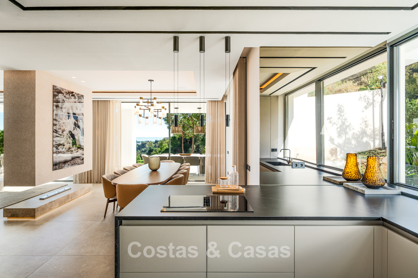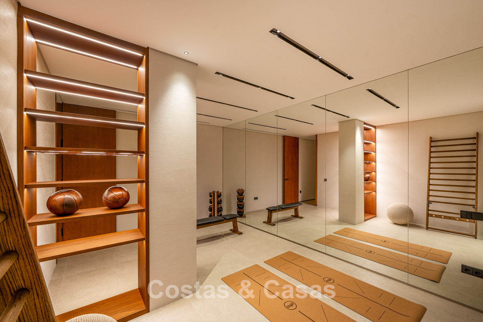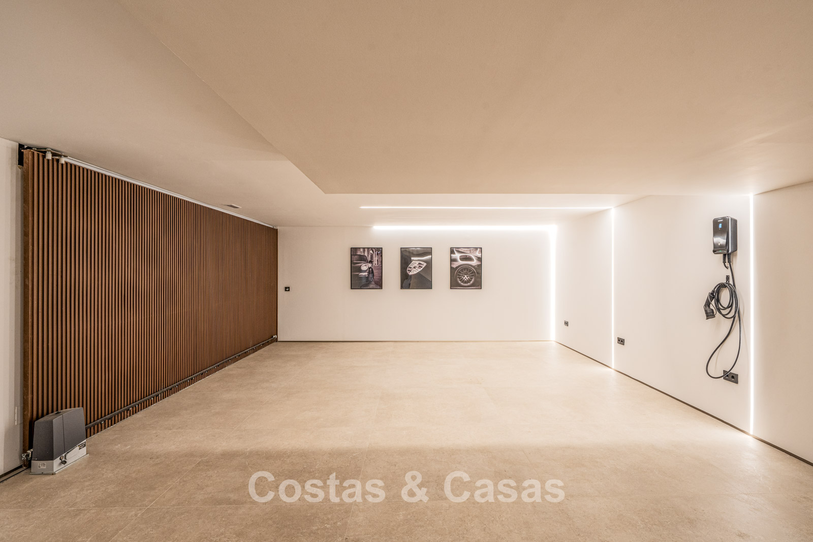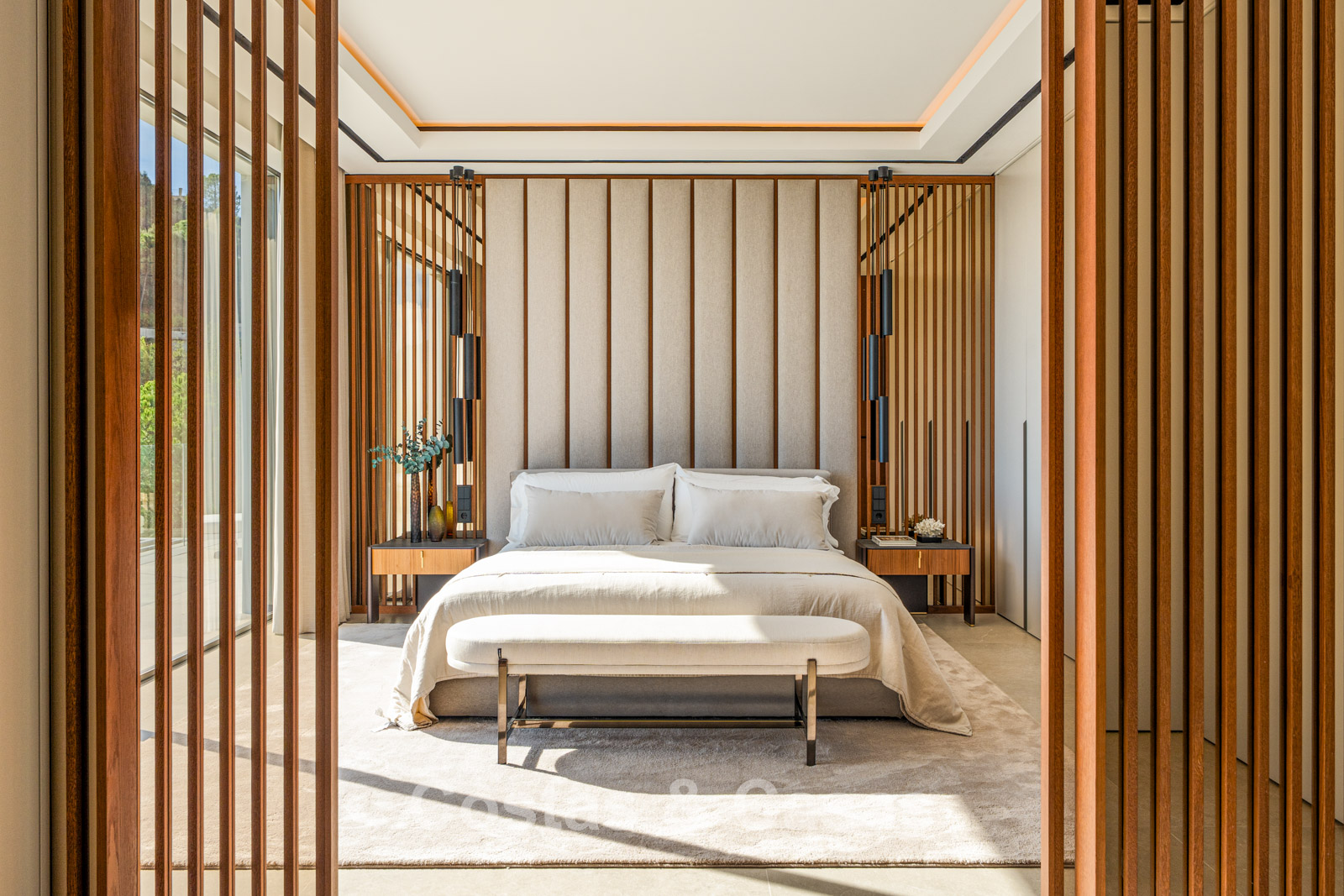 L’architecture combine des lignes contemporaines épurées et symétriques avec de subtiles influences méditerranéennes, donnant naissance à une villa élégante et intemporelle. Construite avec des matériaux haut de gamme soigneusement sélectionnés et des finitions raffinées. Orientée sud-est. Vues dégagées sur les parcours de golf, la célèbre montagne La Concha et la Méditerranée. Hall d’entrée imposant avec plafond double hauteur. Baies vitrées coulissantes du sol au plafond, avec profils intégrés, offrant une luminosité abondante et une transition fluide entre l’intérieur et l’extérieur. Disposition ouverte. Séjour lumineux et spacieux avec coin TV et salle à manger. Cuisine haut de gamme sur mesure, parfaitement intégrée au séjour, équipée d’appareils Gaggenau et d’un bar petit-déjeuner. 6 chambres, 7 salles de bains et 2 toilettes invités. Espace social élégant au niveau inférieur avec coin TV, bar et spa comprenant une piscine intérieure chauffée, sauna et salle de sport. Buanderie équipée avec matériel Miele. Garage intégré pour 2 voitures avec point de charge pour véhicules électriques.