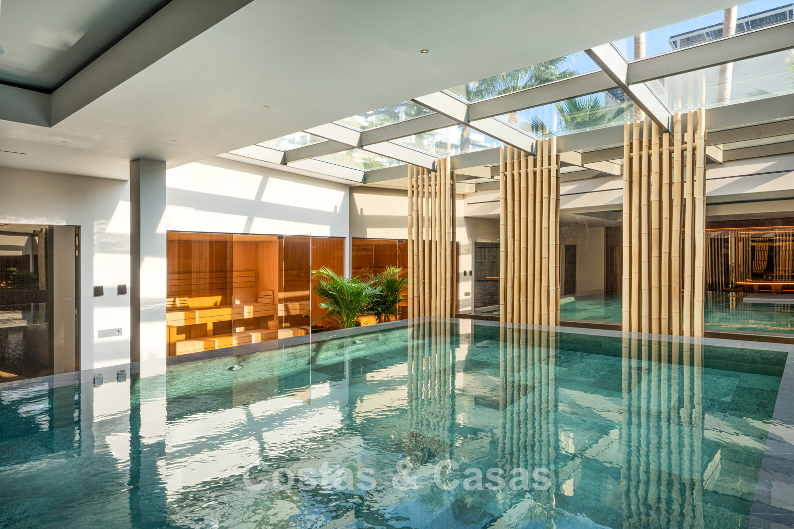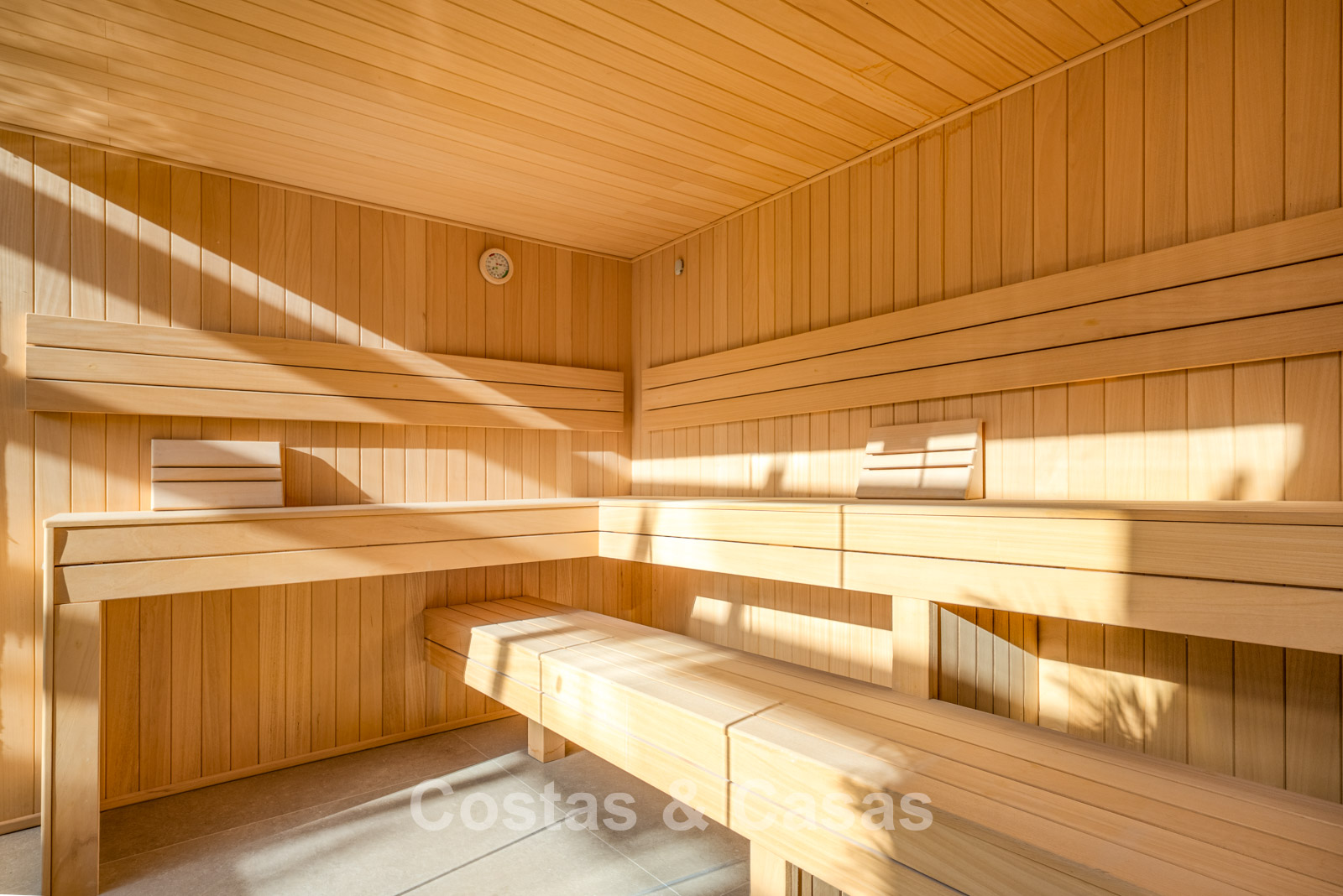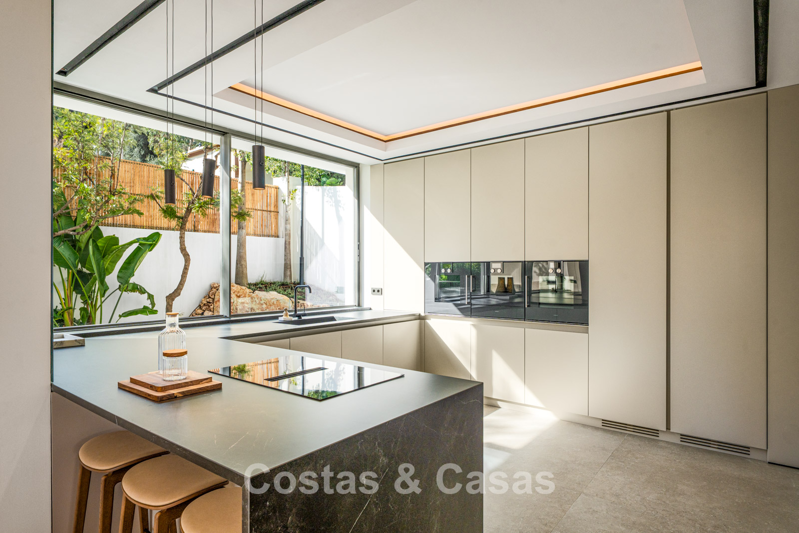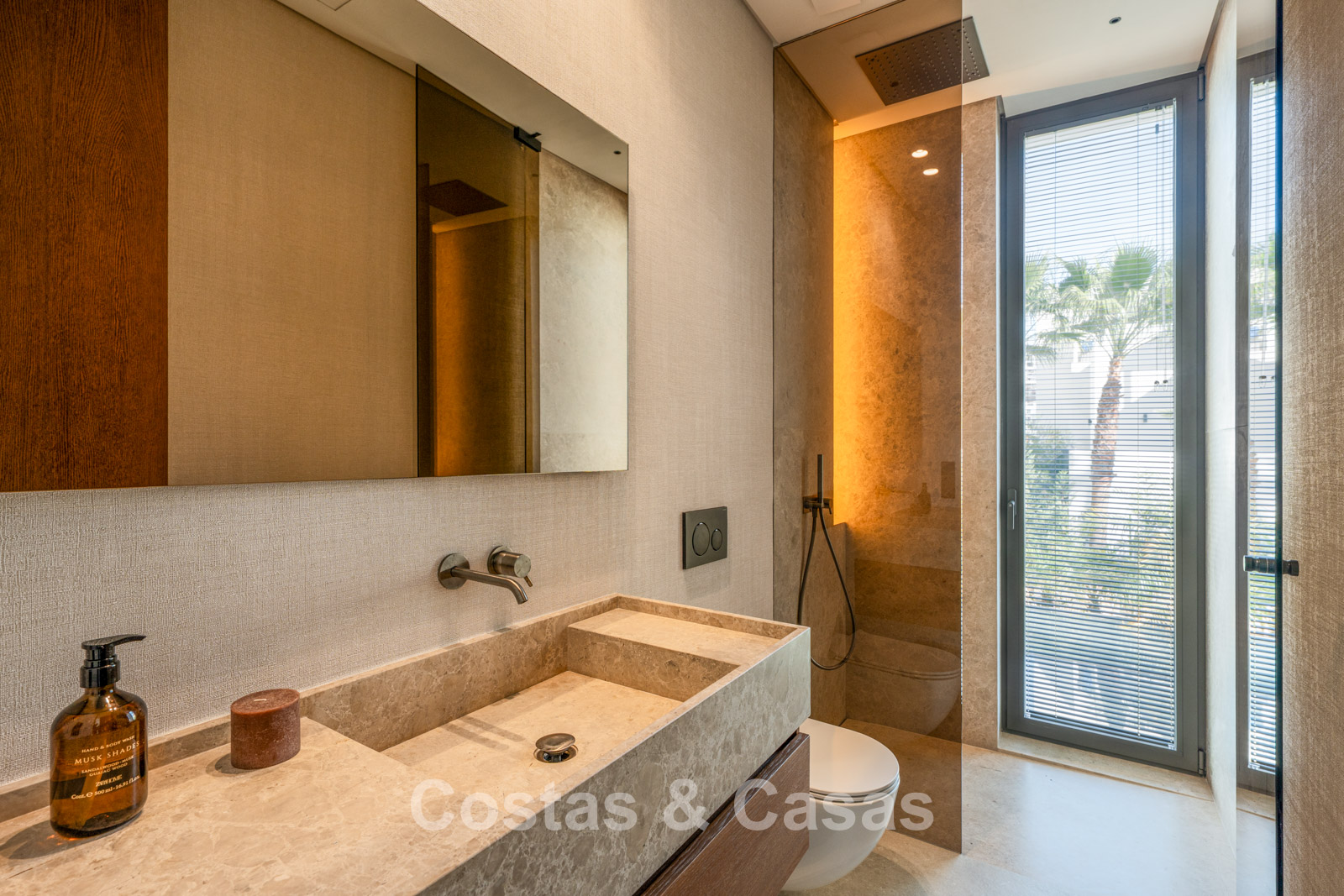 L’architecture combine des lignes contemporaines épurées et symétriques avec de subtiles influences méditerranéennes, donnant naissance à une villa élégante et intemporelle. Construite avec des matériaux haut de gamme soigneusement sélectionnés et des finitions raffinées. Orientée sud-est. Vues dégagées sur les parcours de golf, la célèbre montagne La Concha et la Méditerranée. Hall d’entrée imposant avec plafond double hauteur. Baies vitrées coulissantes du sol au plafond, avec profils intégrés, offrant une luminosité abondante et une transition fluide entre l’intérieur et l’extérieur. Disposition ouverte. Séjour lumineux et spacieux avec coin TV et salle à manger. Cuisine haut de gamme sur mesure, parfaitement intégrée au séjour, équipée d’appareils Gaggenau et d’un bar petit-déjeuner. 6 chambres, 7 salles de bains et 2 toilettes invités. Espace social élégant au niveau inférieur avec coin TV, bar et spa comprenant une piscine intérieure chauffée, sauna et salle de sport. Buanderie équipée avec matériel Miele. Garage intégré pour 2 voitures avec point de charge pour véhicules électriques.