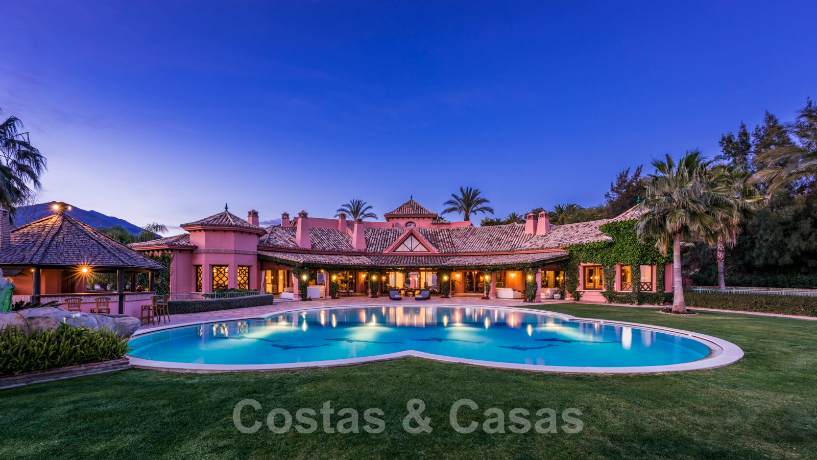 Construit sur un grand terrain de 24.000 m2 avec un beau jardin somptueux rempli de plantes matures