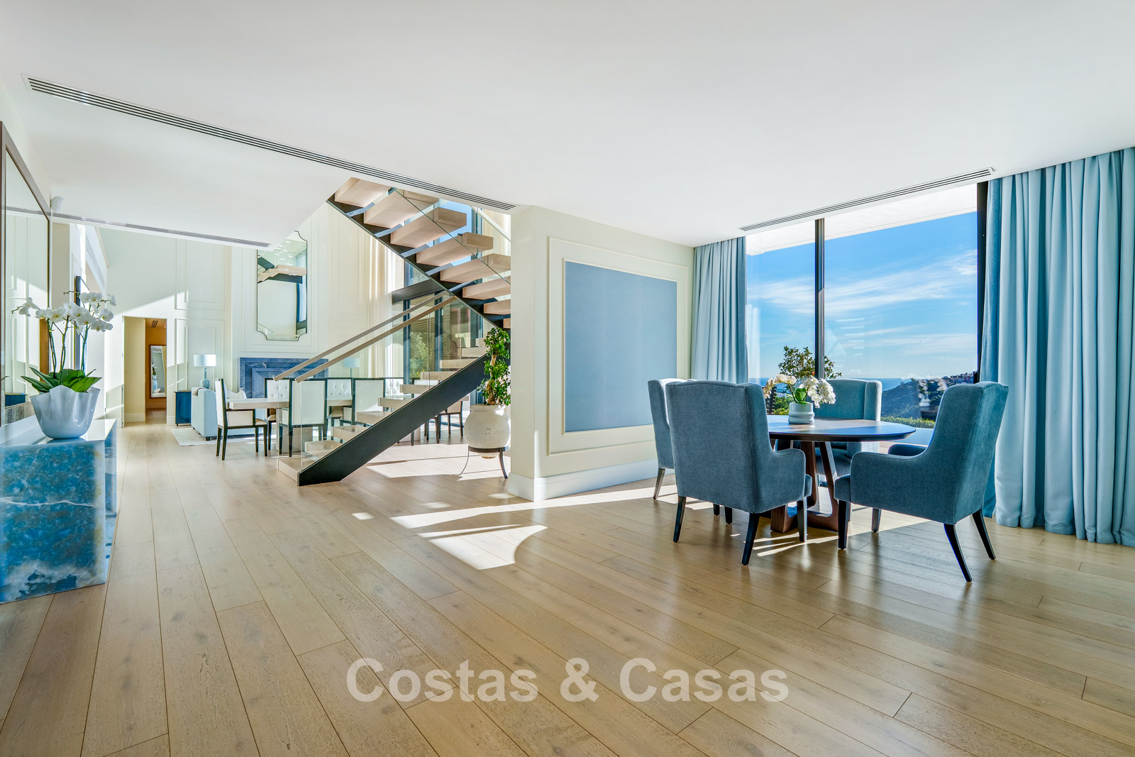 Caractéristiques supplémentaires : Ascenseur privé Climatisation réversible (chaud/froid) Chauffage au sol dans toute la maison Cheminée Placards intégrés sur mesure Parquets en bois naturel à l’intérieur Travertin antidérapant sur les terrasses Double vitrage Garde-corps en verre Système domotique avancé contrôlable via application mobile Éclairage LED intérieur et extérieur Stores et rideaux automatiques programmés selon le lever et le coucher du soleil