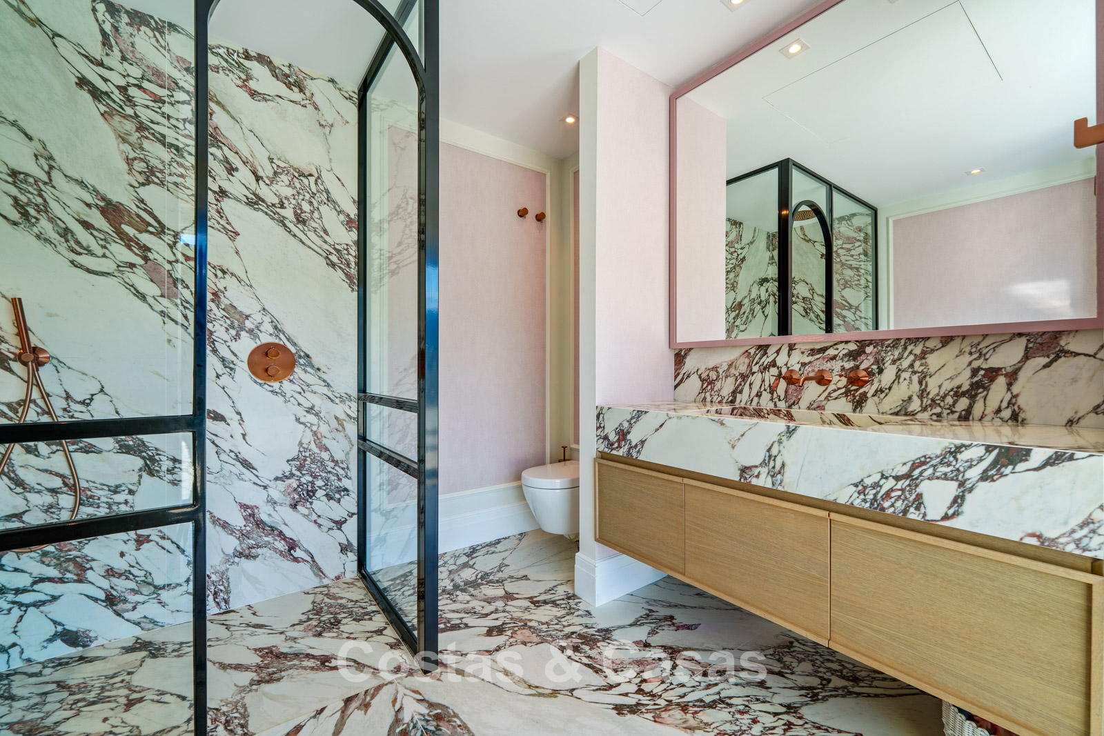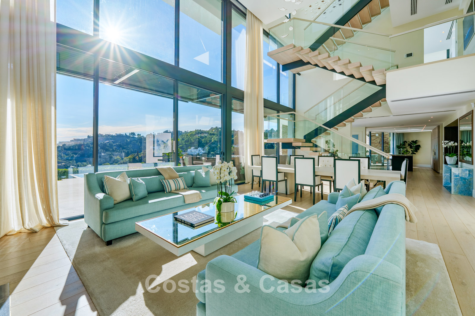 Nichée dans les collines verdoyantes de Benahavís, au sein de l’urbanisation exclusive et très recherchée El Madroñal. Vivre à El Madroñal, c’est profiter d’une parfaite harmonie entre calme, nature et confort, tout en ayant toutes les commodités à proximité. L’environnement boisé, caractérisé par une faible densité de construction, est entièrement clôturé et sécurisé, garantissant une intimité et une tranquillité absolues. À seulement quelques minutes en voiture se trouvent divers services, dont une supérette pour les besoins quotidiens. Les lieux emblématiques et animés de Puerto Banús et Marbella, avec leurs plages magnifiques et leur offre gastronomique et commerciale raffinée, sont accessibles en 6 à 10 minutes. La prestigieuse Golf Valley de Nueva Andalucía se situe également à proximité, véritable paradis pour les amateurs de golf. Le charmant village de Benahavís, reconnu comme la référence gastronomique de la région, se trouve à courte distance et propose une large sélection de restaurants haut de gamme.