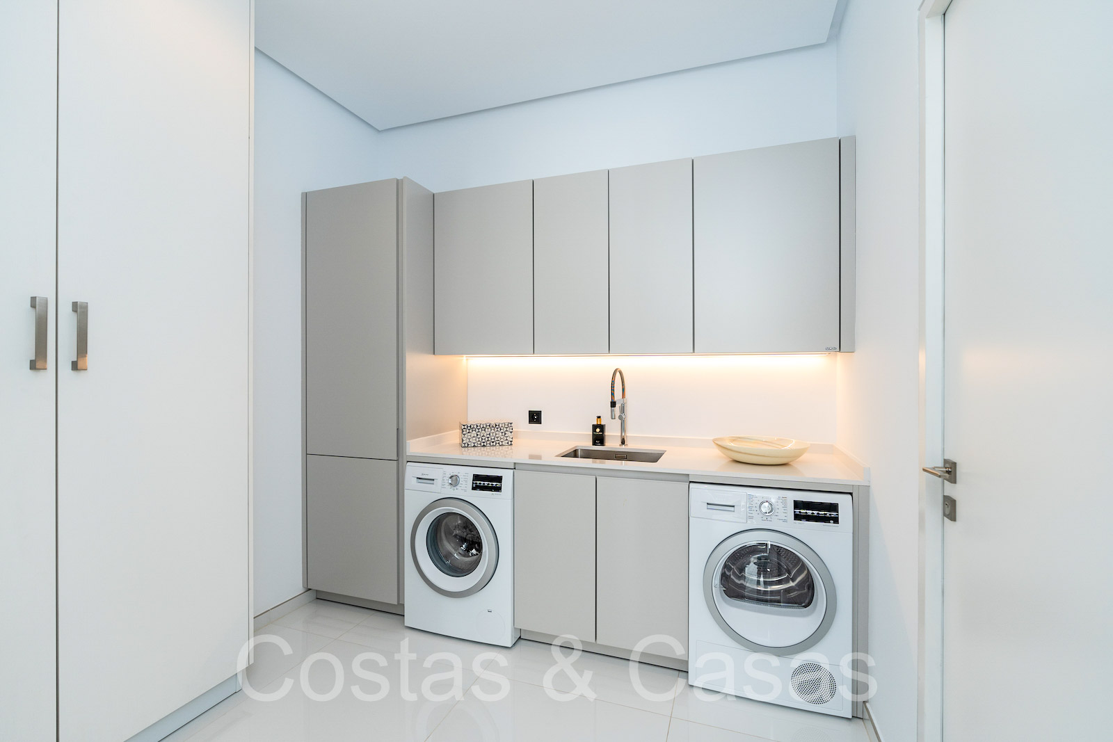 Autres caractéristiques: Climatisation pour le refroidissement et le chauffage. Chauffage au sol dans les salles de bains. Énergie solaire. Cheminée. Armoires intégrées. Balustrades en verre. Système domotique. Lumière d'extérieure. Auvents. Système d'irrigation automatique. Meublée en option.