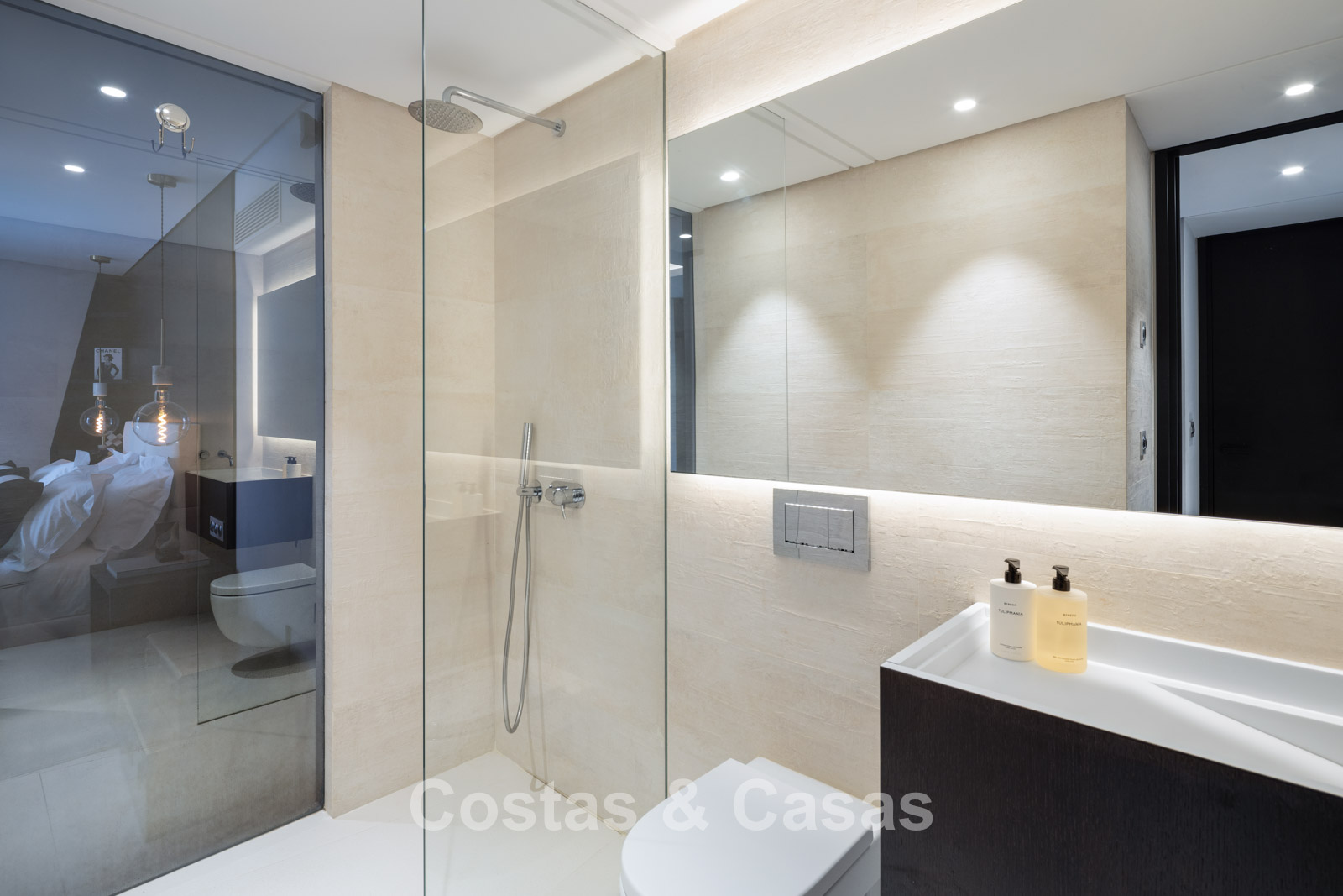 Autres caractéristiques : Certificat énergétique C. Climatisation pour le refroidissement et le chauffage. Armoires encastrées sur mesure. Cheminée au bioéthanol. Double vitrage. Balustrades en verre autour de la terrasse. Éclairage LED intérieur et extérieur. Douche extérieure. Système d'irrigation automatique.