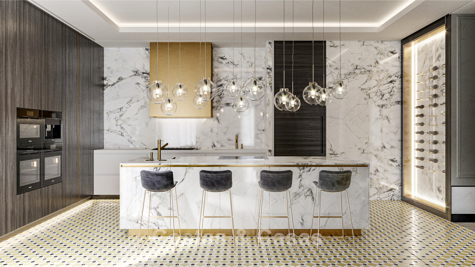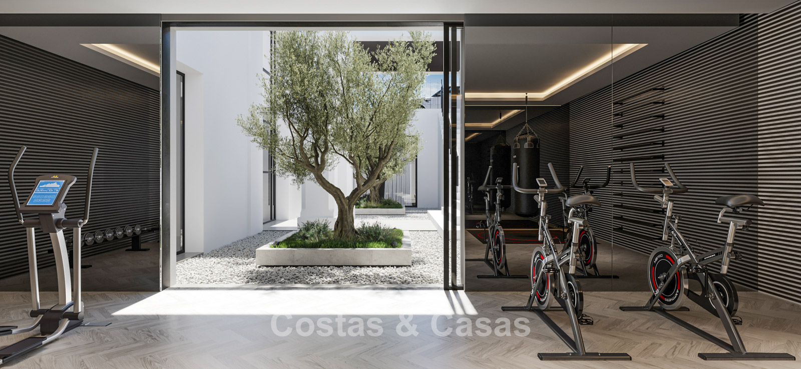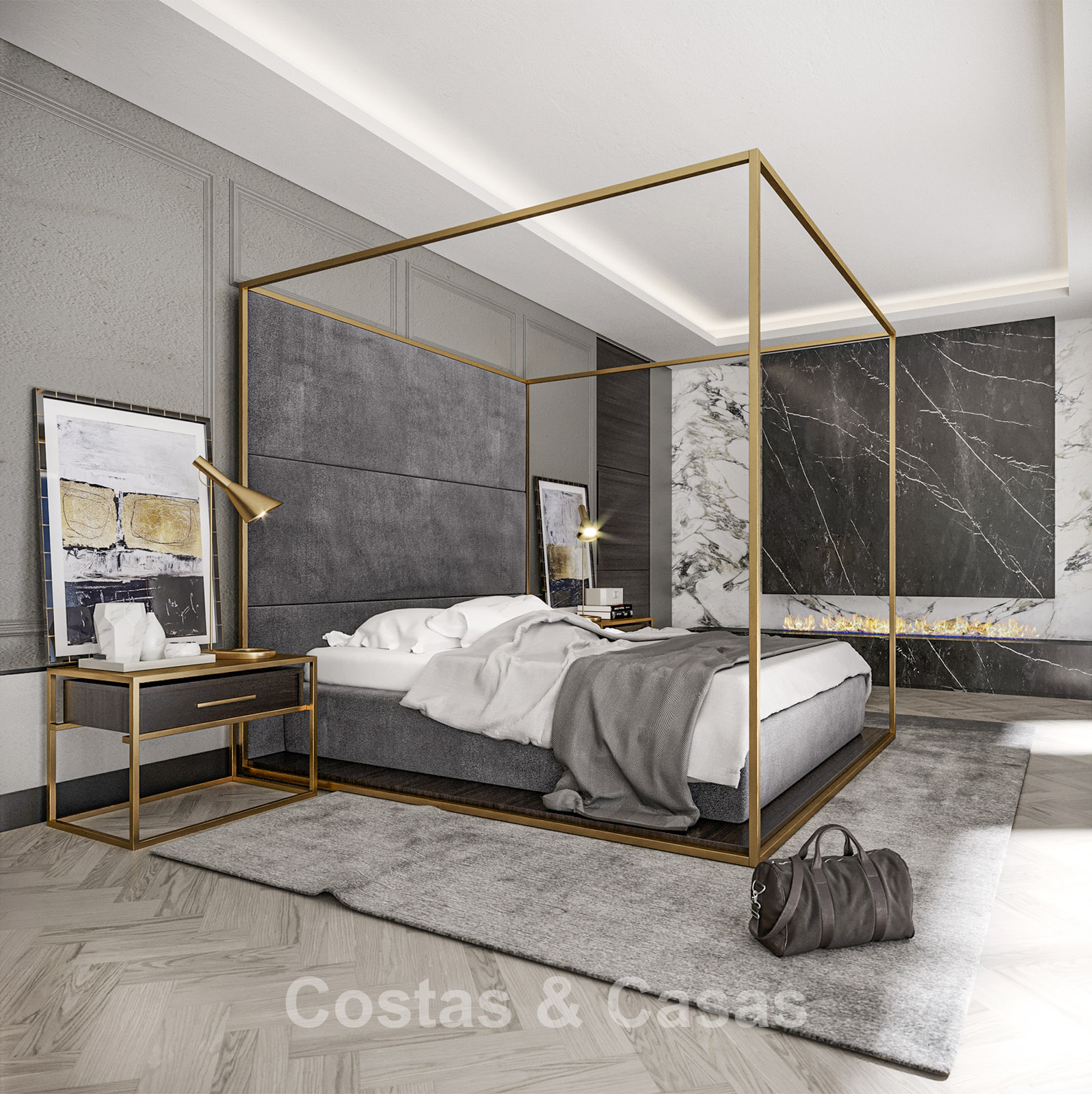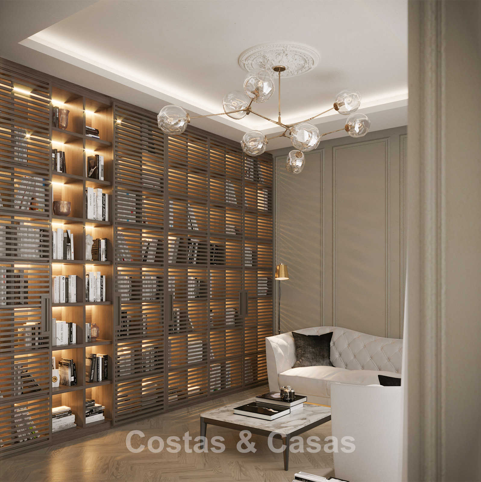 Villa individuelle à l'architecture raffinée. Conçue avec un excellent savoir-faire, des matériaux durables et un design personnalisé. Les fenêtres coulissantes du sol au plafond avec cadres encastrés assurent une transition harmonieuse entre l'intérieur et l'extérieur et permettent à une lumière naturelle abondante de circuler. L'intérieur tendance dégage un design chic et luxueux, avec des matériaux raffinés et des accents élégants. Un espace de vie spacieux combine un salon élégant avec une salle à manger à la mode. La cuisine sur mesure est équipée d'armoires du sol au plafond, d'un mur à vin tendance à la fois fonctionnel et décoratif, et d'un élégant îlot de cuisson en marbre avec bar à petit-déjeuner intégré. Au total, il y a 6 chambres chacune avec sa propre terrasse et 9 salles de bains. De plus, il y a un appartement pour le personnel avec sa propre entrée. Salle de jeux, cave à vin, bureau, hammam, sauna, salle de sport équipée, bar et spa. Buanderie. Sols gris dans une structure raffinée à chevrons. Parking couvert.