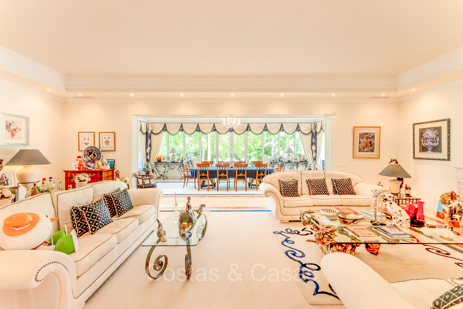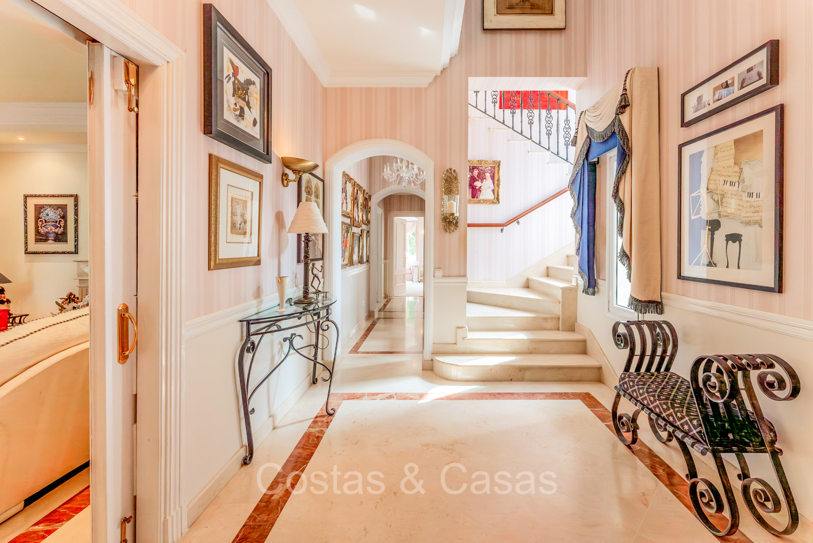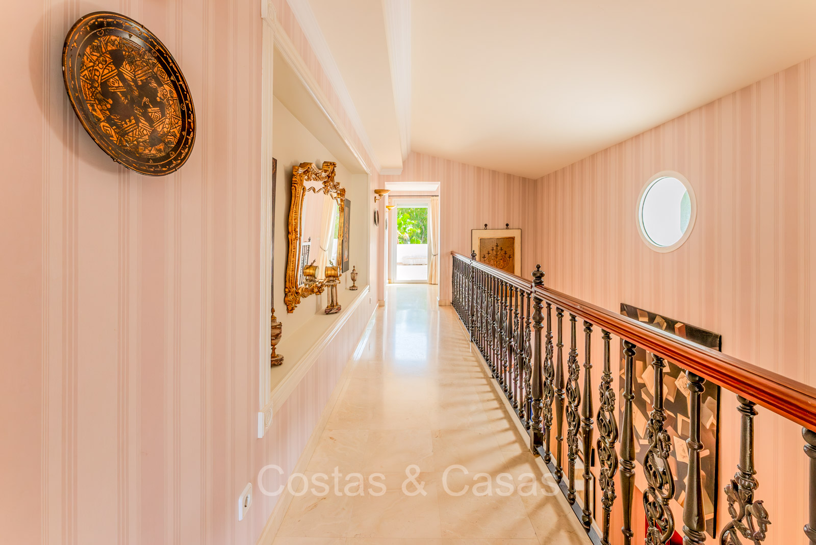 Villa individuelle dans une architecture classique et méditerranéenne. La villa offre la possibilité d'investir dans un projet de modernisation. Utiliser des matériaux de qualité. Le hall d'entrée dispose de hauts plafonds et s'ouvre sur le spacieux espace de vie ouvert avec un grand salon TV et un coin repas intégré. Une cage d'escalier élégante et lumineuse avec un plafond à double hauteur vous mène au dernier étage. La cuisine lumineuse s'ouvre sur une terrasse ensoleillée, avec un espace repas en plein air, où vous pourrez également profiter d'une belle vue sur la vallée du golf. 5 chambres, 7 salles de bains et une toilette séparée. L’étage inférieur dispose d'une salle de jeux et d'un salon TV. Sols intérieurs en marbre. Buanderie. Débarras spacieux. Parking pour 4 voitures.