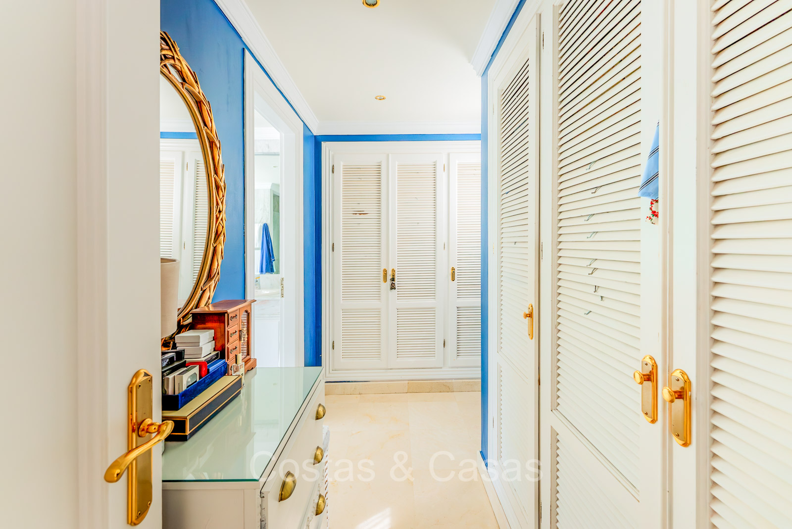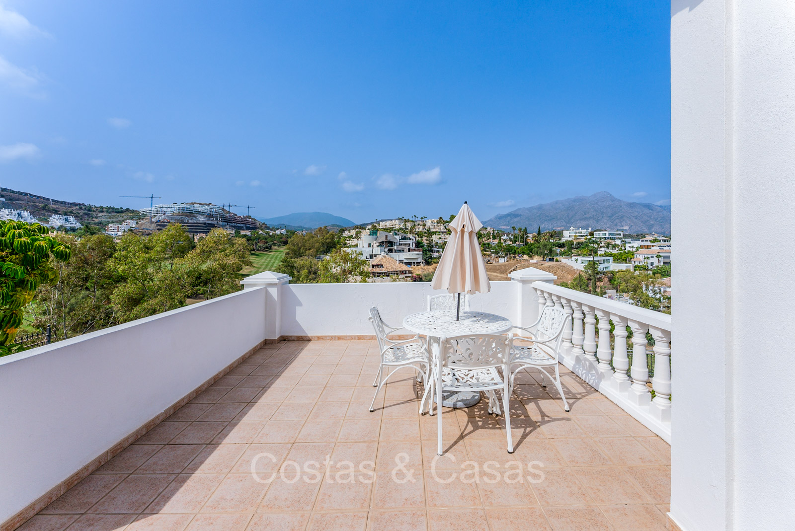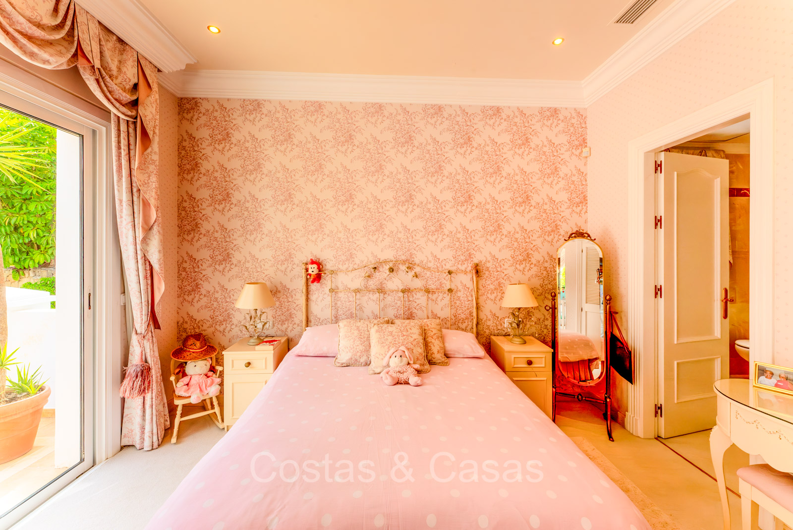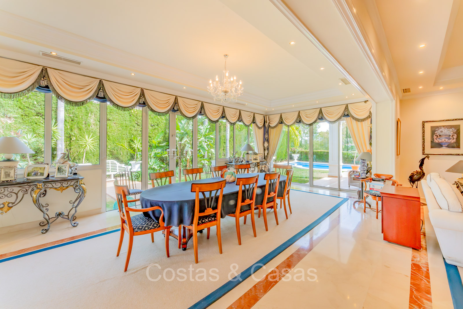 Villa individuelle dans une architecture classique et méditerranéenne. La villa offre la possibilité d'investir dans un projet de modernisation. Utiliser des matériaux de qualité. Le hall d'entrée dispose de hauts plafonds et s'ouvre sur le spacieux espace de vie ouvert avec un grand salon TV et un coin repas intégré. Une cage d'escalier élégante et lumineuse avec un plafond à double hauteur vous mène au dernier étage. La cuisine lumineuse s'ouvre sur une terrasse ensoleillée, avec un espace repas en plein air, où vous pourrez également profiter d'une belle vue sur la vallée du golf. 5 chambres, 7 salles de bains et une toilette séparée. L’étage inférieur dispose d'une salle de jeux et d'un salon TV. Sols intérieurs en marbre. Buanderie. Débarras spacieux. Parking pour 4 voitures.