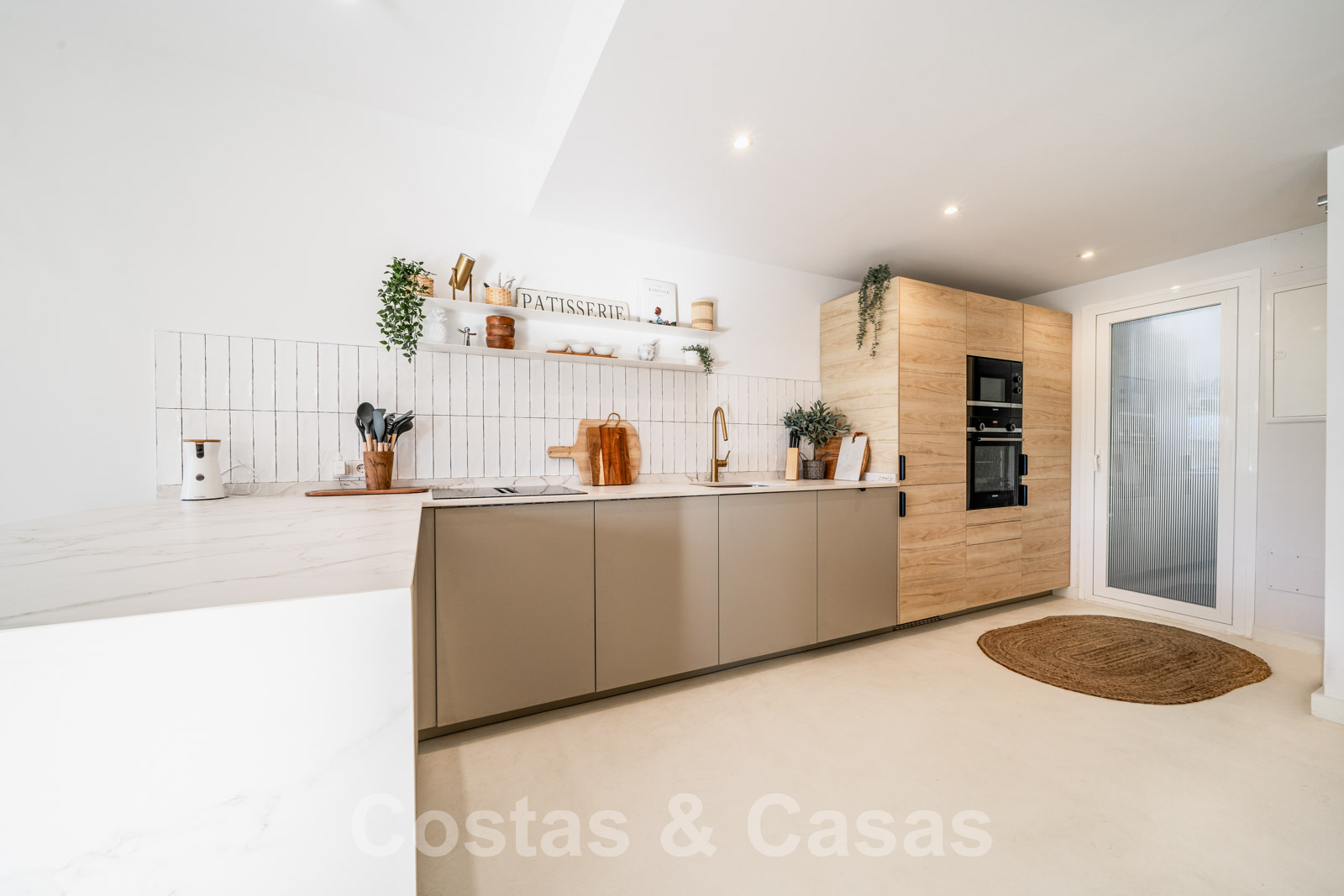 Appartement de jardin entièrement rénové dans un complexe existant. Finitions de qualité. Intérieur aéré et chaleureux inspiré du design bohème. Une terrasse couverte adjacente s'ouvre sur le jardin privé. Orienté à l'ouest. Vue sur le jardin et les montagnes pittoresques. Le hall d'entrée s'ouvre immédiatement sur l'espace de vie ouvert. Salon TV spacieux et salle à manger intégrée. Cuisine entièrement équipée avec des appareils Siemens. De hautes fenêtres coulissantes apportent la lumière du jour. 2 chambres, 2 salles de bains. Suite parentale avec salle de bains attenante. Pièce utilitaire/buanderie.