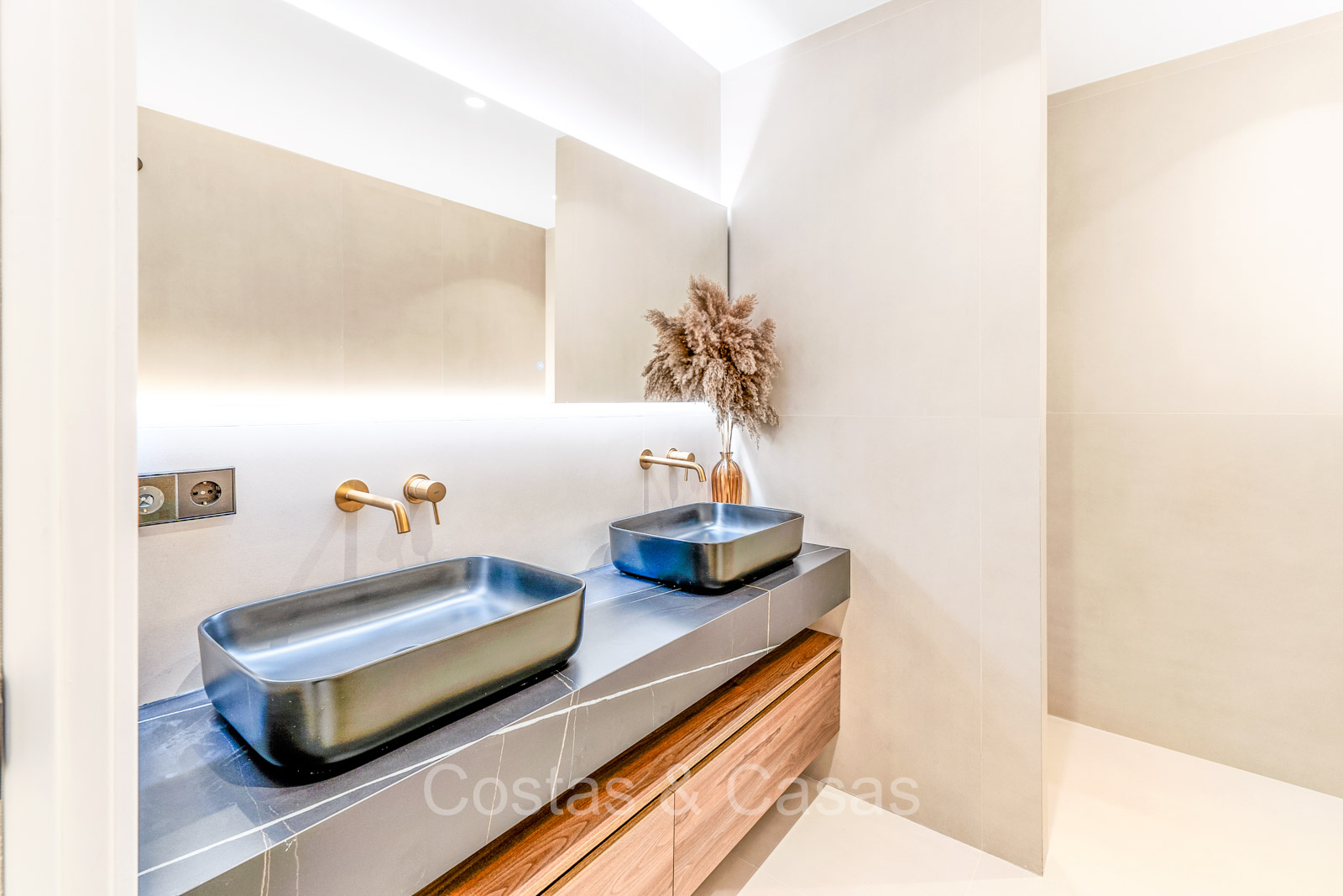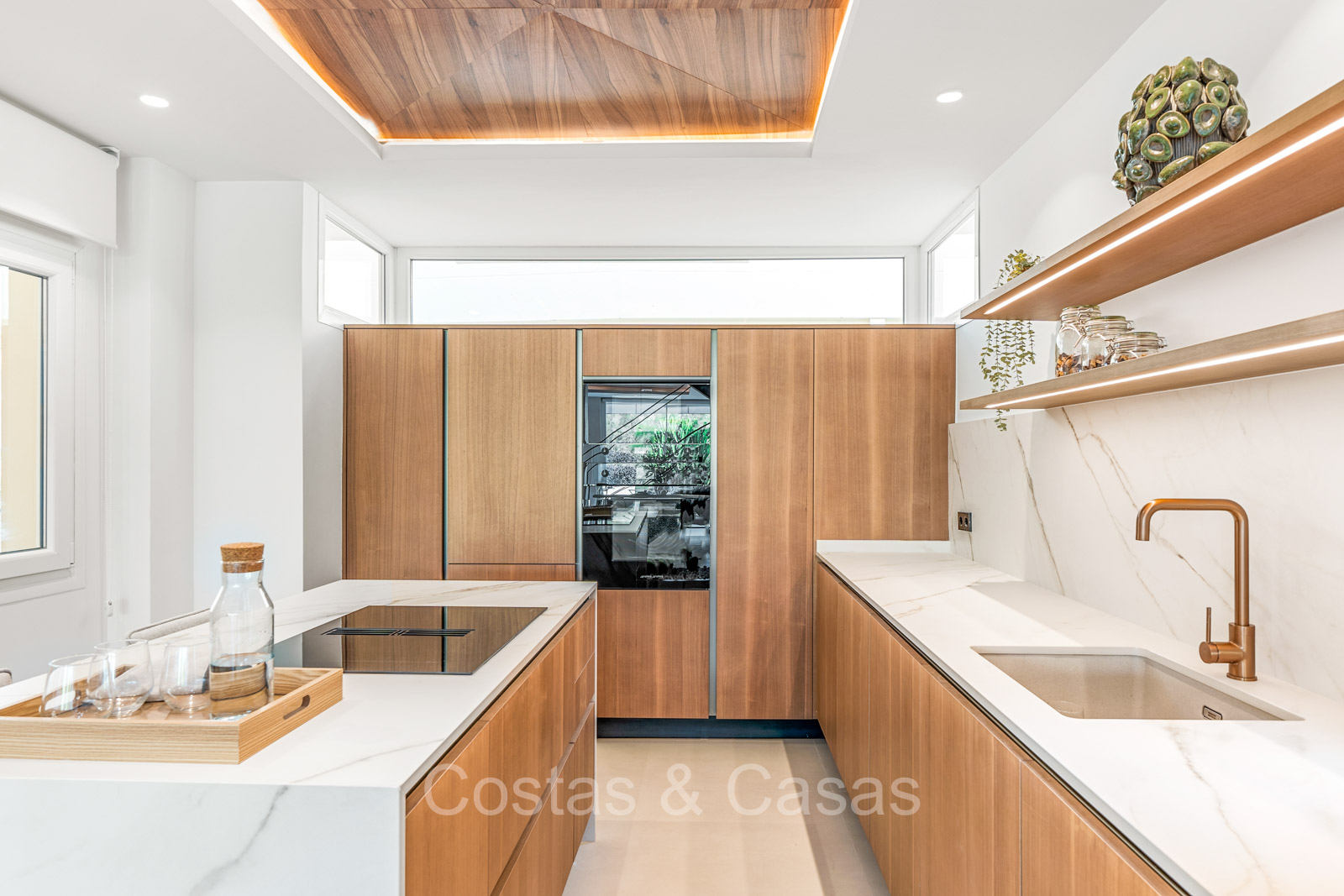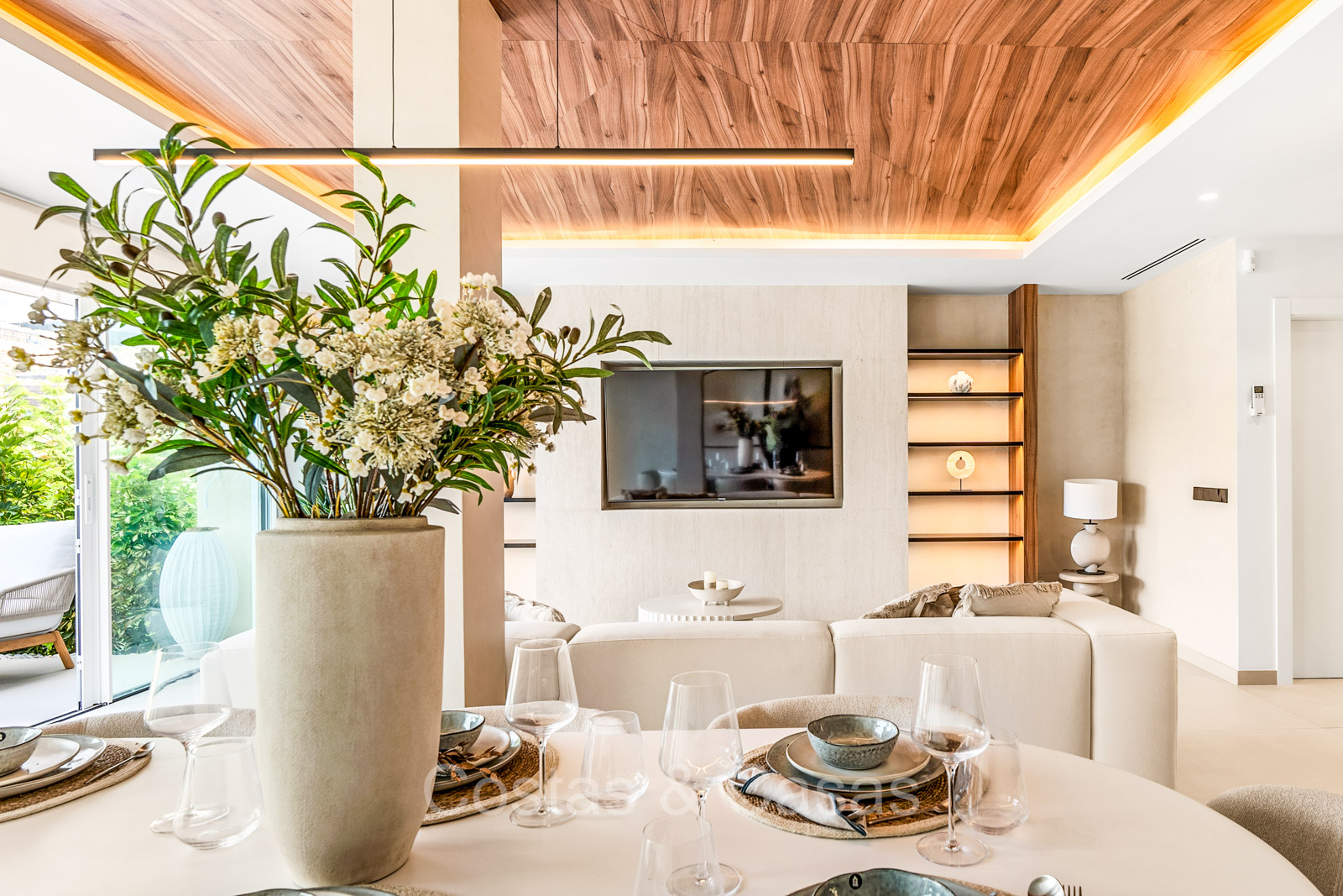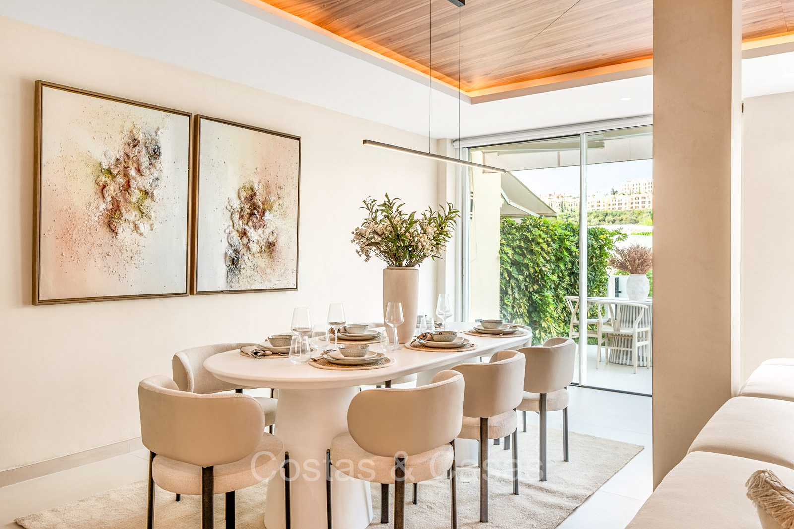 Maison spacieuse avec 2 étages et un vaste solarium. Soigneusement rénovée et meublée avec goût, où les éléments de design scandinave et contemporain se mélangent harmonieusement. Orientée vers l'ouest. Belles vues sur le paysage montagneux, les terrains de golf et la mer Méditerranée. La terrasse ensoleillée s'ouvre sur un jardin privatif. Un solarium de 60m² est équipé d'un salon, d'une cuisine extérieure avec barbecue et coin repas et vous pourrez également profiter de la vue à 180° sur les montagnes, le golf et la mer. Les fenêtres coulissantes du sol au plafond avec cadres encastrés assurent un flux fluide entre les espaces intérieurs et extérieurs et génèrent également beaucoup de lumière naturelle. La cage d'escalier qui relie les étages est dotée d'une verrière qui apporte une lumière supplémentaire. Cuisine pratiquement équipée avec des appareils électroménagers de haute qualité et un îlot de cuisson où vous pourrez prendre le petit-déjeuner. Espace de vie ouvert avec salon et salle à manger. 3 chambres, 2 salles de bains et une toilette séparée. Sols en carrelage en pierre naturelle grand format. Buanderie équipée de machines à laver et à sécher.