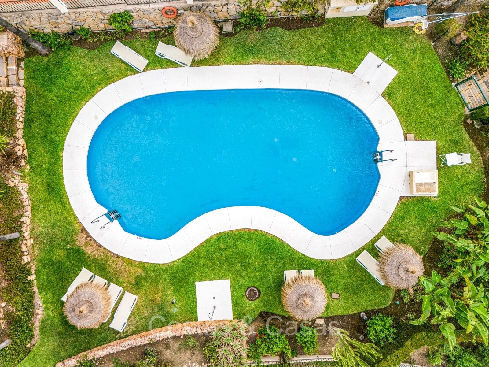 Autres caractéristiques : Climatisation. Armoires intégrées. Auvents sur la terrasse. Éclairage LED. Douche extérieure.