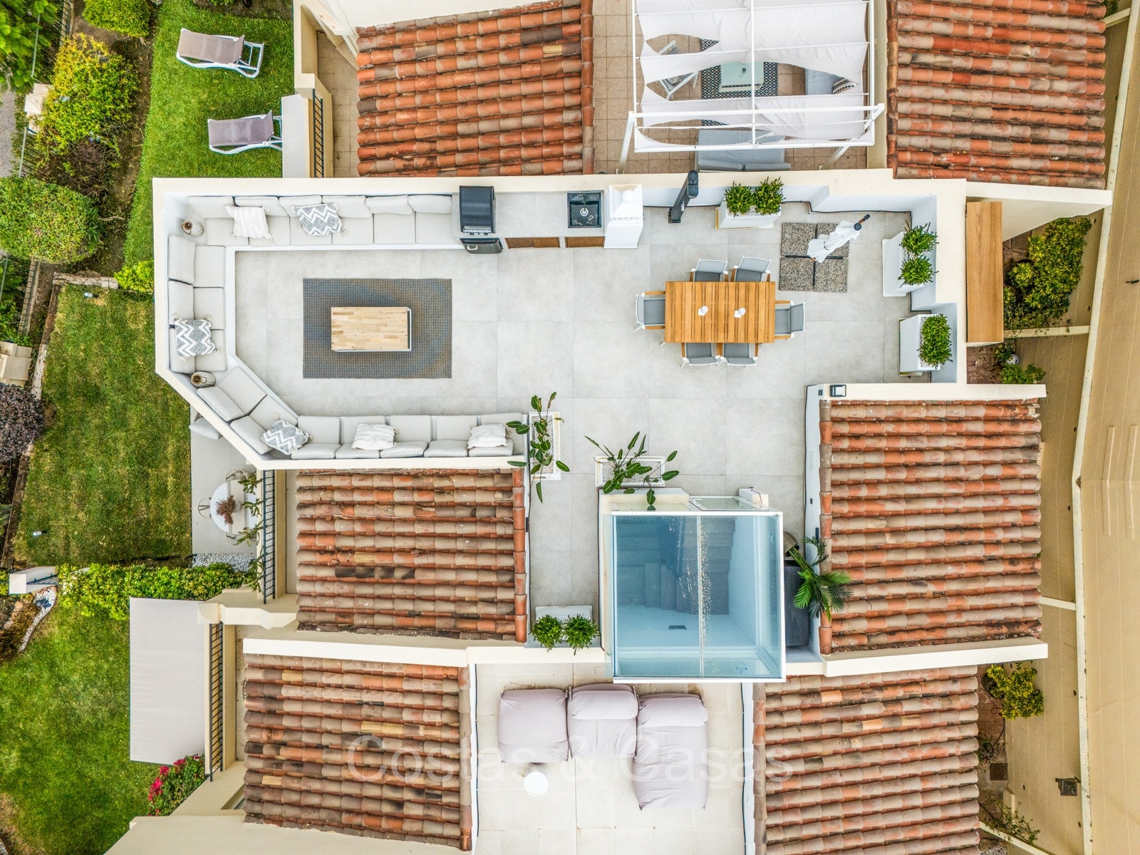 Solarium spacieux avec cuisine extérieure.