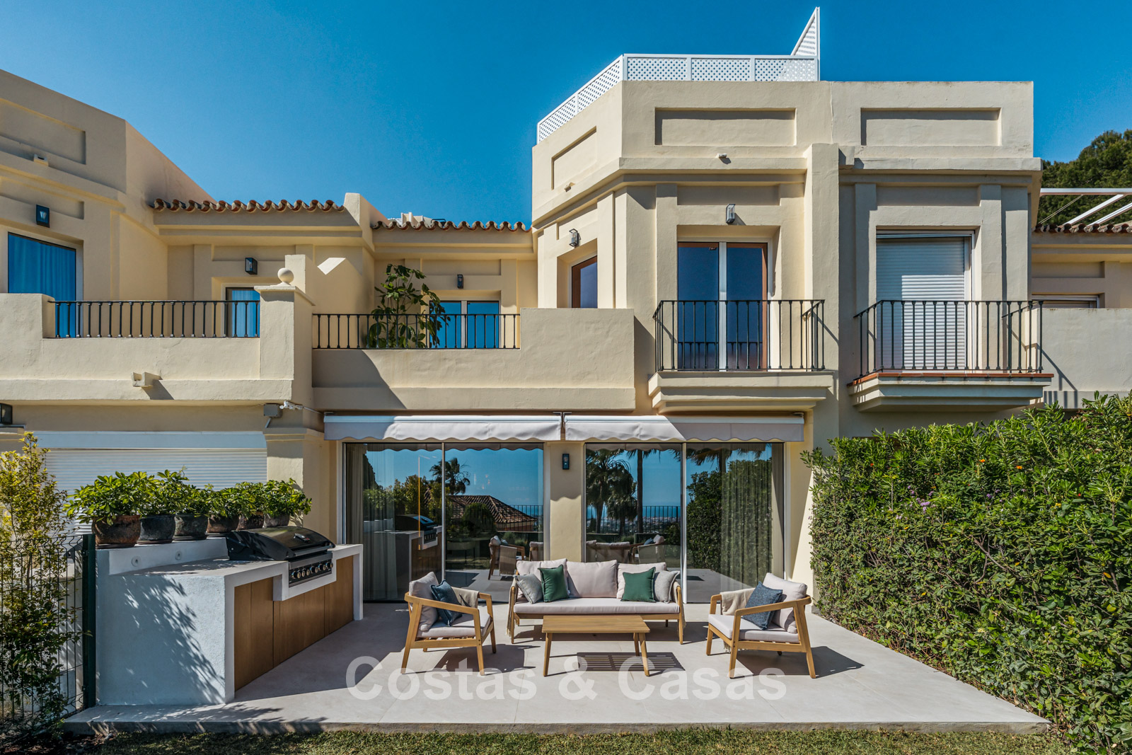 Élégante maison de ville rénovée avec vue panoramique sur la mer à vendre à La Quinta, Benahavis - Marbella