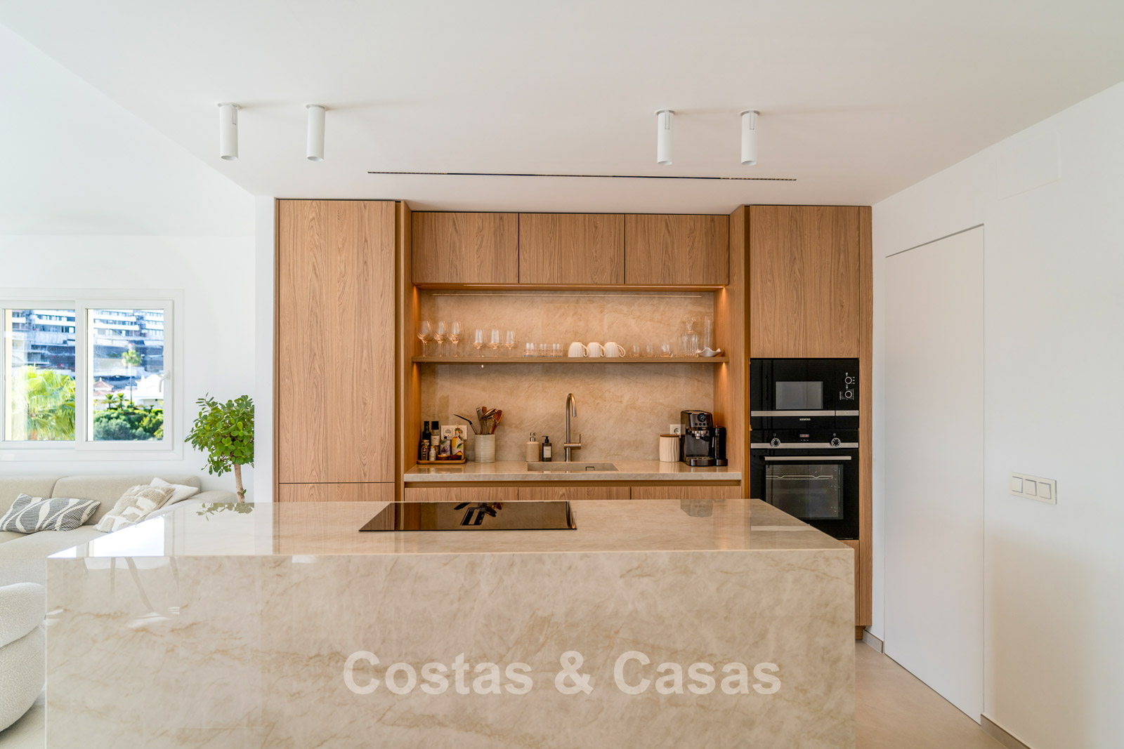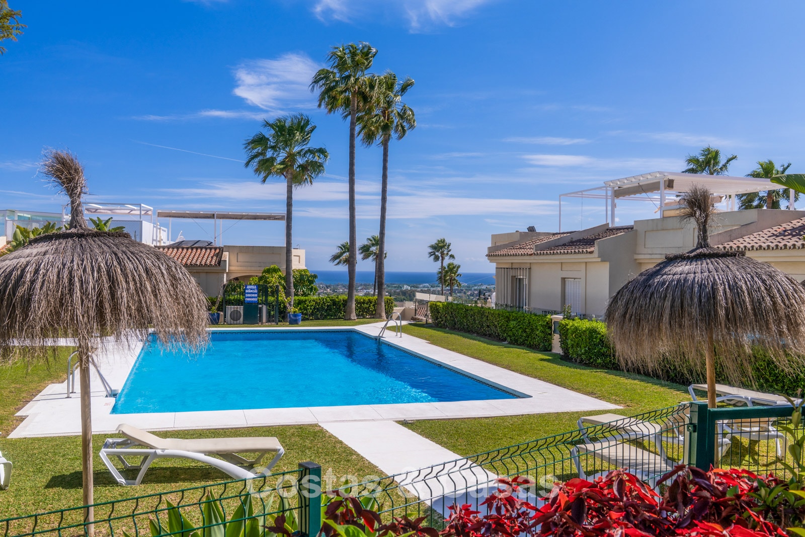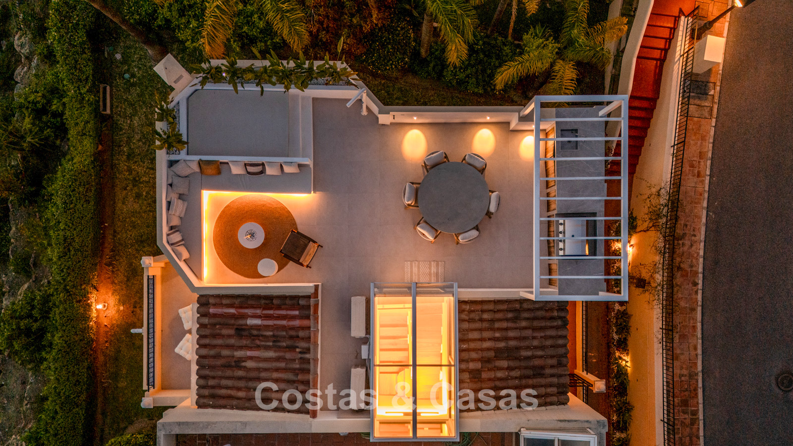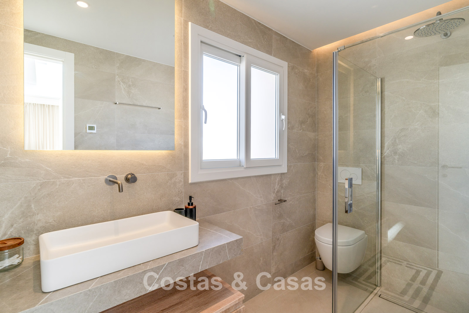 Autres caractéristiques: Climatisation chaud/froid Cheminée électrique Placards intégrés Double vitrage Sols en marbre Éclairage LED Douche extérieure Stores pare-soleil Entièrement meublé