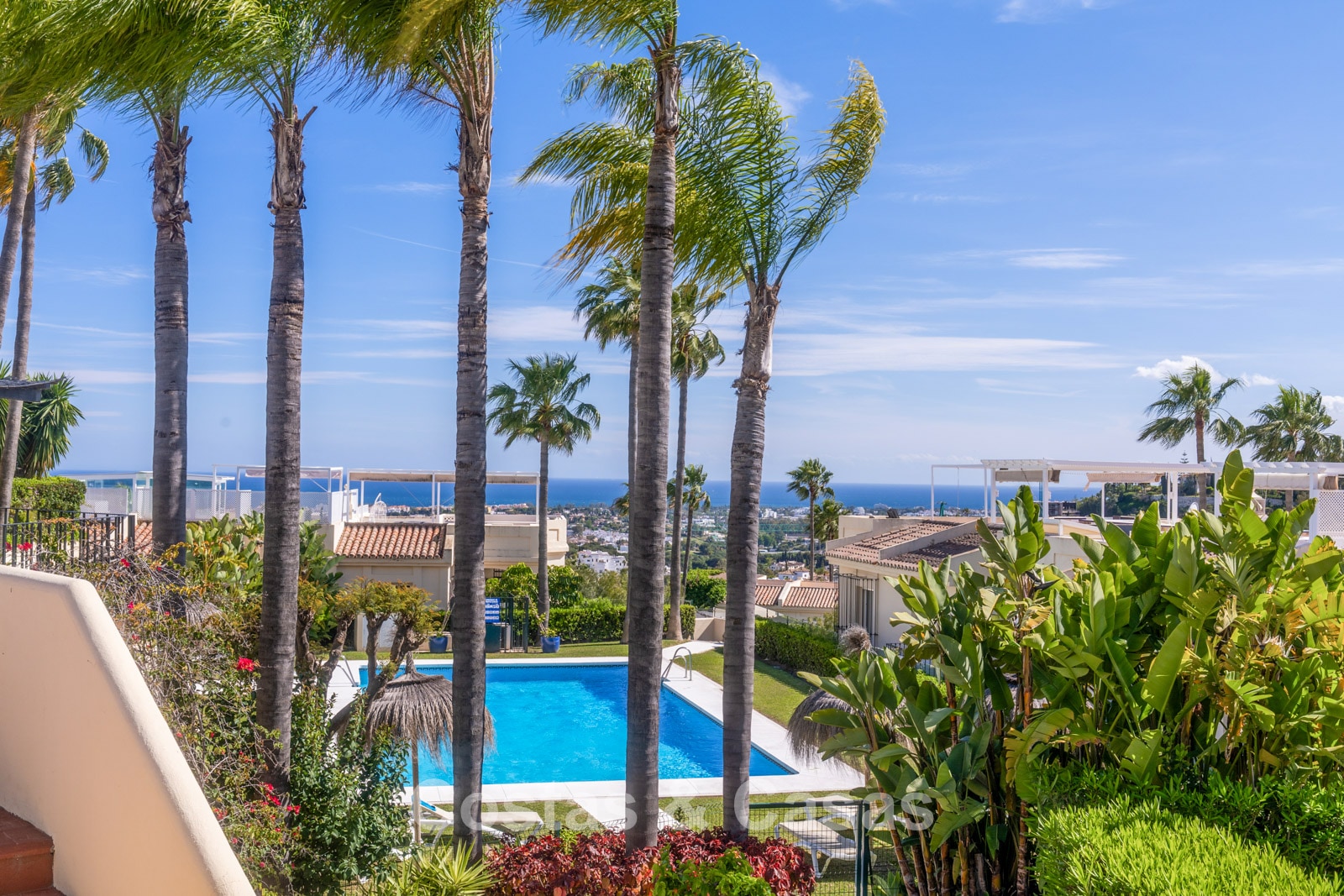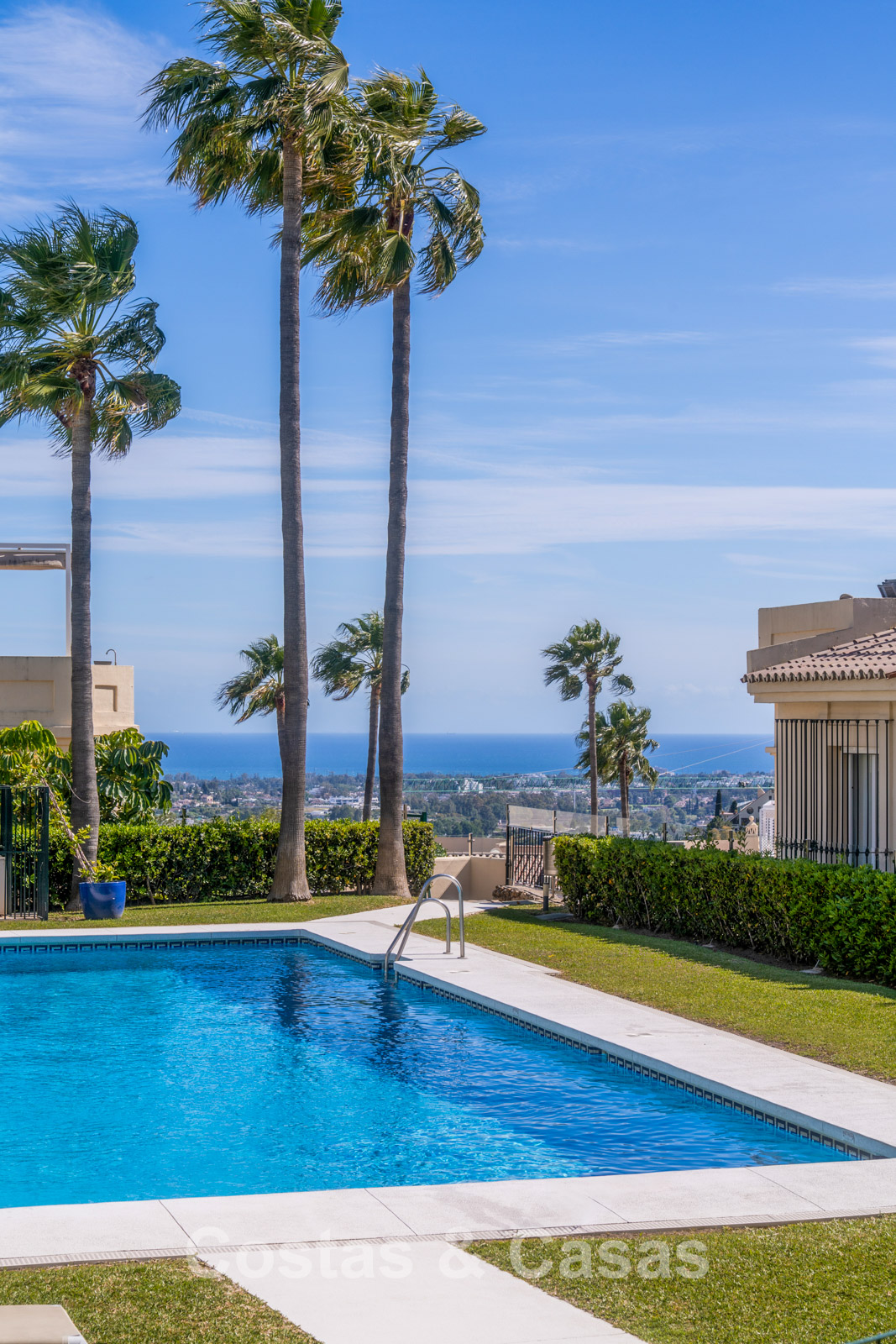 Idéalement situé dans un complexe résidentiel exclusif et sécurisé au sein de la commune de Benahavís. Restaurants, bars, commerces et pharmacie se trouvent à seulement quelques minutes en voiture. À proximité immédiate de parcours de golf renommés, dont La Quinta Golf et la célèbre vallée du golf de Nueva Andalucía. Les centres de San Pedro et de Puerto Banús sont également facilement accessibles. Le complexe dispose de jardins communs soigneusement entretenus et d’une piscine réservée aux résidents.