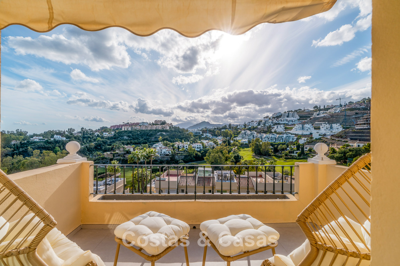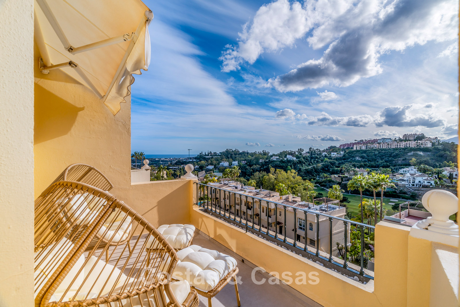 Superbes vues sur le golf, les montagnes et la mer