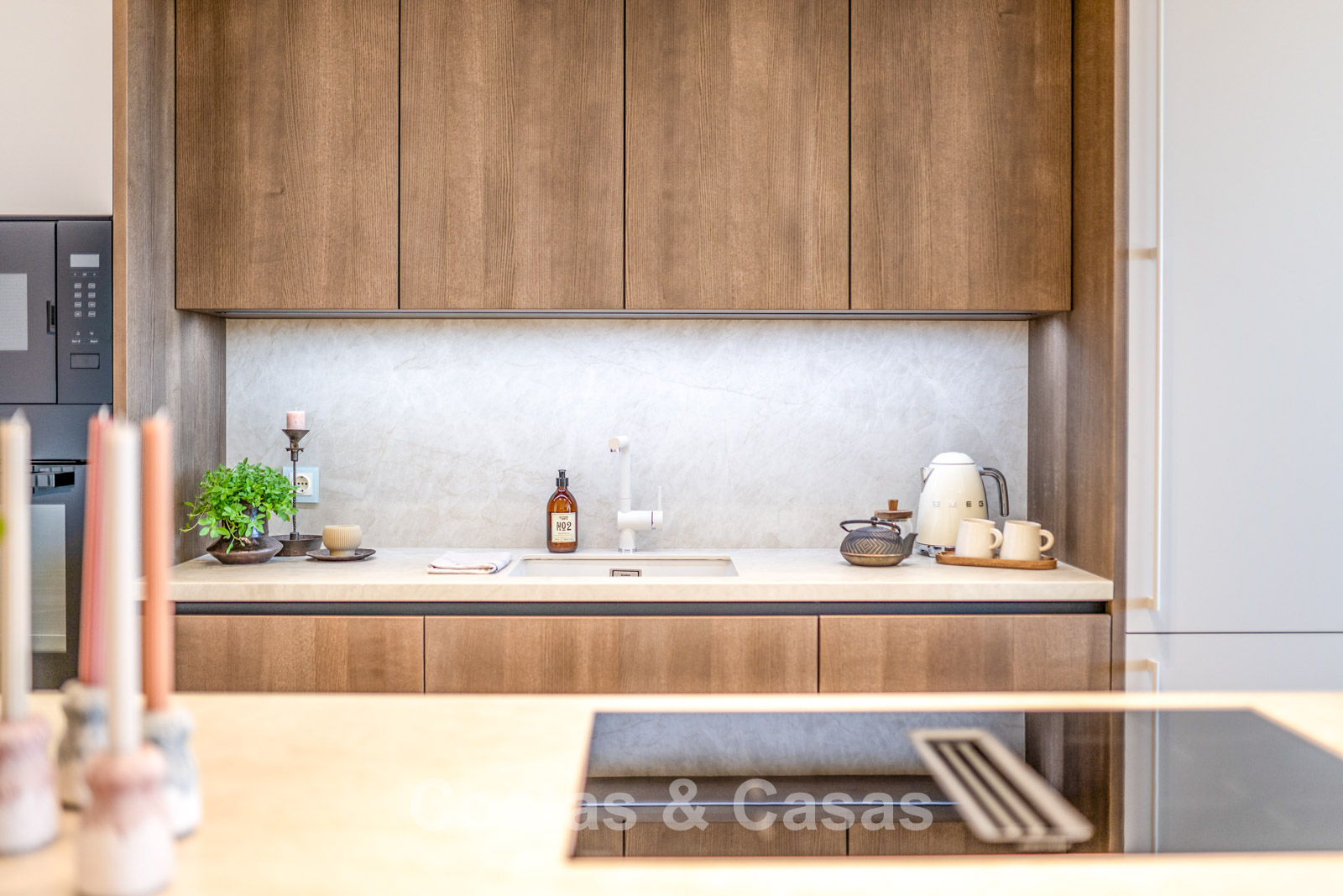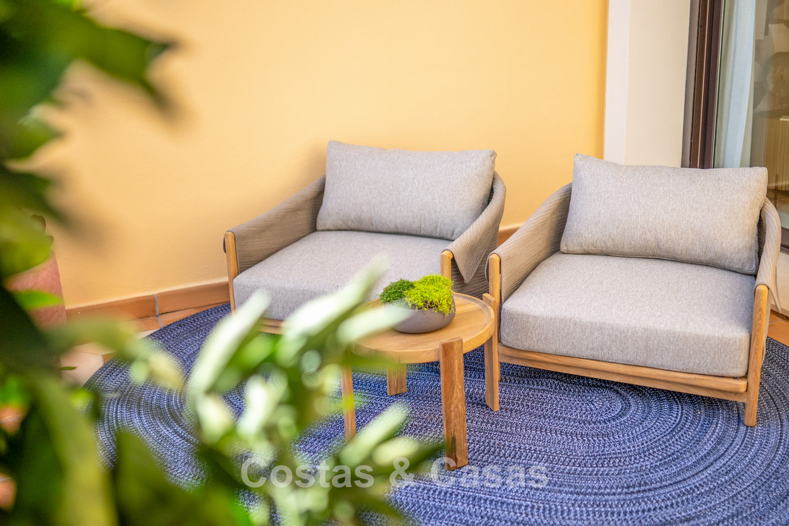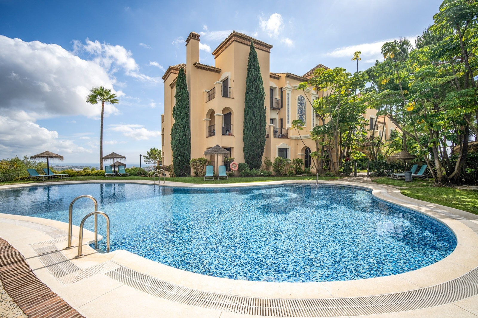Penthouse dans un magnifique complexe construit dans l'architecture andalouse. Utilisation de matériaux de haute qualité et finition raffinée. Orienté sud-est. Vue panoramique sur la vallée verdoyante du golf, vers la mer Méditerranée. Une terrasse ensoleillée offre un coin repas extérieur et un espace détente. Décoration élégante et contemporaine. Hall d'entrée avec vestiaire. L'espace de vie lumineux se compose d'un salon TV confortable et d'une cuisine de haute qualité avec des appareils Miele et un îlot de cuisson central. 3 chambres, 2 salles de bains. La chambre principale bénéficie de son propre accès à la terrasse. Sols en marbre. Garage intérieur pour 2 voitures.