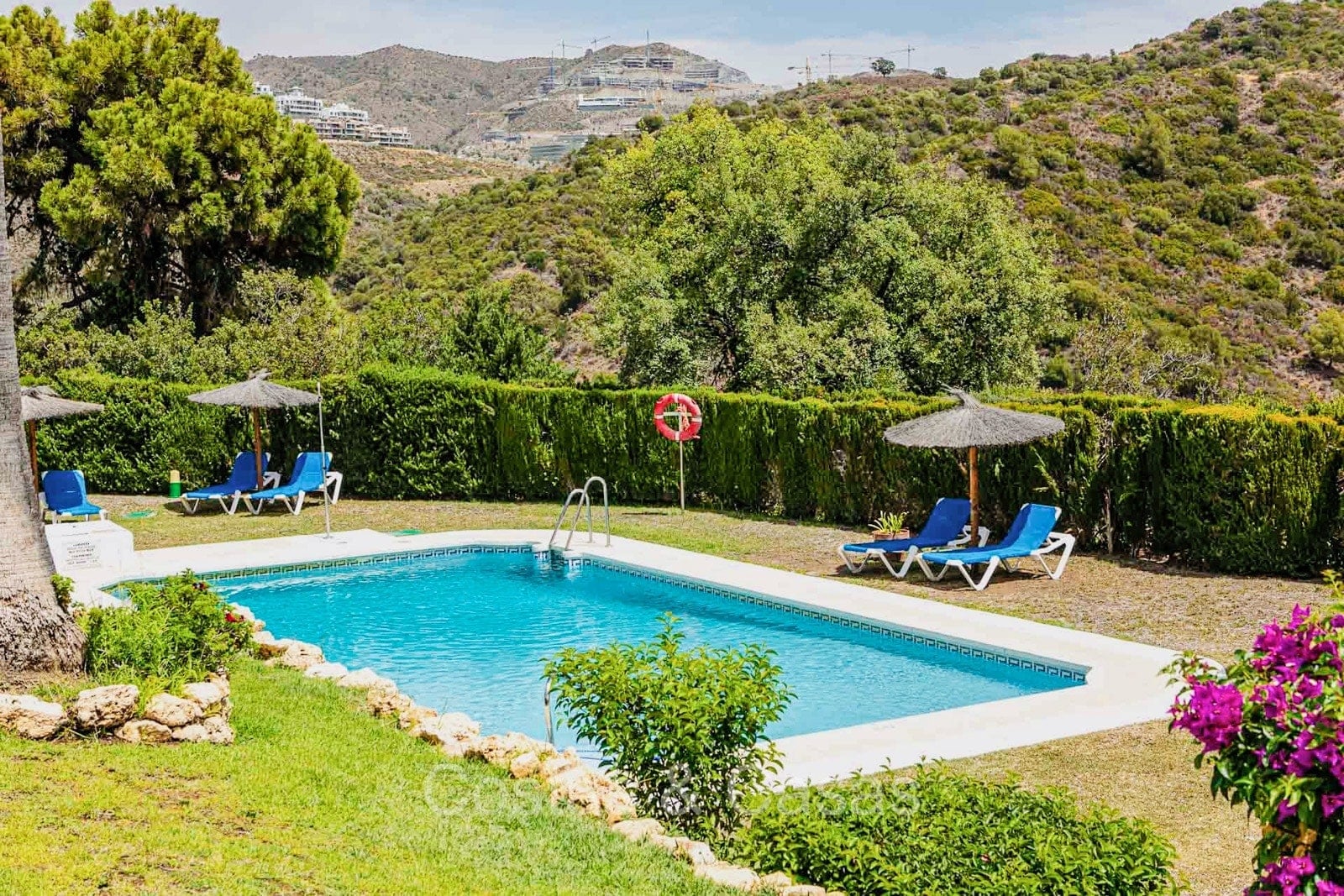 Situé au calme en première ligne du golf, en position surélevée. À 10 minutes en voiture de Puerto Banus et de San Pedro et à 15 minutes du centre de Marbella. A 2 minutes en voiture du cœur de la vallée du golf à Nueva Andalucia. Le complexe est fermé et situé à côté de l'hôtel de golf La Quinta avec toutes ses commodités, y compris une piscine commune.
