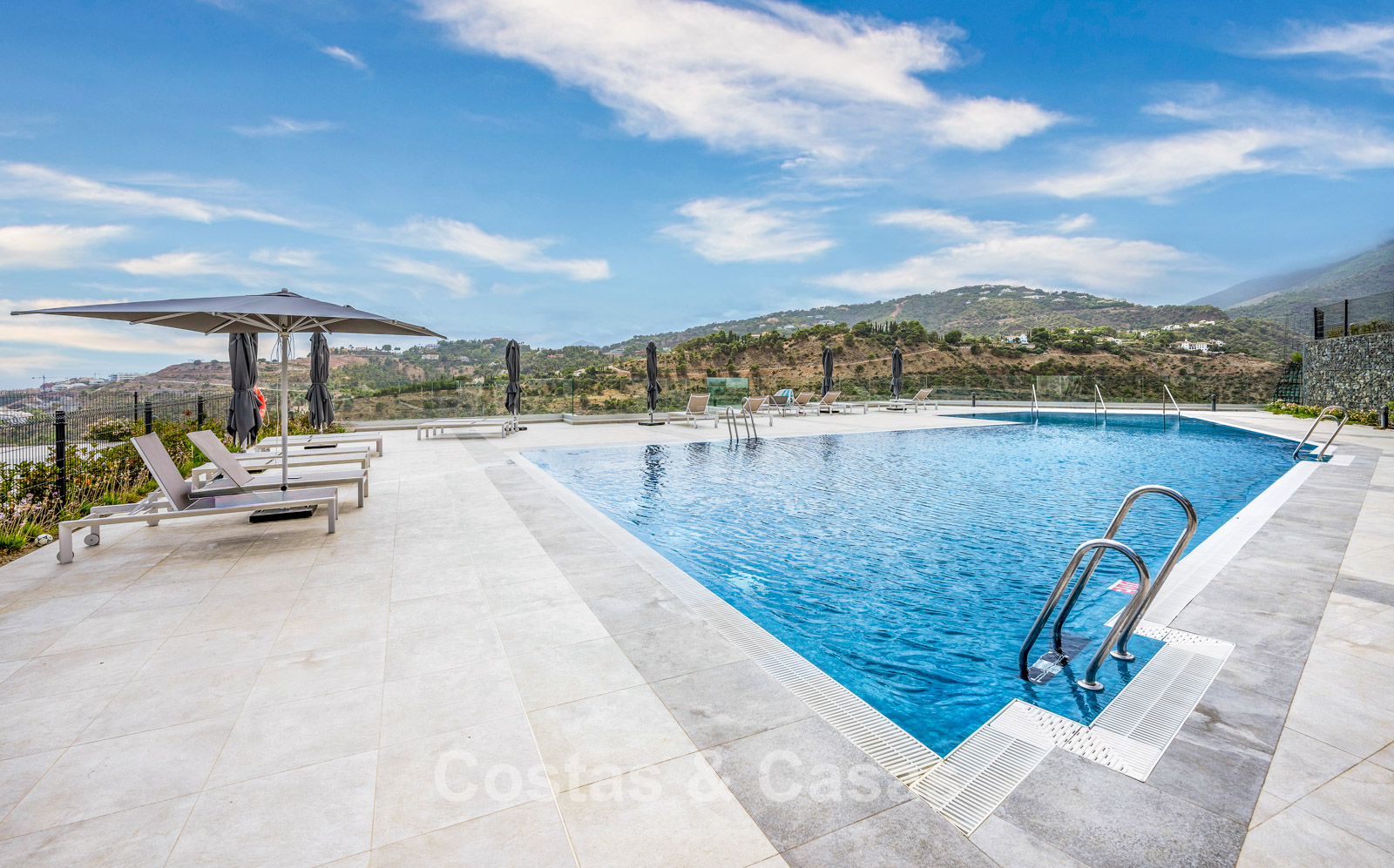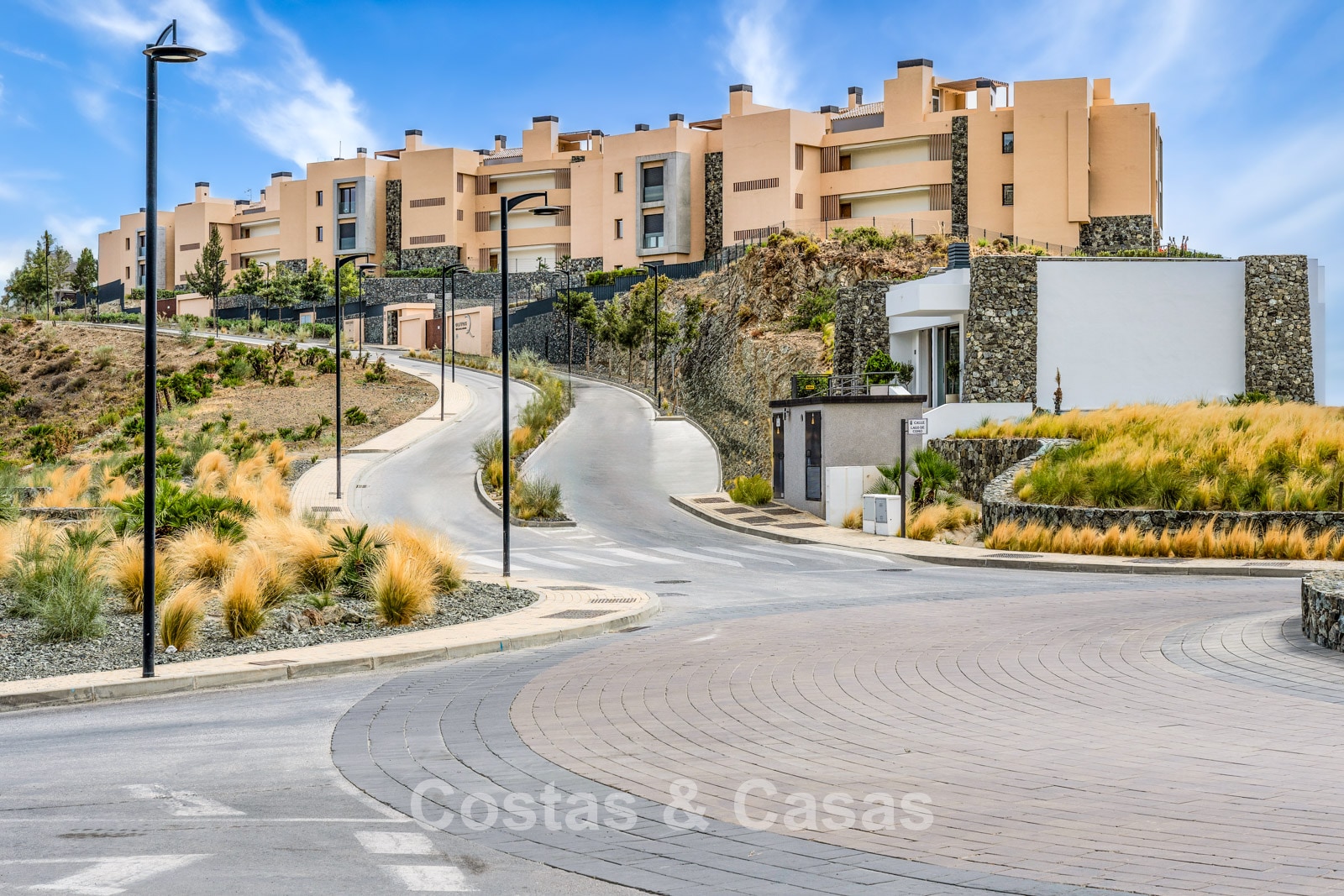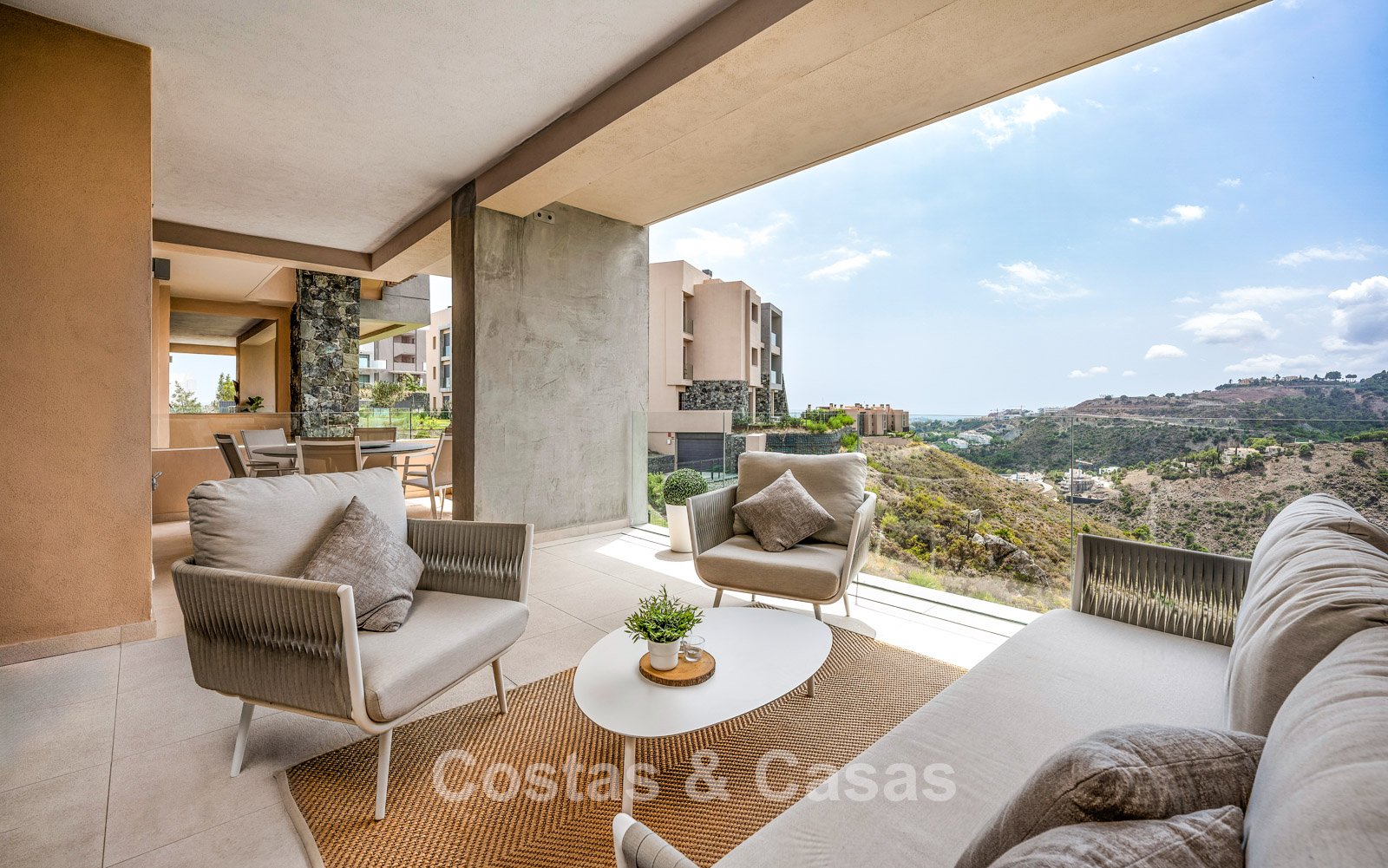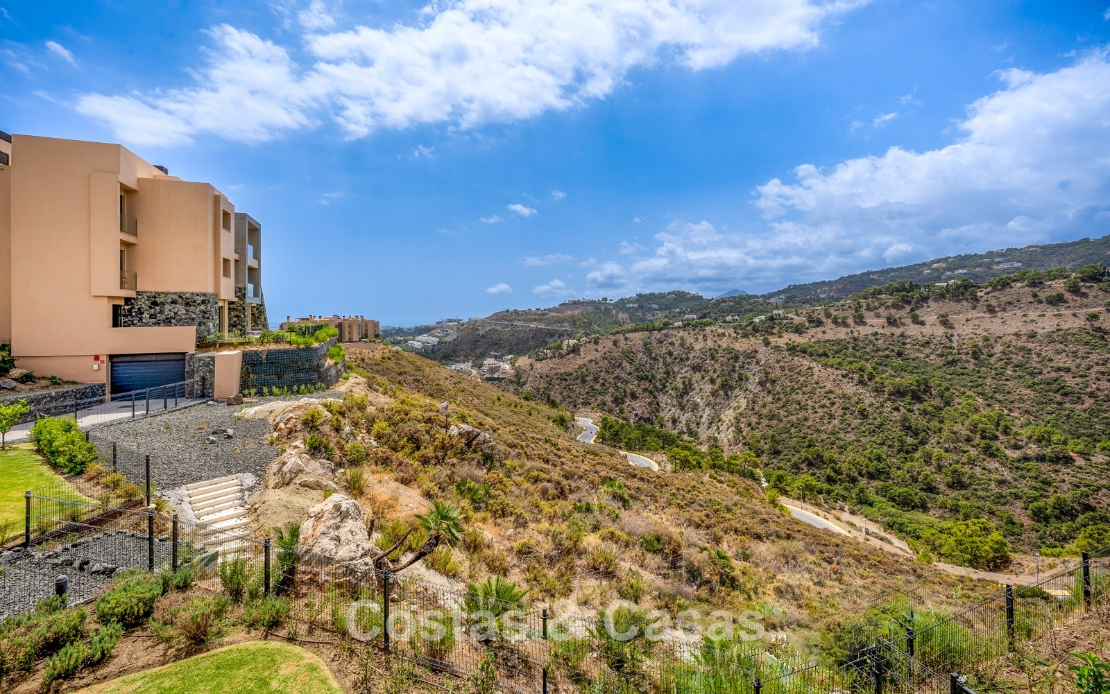 Situé dans un complexe d'appartements moderne au design moderniste. Conçu avec un mélange de techniques de construction les plus avancées et de matériaux locaux. Orienté à l'ouest. Vue pittoresque sur la vallée verdoyante. Situé dans une enclave naturelle, l'appartement bénéficie de vues spectaculaires sur la mer au sud, sur la montagne de La Concha à l'est et sur la Sierra de Las Nieves au nord. Intérieur élégant et lumineux avec des combinaisons de couleurs douces. Salle de séjour ouverte avec un coin salon et un coin repas intégré. Cuisine-salle à manger ouverte équipée d'appareils électroménagers haut de gamme. L'utilisation innovante de l'espace, les fenêtres coulissantes du sol au plafond et les espaces ouverts tirent le meilleur parti de la lumière et favorisent une fluidité harmonieuse entre l'intérieur et l'extérieur. Terrasse en partie couverte. Sols carrelés gris clair. 2 chambres, 2 salles de bains. La suite parentale possède sa propre salle de bain et offre également un accès à la terrasse. Débarras et garage intérieur pour 1 voiture.