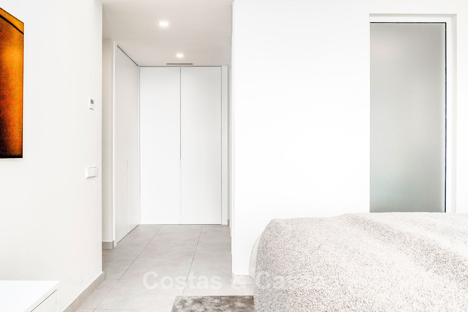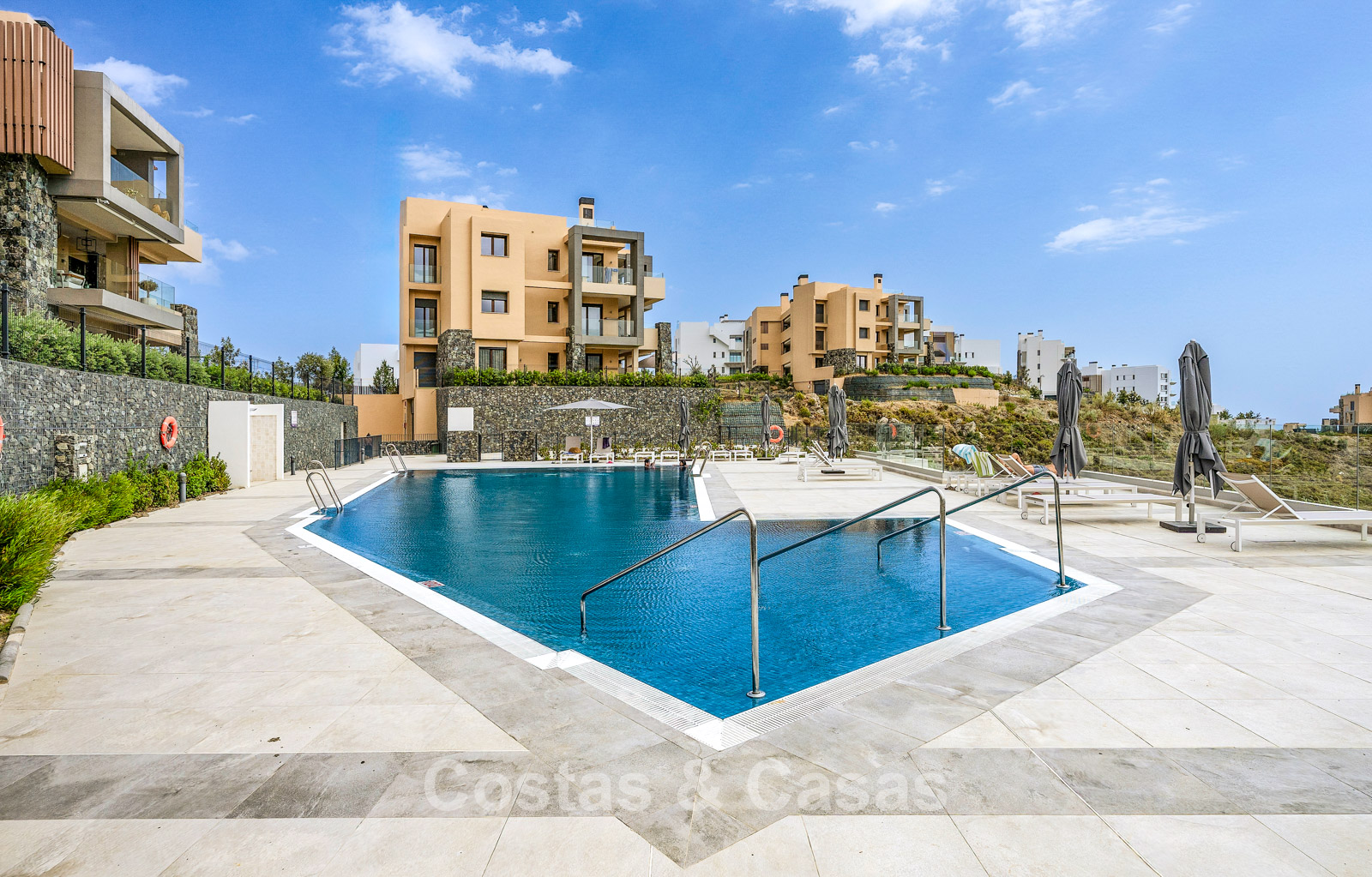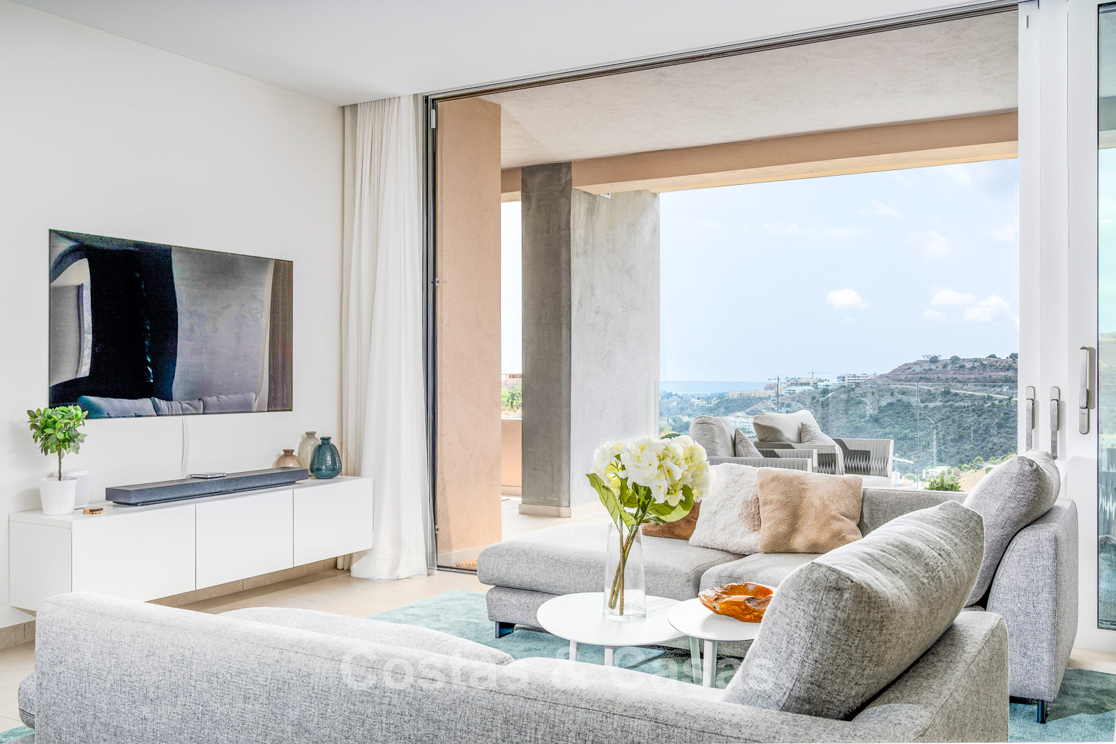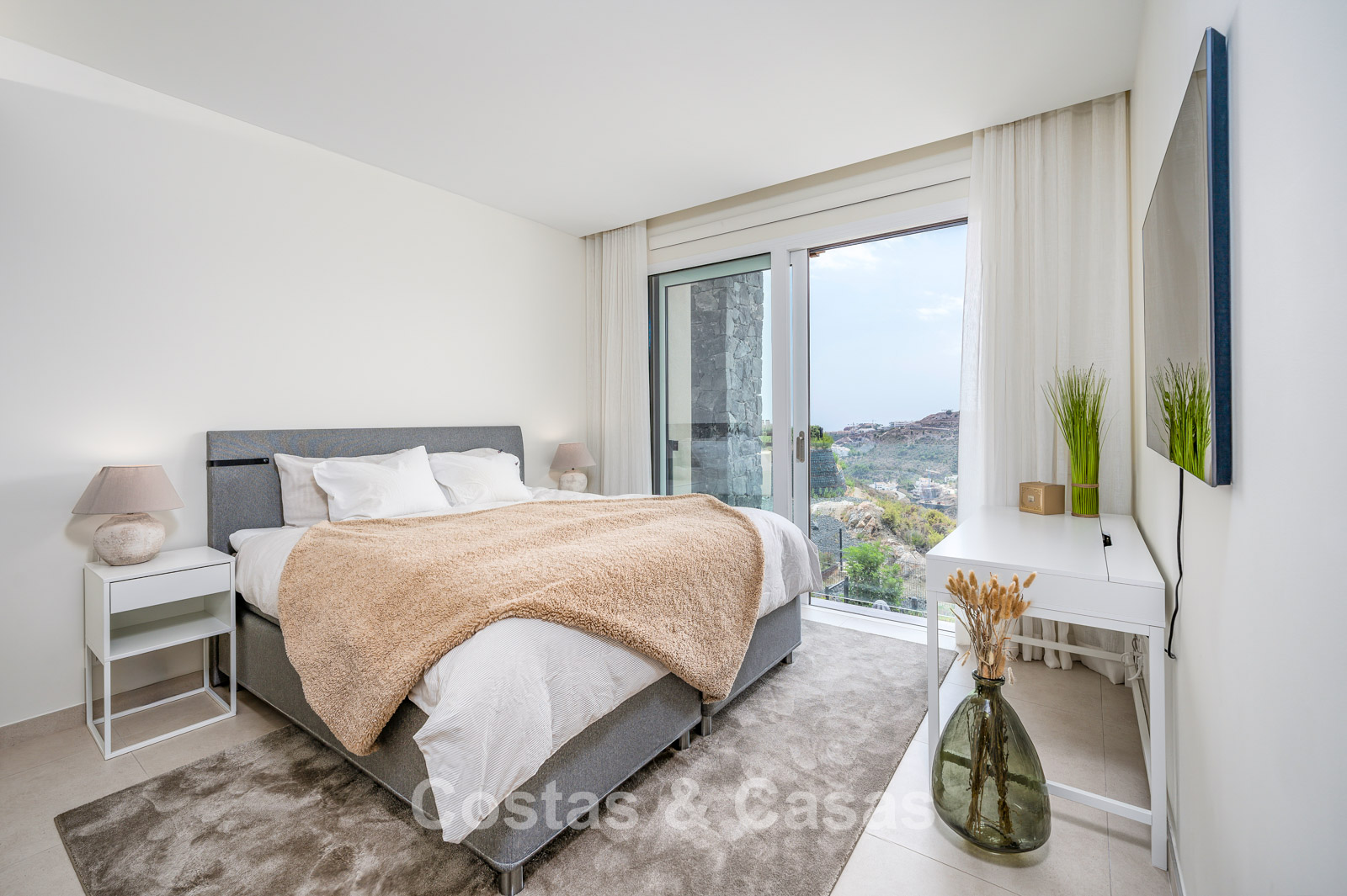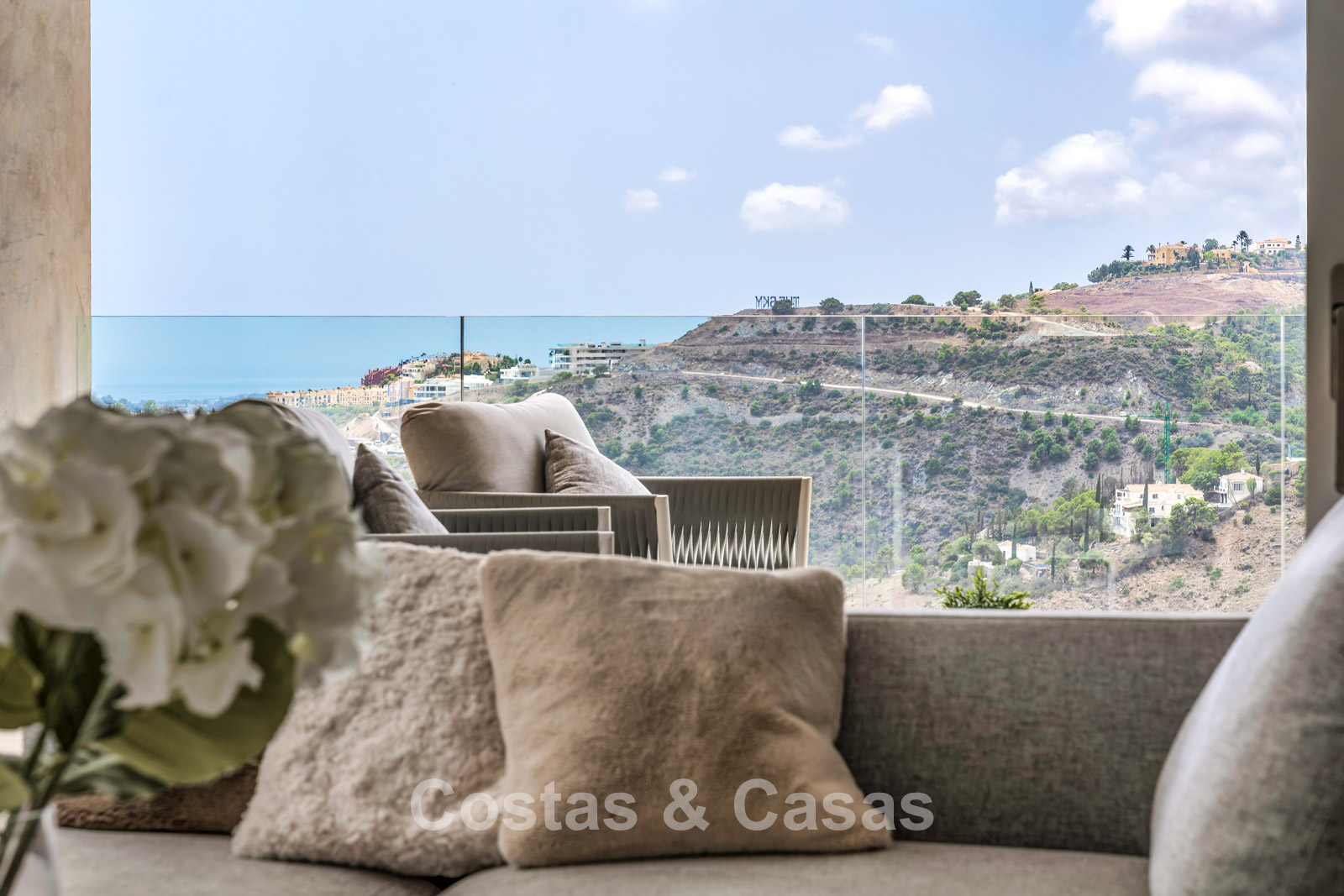 Situé dans un complexe d'appartements moderne au design moderniste. Conçu avec un mélange de techniques de construction les plus avancées et de matériaux locaux. Orienté à l'ouest. Vue pittoresque sur la vallée verdoyante. Situé dans une enclave naturelle, l'appartement bénéficie de vues spectaculaires sur la mer au sud, sur la montagne de La Concha à l'est et sur la Sierra de Las Nieves au nord. Intérieur élégant et lumineux avec des combinaisons de couleurs douces. Salle de séjour ouverte avec un coin salon et un coin repas intégré. Cuisine-salle à manger ouverte équipée d'appareils électroménagers haut de gamme. L'utilisation innovante de l'espace, les fenêtres coulissantes du sol au plafond et les espaces ouverts tirent le meilleur parti de la lumière et favorisent une fluidité harmonieuse entre l'intérieur et l'extérieur. Terrasse en partie couverte. Sols carrelés gris clair. 2 chambres, 2 salles de bains. La suite parentale possède sa propre salle de bain et offre également un accès à la terrasse. Débarras et garage intérieur pour 1 voiture.