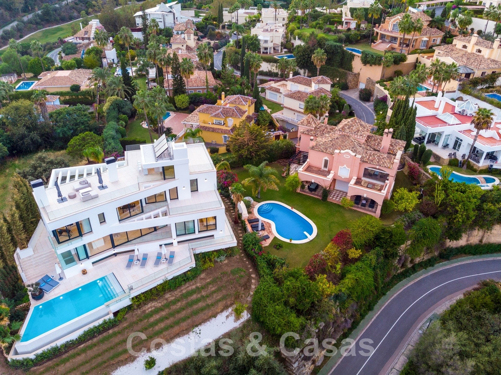 5 chambres, 6 salles de bain.