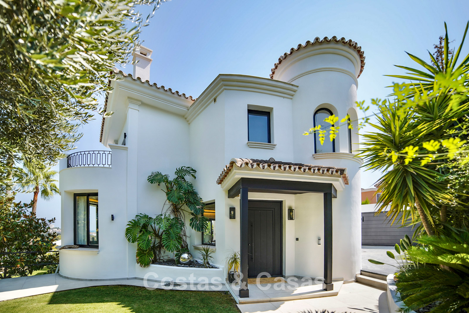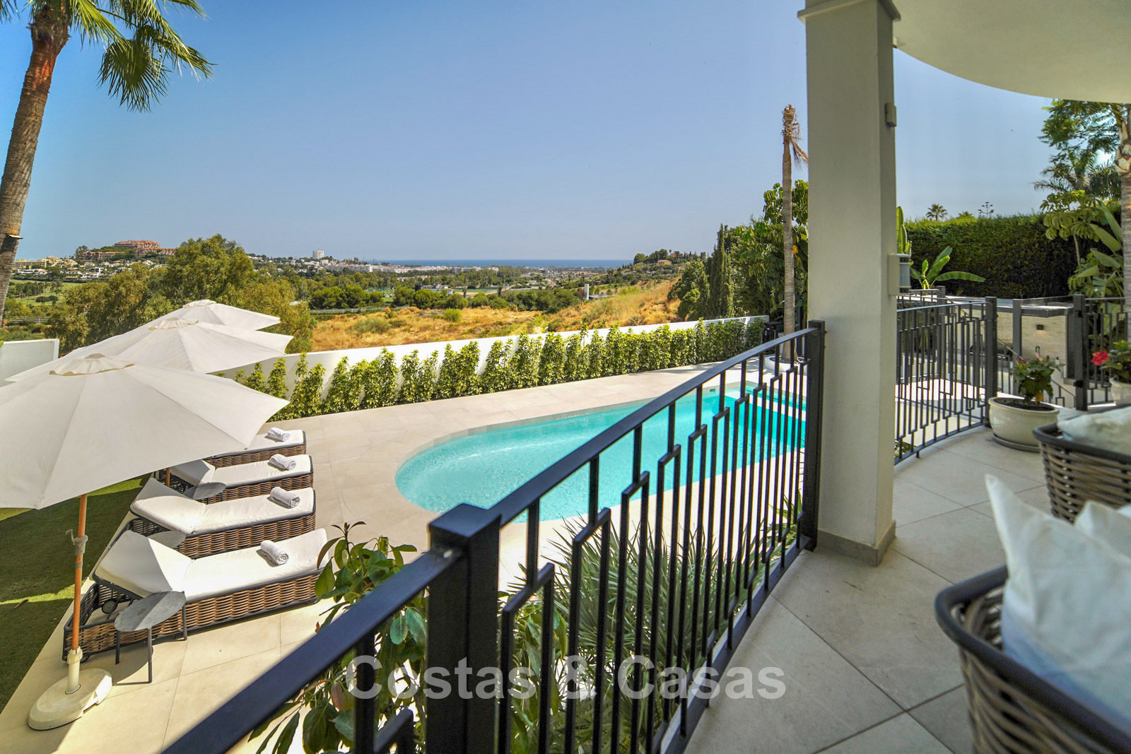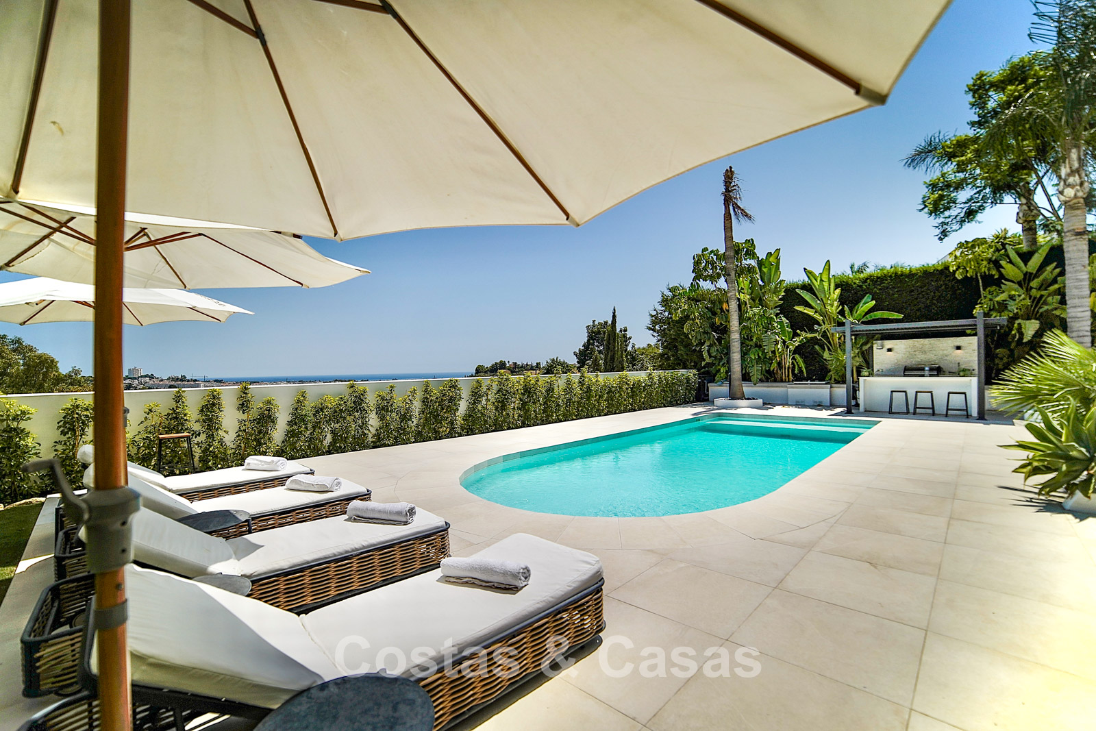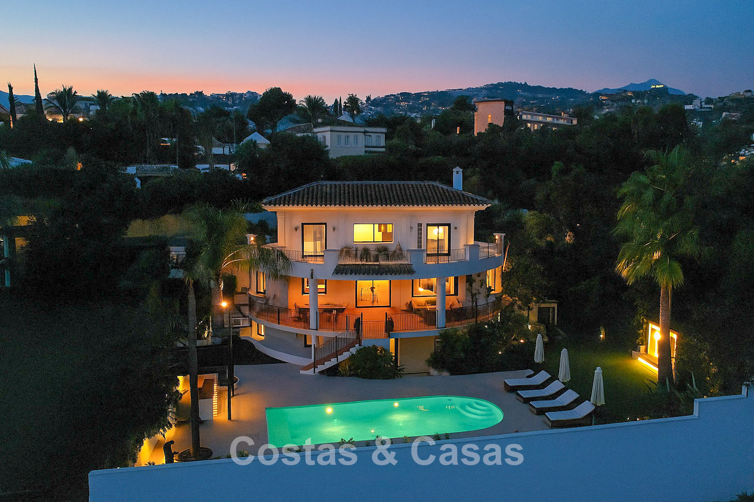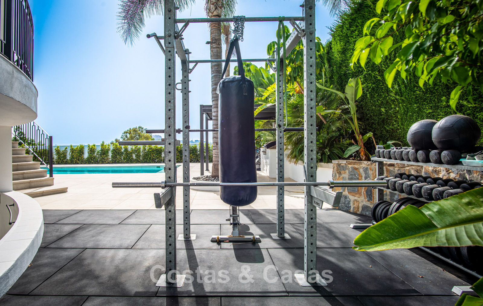 Cette villa dégage un luxe contemporain avec une subtile touche andalouse, de vastes terrasses et une atmosphère ouverte et lumineuse. L’architecture associe minimalisme et chaleur : façades blanches, toits en terre cuite et espaces extérieurs accueillants créent une ambiance d’élégance intemporelle. Rénovation haut de gamme axée sur le design et le confort. Salon avec espace TV et salle à manger intégrée. L’espace de vie ouvert communique directement avec l’extérieur, offrant une sensation exceptionnelle d’espace et de luminosité. Cuisine ouverte sur mesure avec électroménagers Neff, îlot central, bar petit-déjeuner et coin repas. 5 chambres sur mesure, 5 salles de bains. Espace fitness extérieur. Garage intérieur pour 2 voitures et espace de rangement supplémentaire.