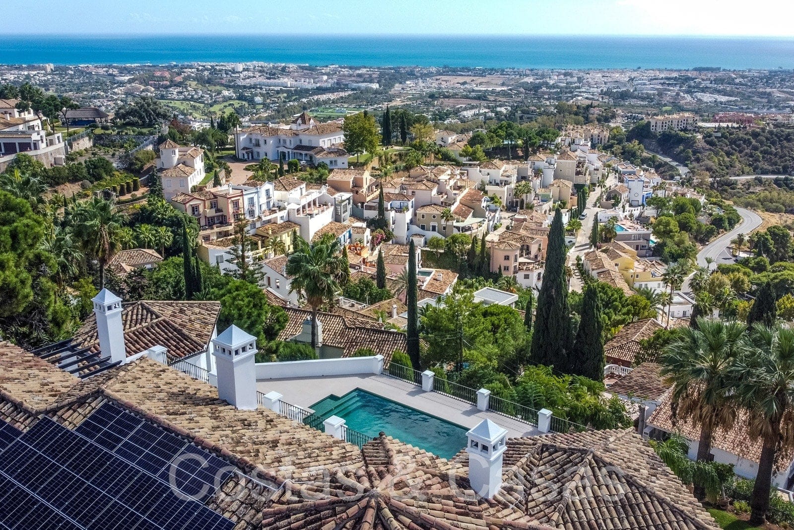 Située dans un quartier résidentiel sur les collines de la commune de Benahavis, dans le domaine sécurisé exclusif d'El Madroñal. El Madroñal est une oasis de paix et d'intimité, entourée d'une nature préservée, à moins de 10 minutes en voiture de San Pedro, de Puerto Banus et de la plage. Les commodités essentielles, divers restaurants, bar, boulangerie et boucherie sont même accessibles en moins de 3 minutes en voiture. Le pittoresque village de montagne de Benahavis, situé à seulement 10 minutes en voiture, est largement connu comme l'attraction culinaire par excellence de la Costa del Sol, notamment parce qu'il abrite la plus forte concentration de restaurants de premier ordre de toute la région. Il existe également un certain nombre de bars à tapas et de bodegas excellents et confortables. Avec la Golf Valley de Nueva Andalusia ainsi que les golfs de Los Arqueros et El Higueral à deux pas, les golfeurs pourront eux aussi se faire plaisir.