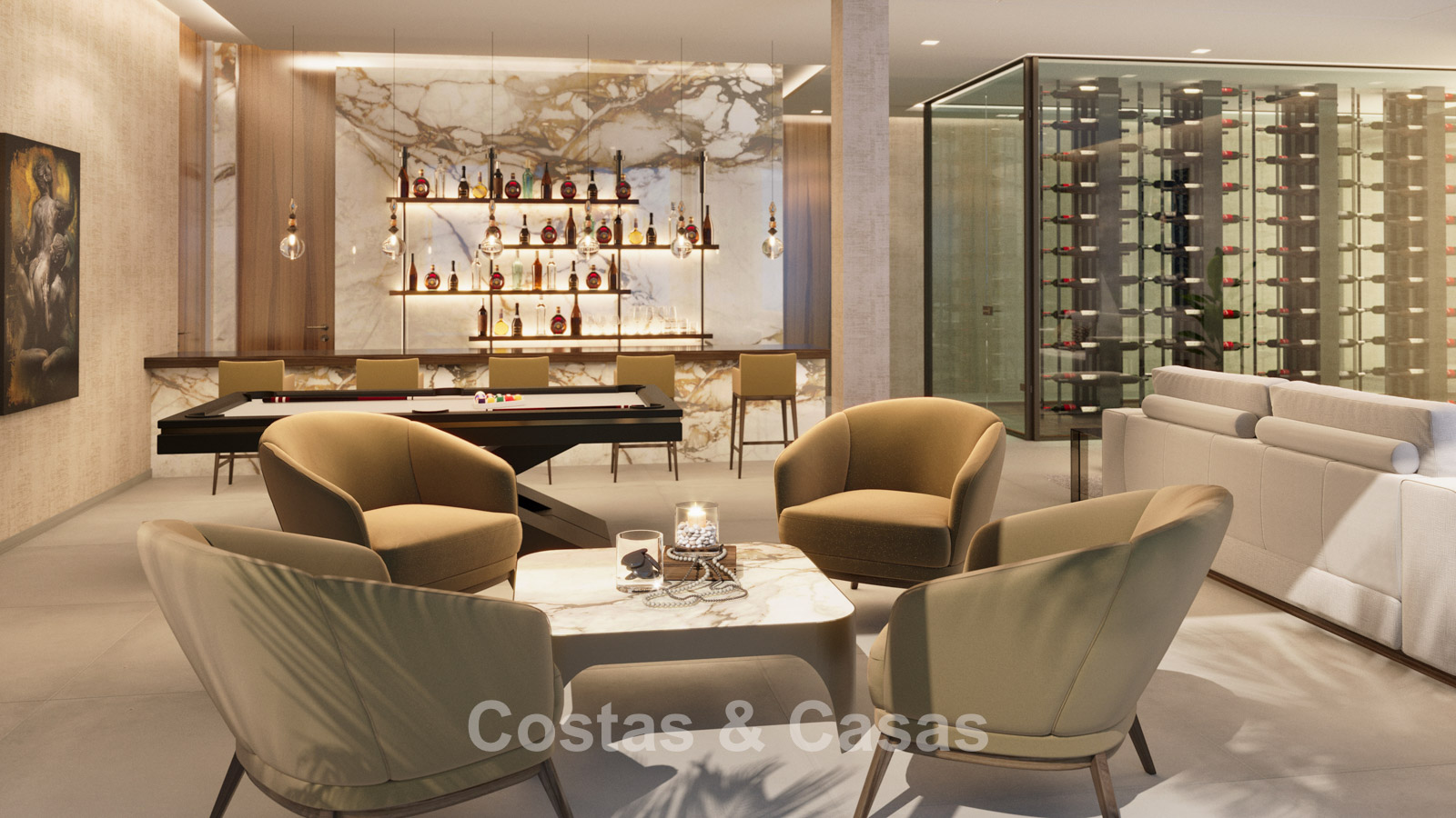 Luxueuse villa neuve de construction récente avec une conception architecturale sur plan. Conçue de manière experte avec des technologies avancées. Style intérieur tendance et luxueux. Une abondance de grandes fenêtres assure une transition harmonieuse entre l'intérieur et l'extérieur, tout en offrant une vue panoramique sur les environs époustouflants. Spacieux espace de vie ouvert, avec un plafond partiel à double hauteur, comprenant un salon et un coin repas. Une cuisine design fonctionnelle sur mesure avec des appareils électroménagers de haute qualité et un îlot de cuisson central. 6 chambres, 7 salles de bains et 3 toilettes séparées. Cave à vin climatisée. L’étage inférieur comprend un spa avec une piscine intérieure, un bain turc, un sauna et une salle de bains. Salle de fitness entièrement équipée. A l’étage inférieur se trouve une salle de loisirs avec un bar, une aire de jeux et une zone de détente. Débarras. (multiple) Buanderie. Local technique.