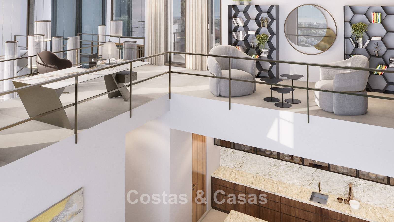 Autres caractéristiques : Ascenseur à tous les étages. Cheminée flottante avec fonction rotation. Armoires encastrées sur mesure. Balustrades en verre autour des terrasses.