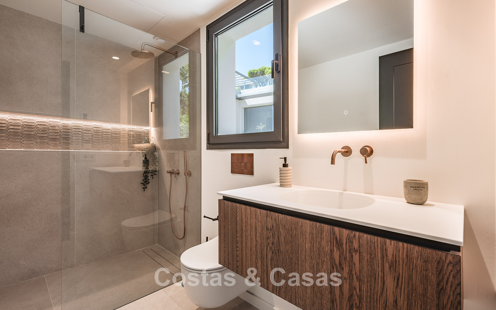 Cette propriété est située dans un quartier résidentiel calme dans les collines de Benahavís, dans le domaine exclusif et sécurisé d'El Madroñal. El Madroñal offre un environnement de vie paisible et privé, entouré d'une nature préservée, tout en étant à moins de 10 minutes en voiture de San Pedro, Puerto Banús et de la côte. Pour les besoins quotidiens, des commerces, des restaurants, un bar, une boulangerie et une boucherie sont même à moins de 3 minutes en voiture. Le charmant village de montagne de Benahavís, à seulement 10 minutes en voiture, est connu comme le haut lieu gastronomique de la Costa del Sol, avec la plus forte concentration de restaurants de qualité de la région. Vous y trouverez également des bars à tapas chaleureux et des bodegas d'ambiance. Pour les amateurs de golf, l'emplacement est idéal, avec la célèbre vallée du golf de Nueva Andalucía et des parcours renommés tels que Los Arqueros et El Higueral à proximité.
