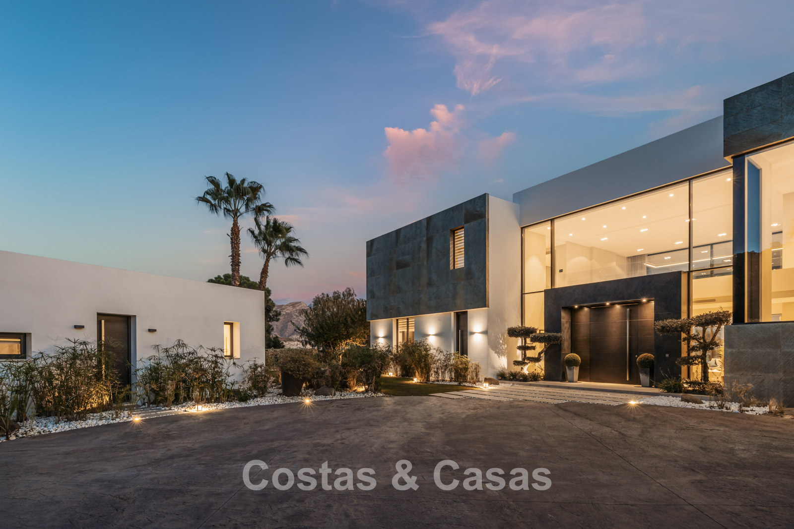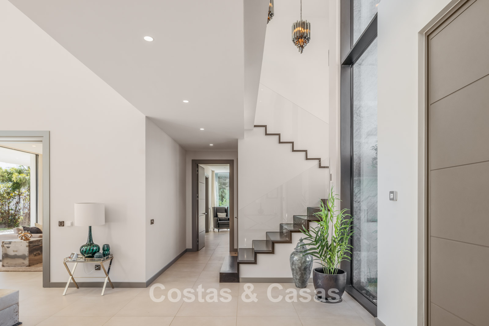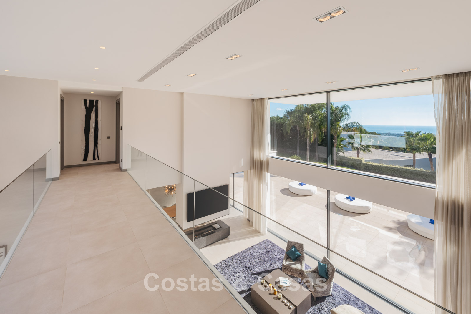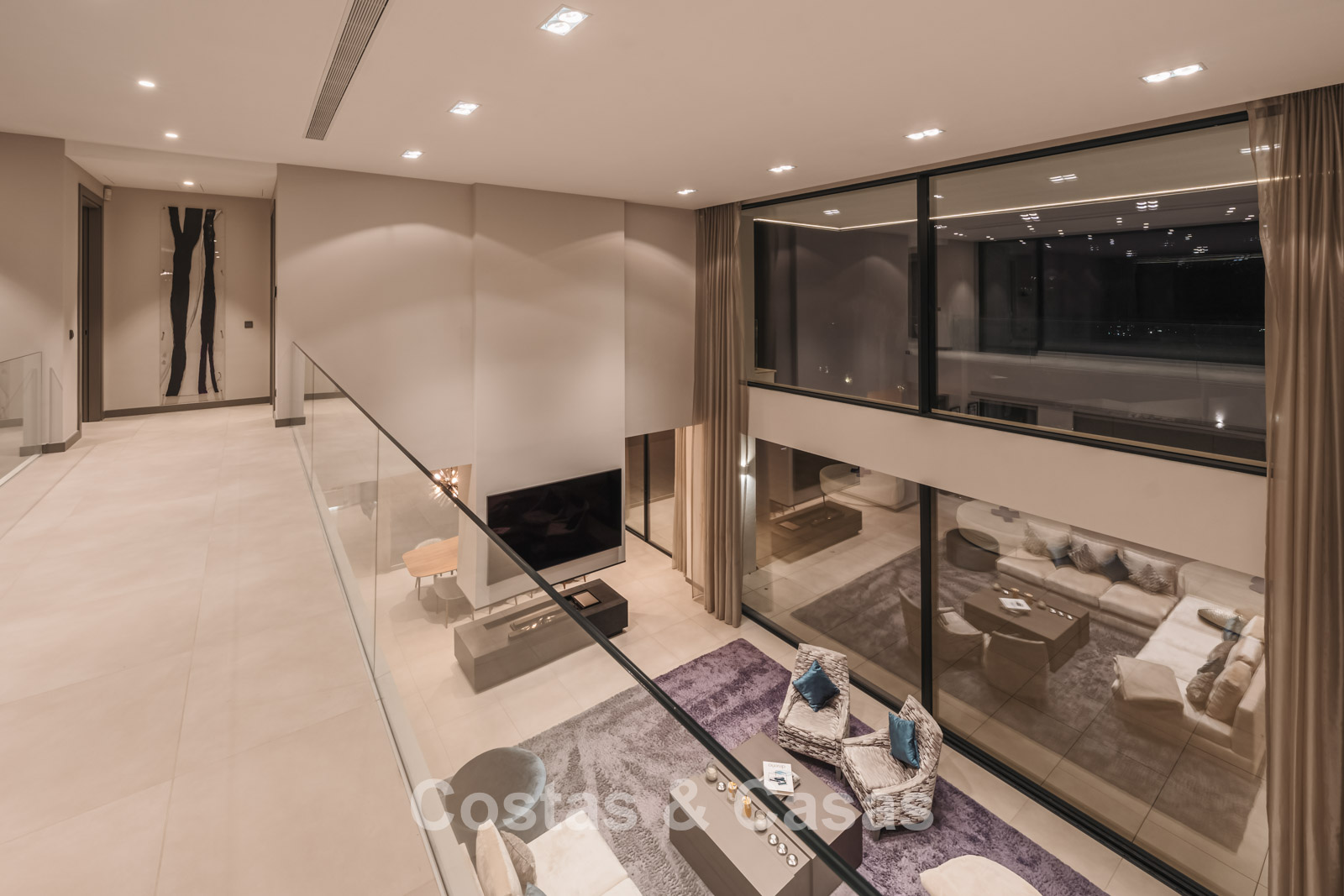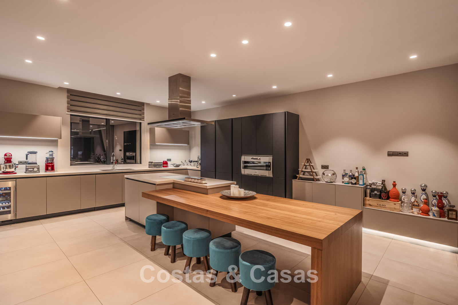 Autres caractéristiques : Climatisation pour le refroidissement et le chauffage. Cheminée. Balustrades en verre autour de la terrasse. Volets roulants électriques. Armoires encastrées sur mesure. Système d'alarme sophistiqué. Système d'irrigation automatique. Éclairage LED intérieur et extérieur.