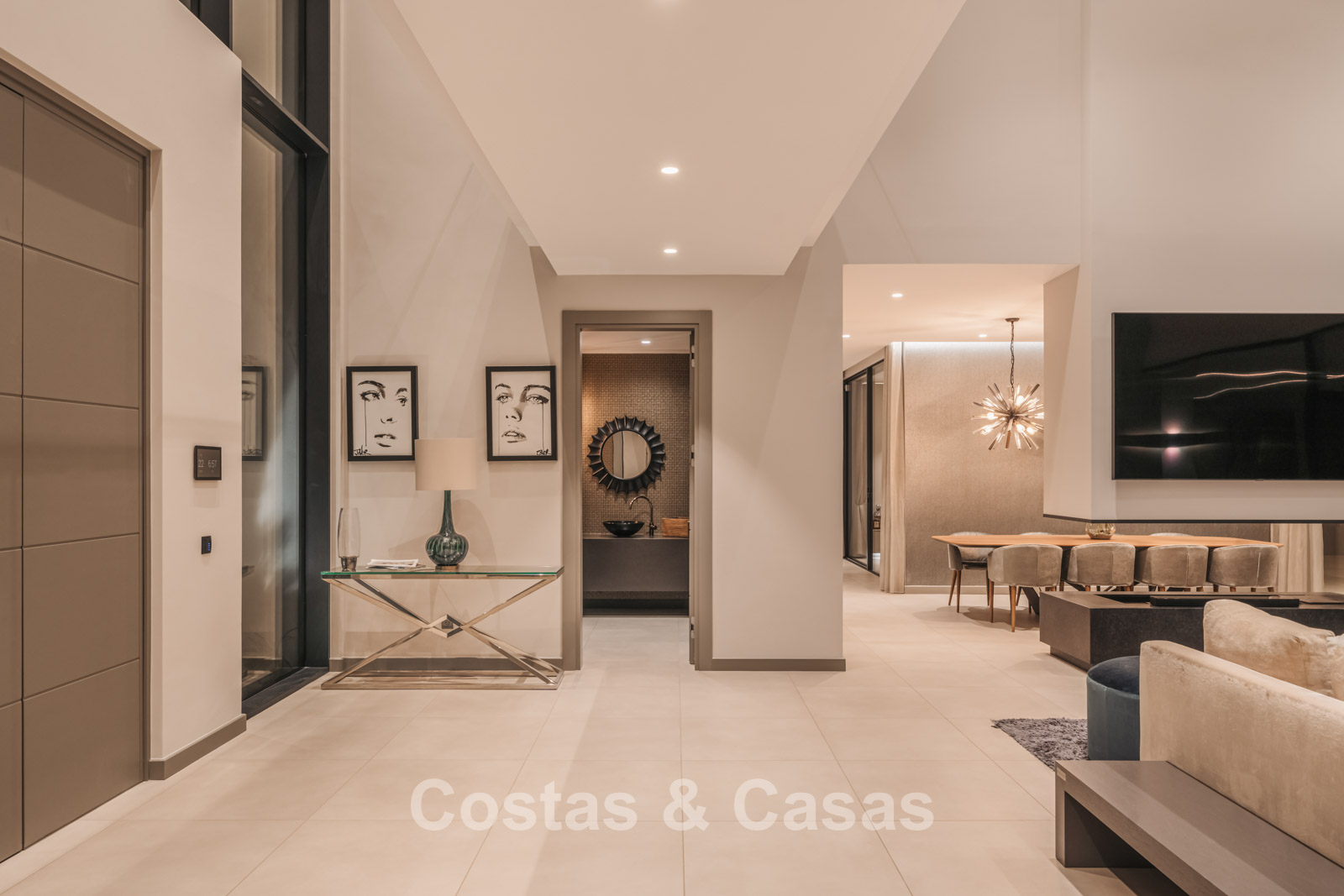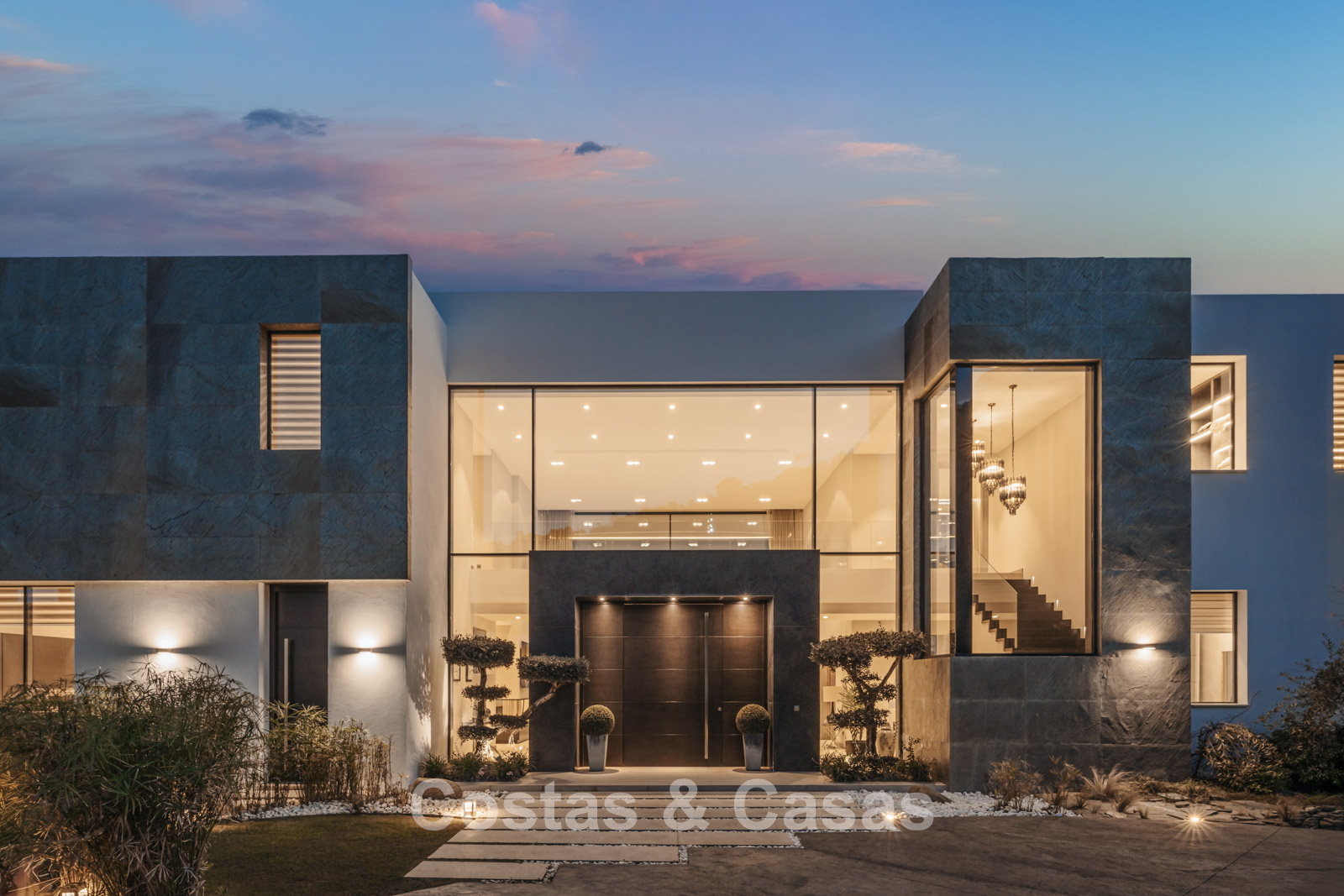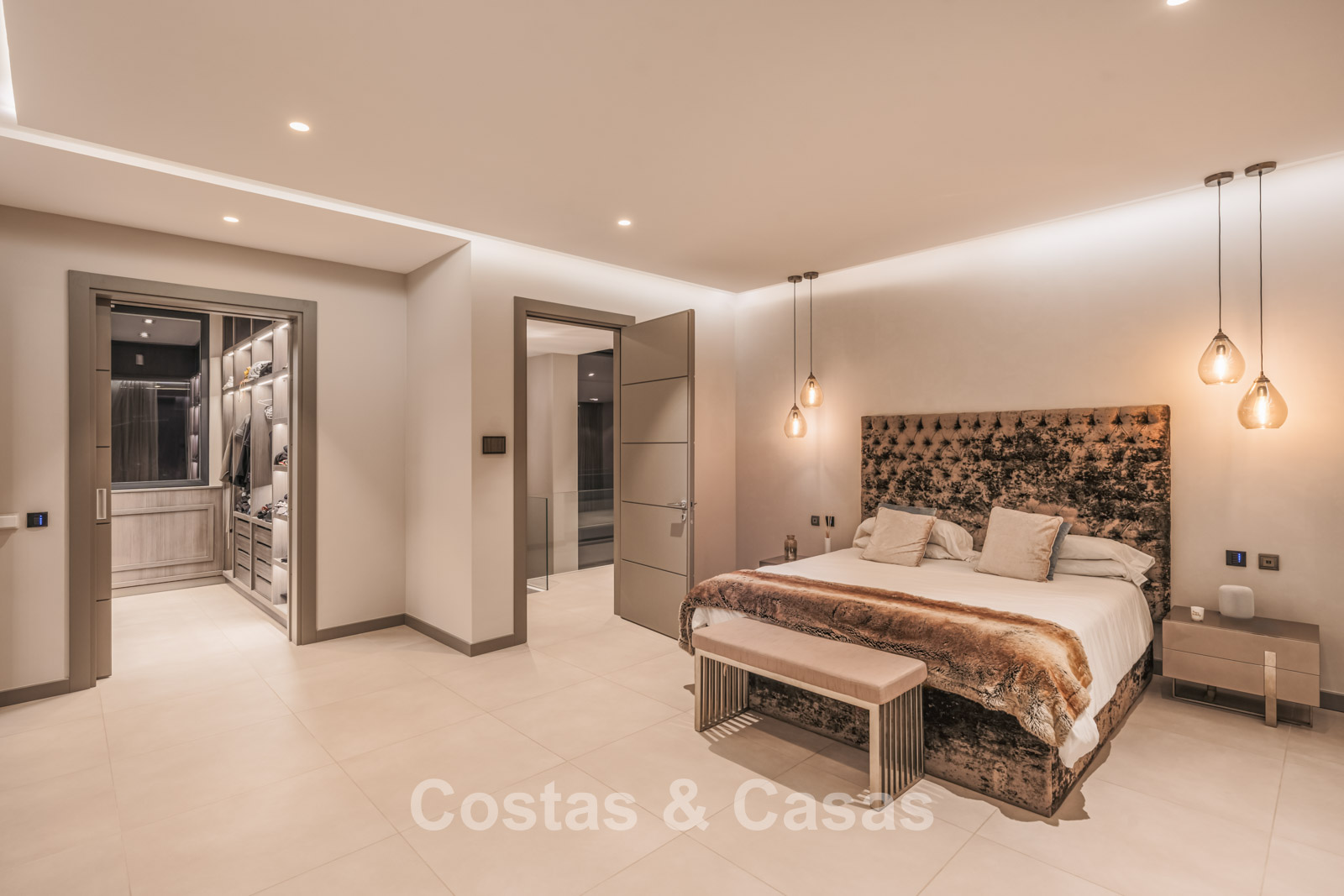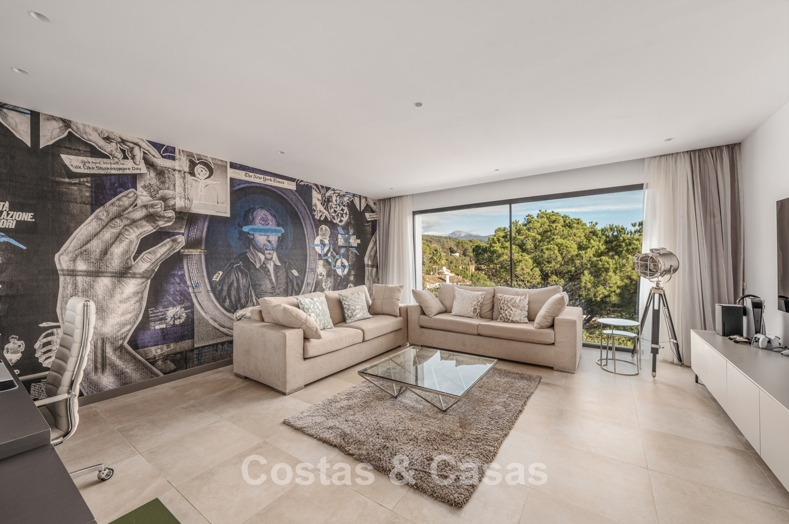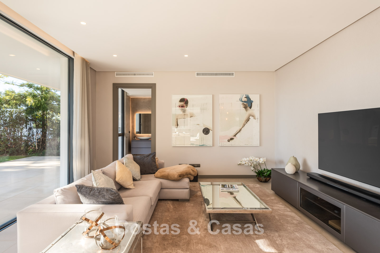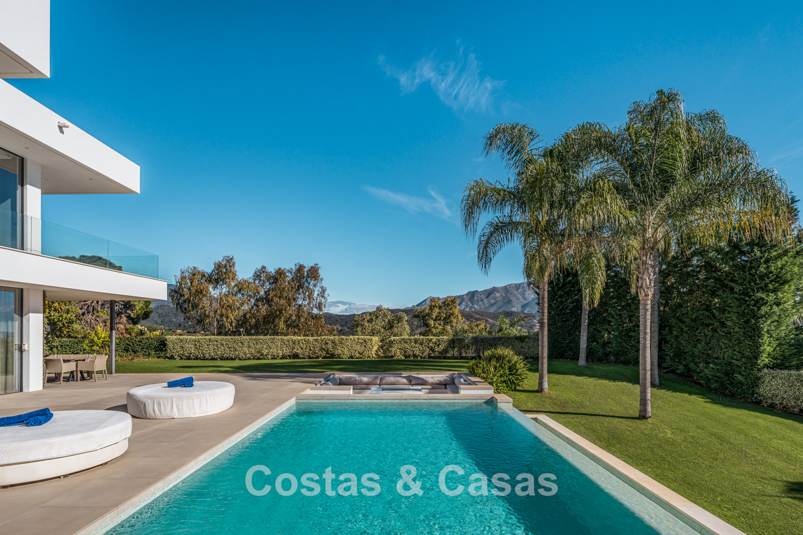 Autres caractéristiques : Climatisation pour le refroidissement et le chauffage. Cheminée. Balustrades en verre autour de la terrasse. Volets roulants électriques. Armoires encastrées sur mesure. Système d'alarme sophistiqué. Système d'irrigation automatique. Éclairage LED intérieur et extérieur.