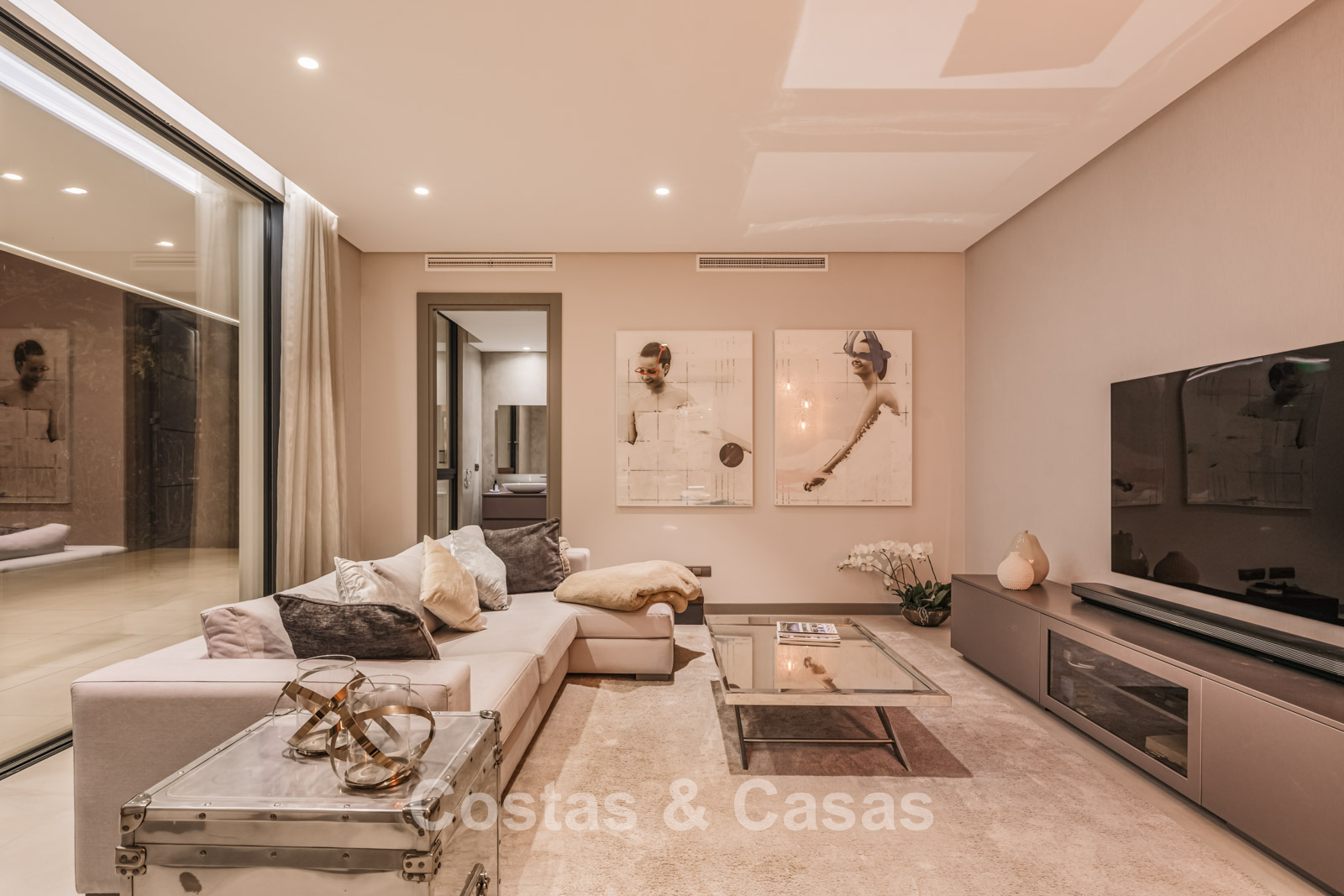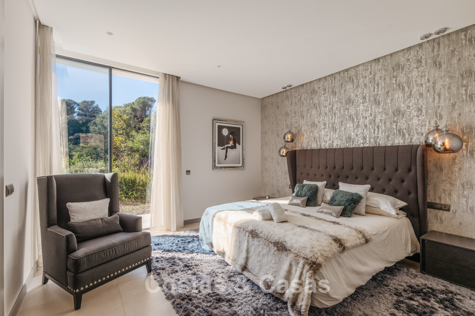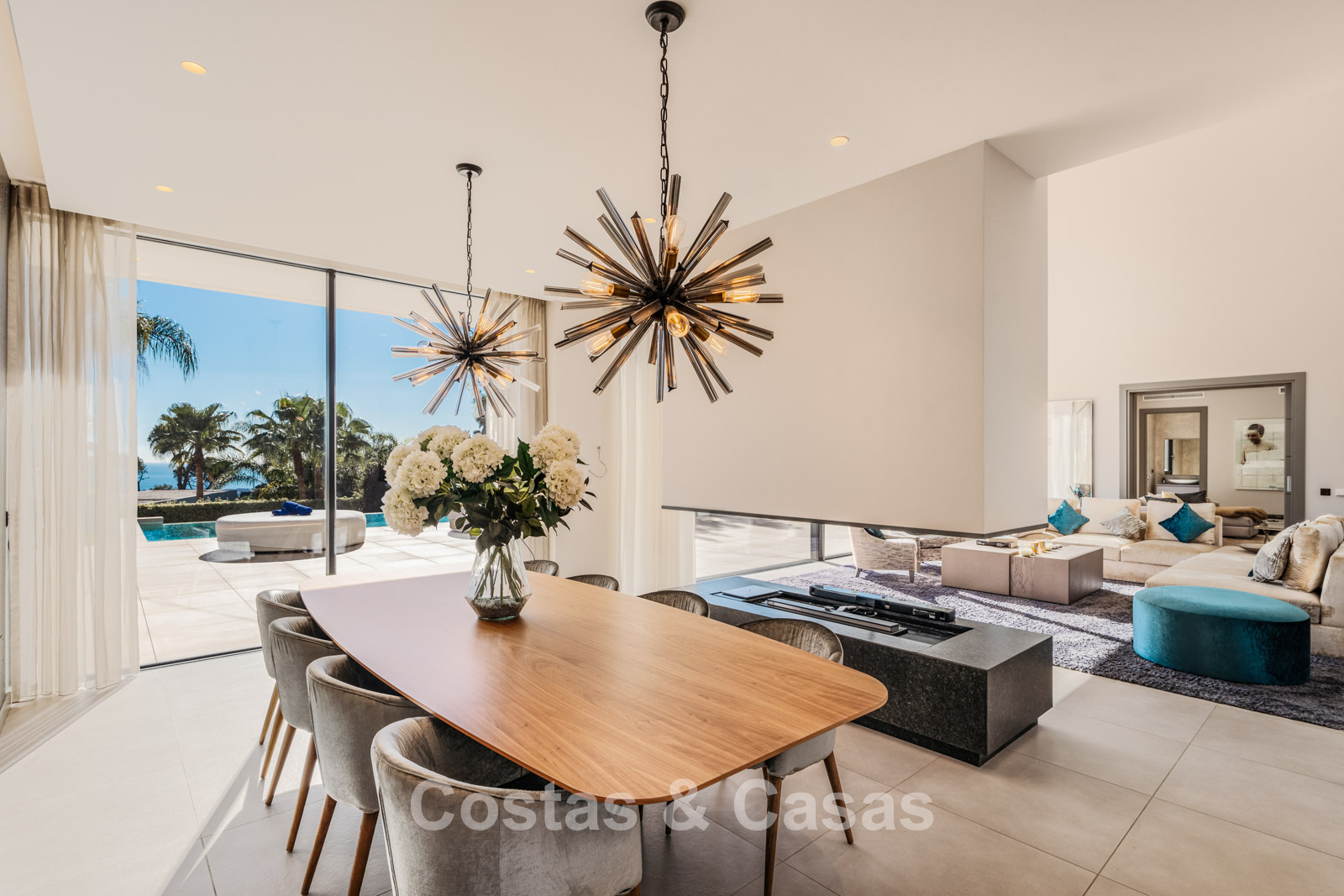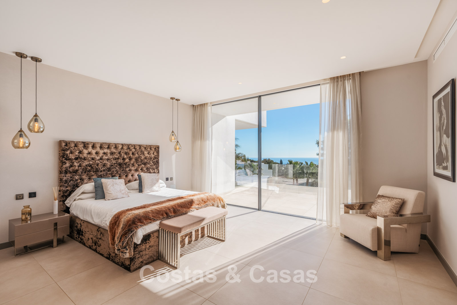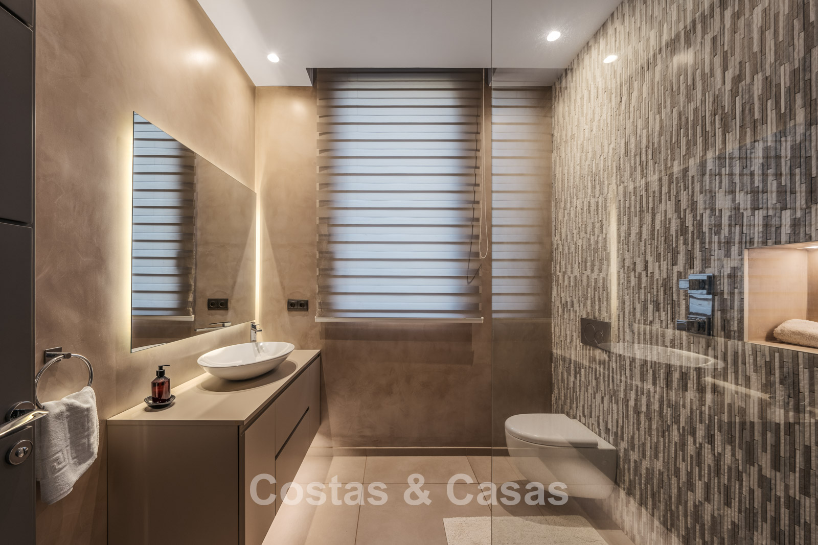 Autres caractéristiques : Climatisation pour le refroidissement et le chauffage. Cheminée. Balustrades en verre autour de la terrasse. Volets roulants électriques. Armoires encastrées sur mesure. Système d'alarme sophistiqué. Système d'irrigation automatique. Éclairage LED intérieur et extérieur.