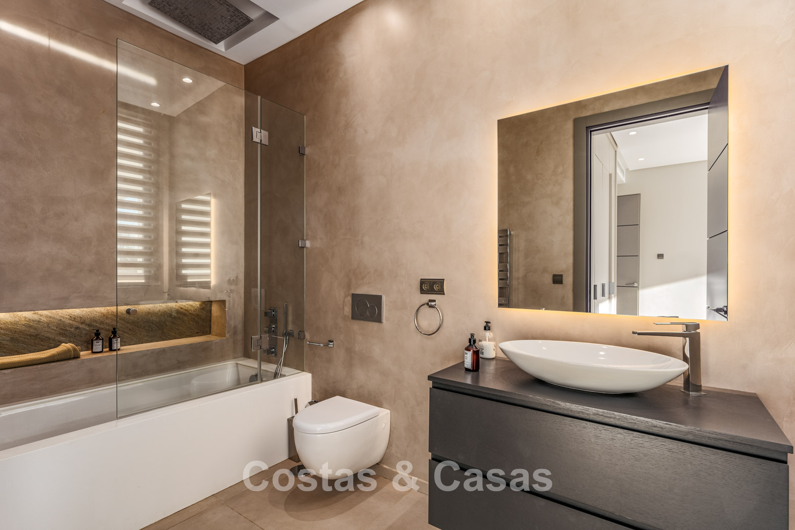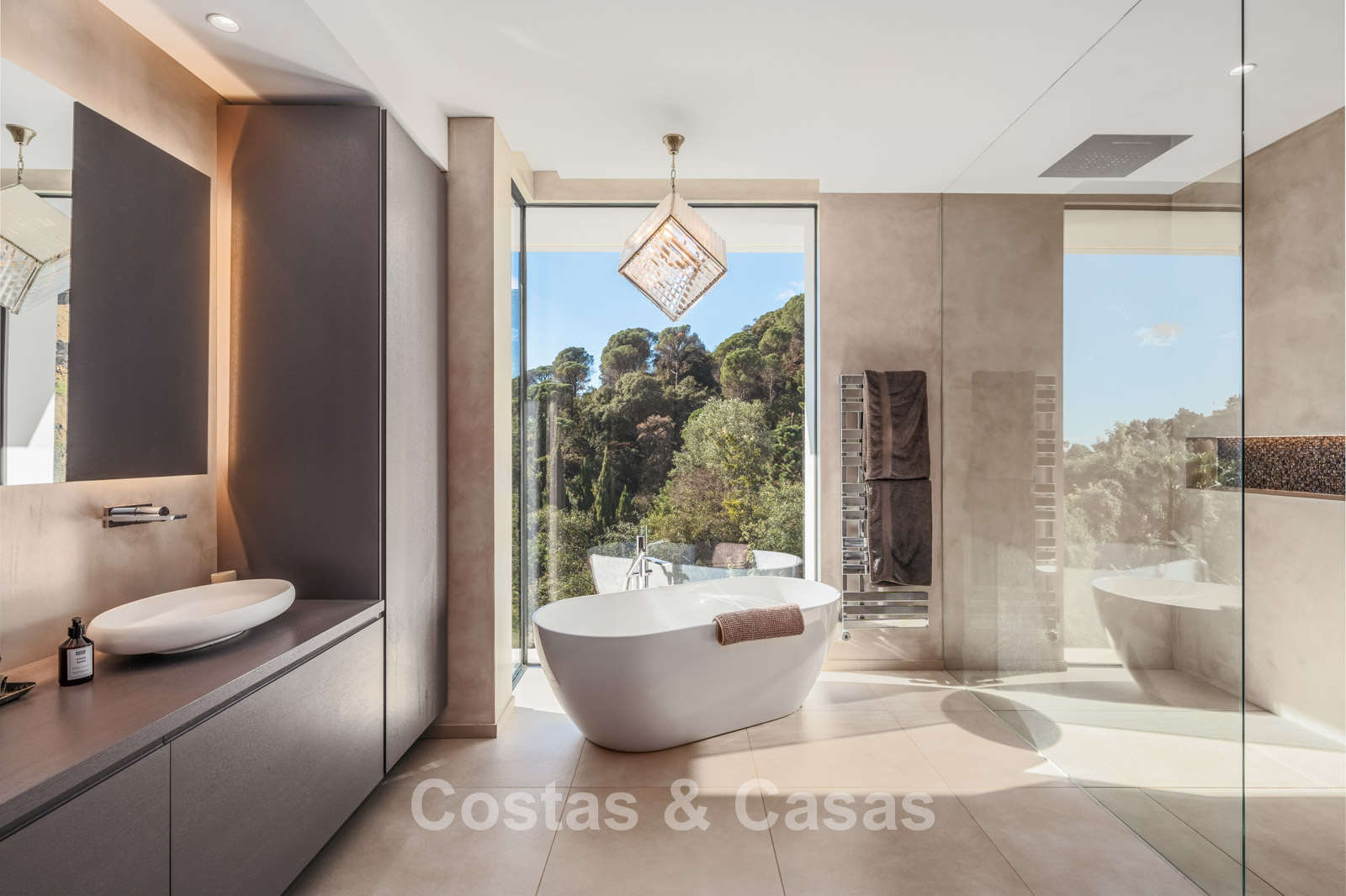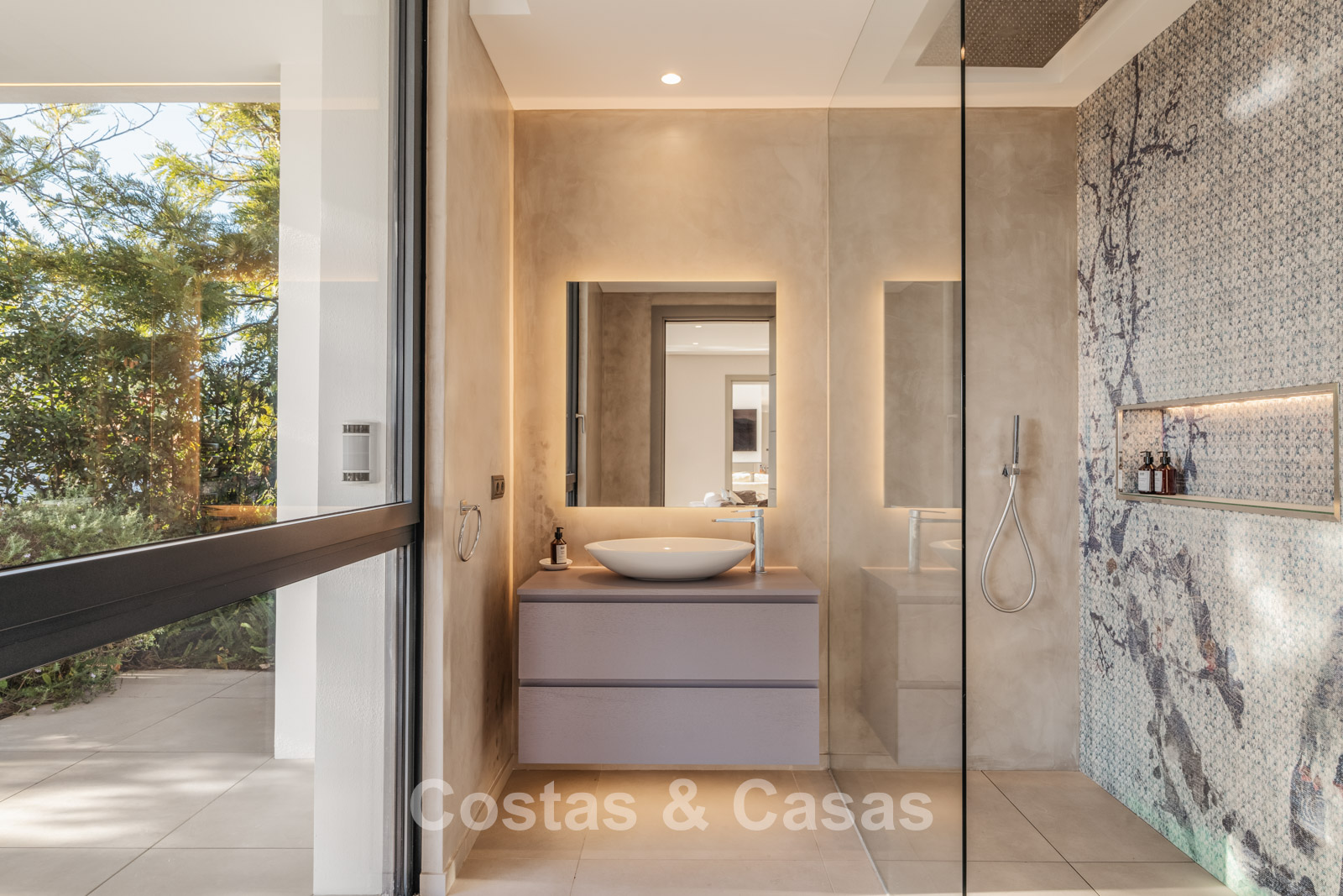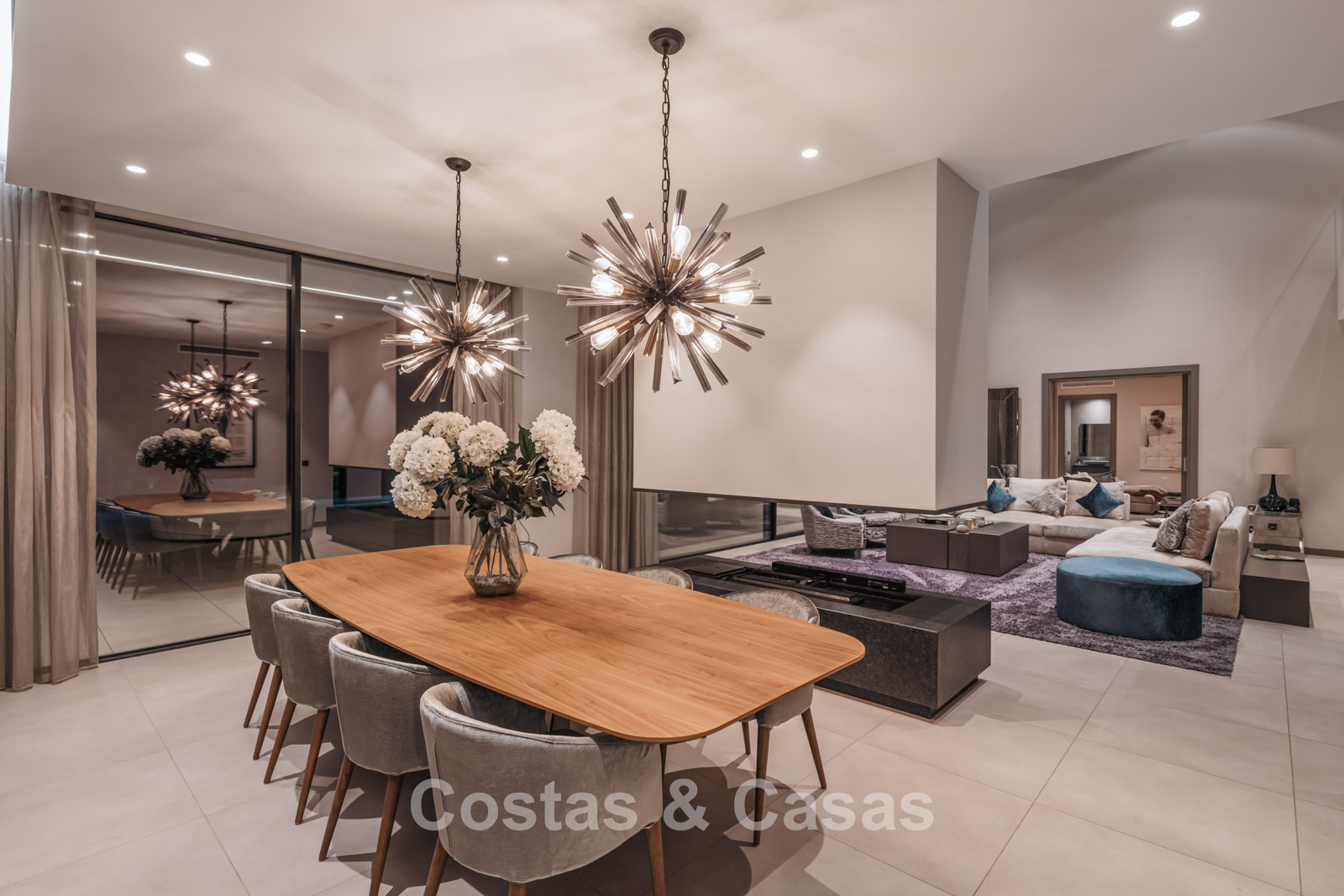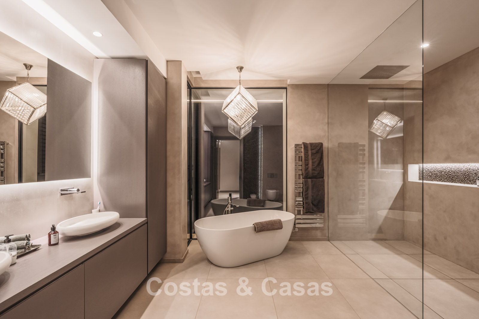 Autres caractéristiques : Climatisation pour le refroidissement et le chauffage. Cheminée. Balustrades en verre autour de la terrasse. Volets roulants électriques. Armoires encastrées sur mesure. Système d'alarme sophistiqué. Système d'irrigation automatique. Éclairage LED intérieur et extérieur.